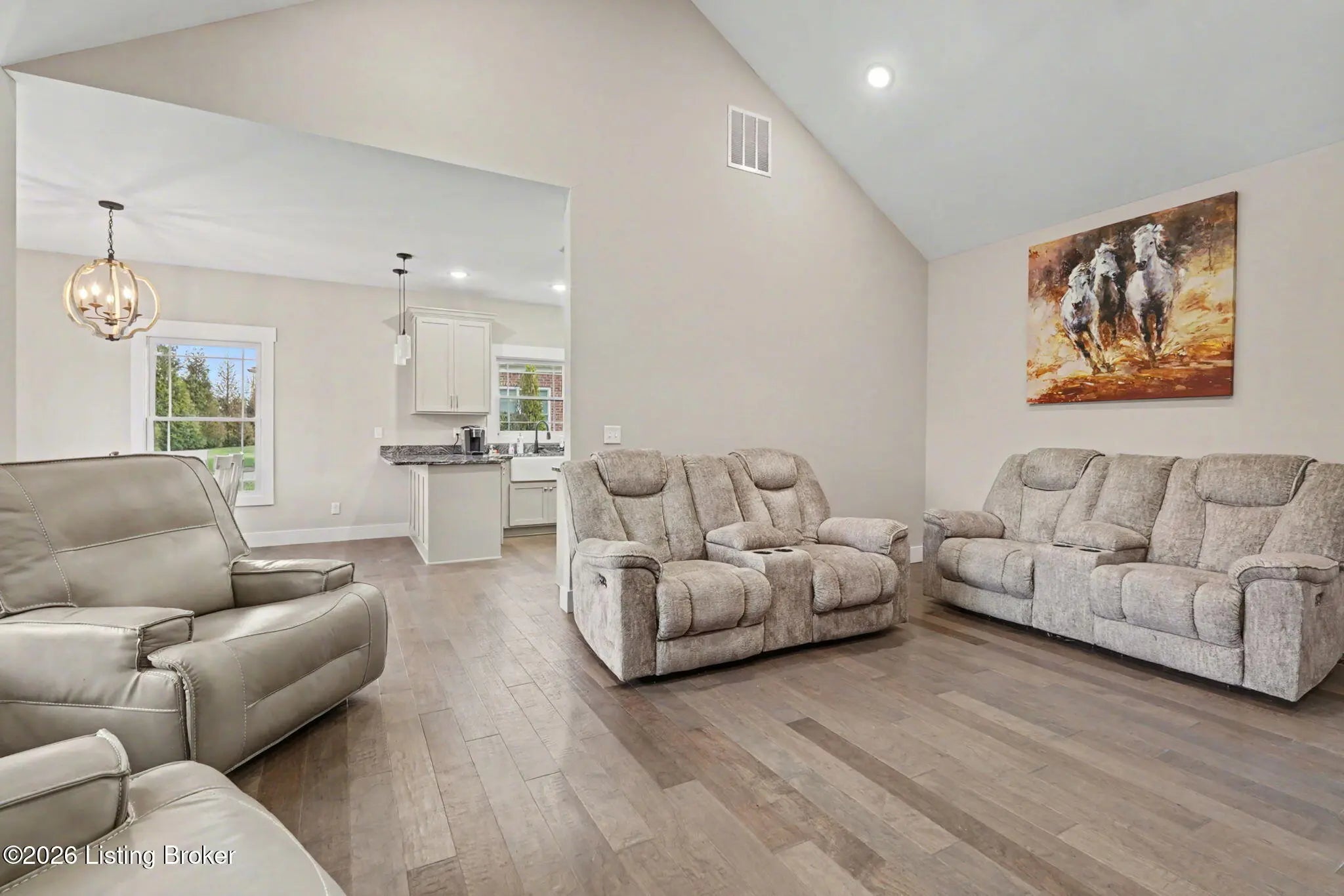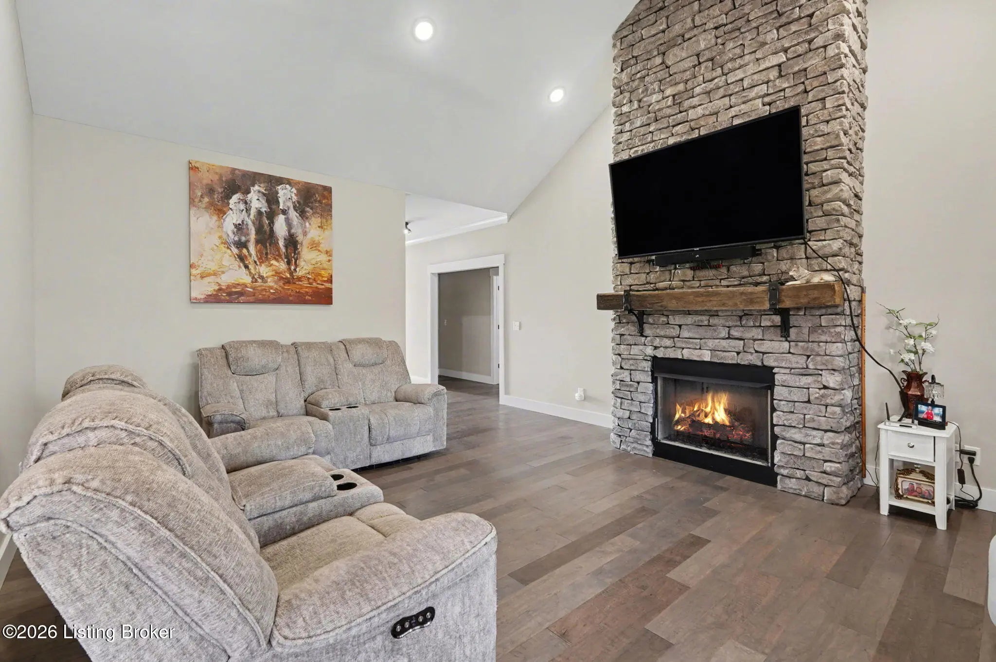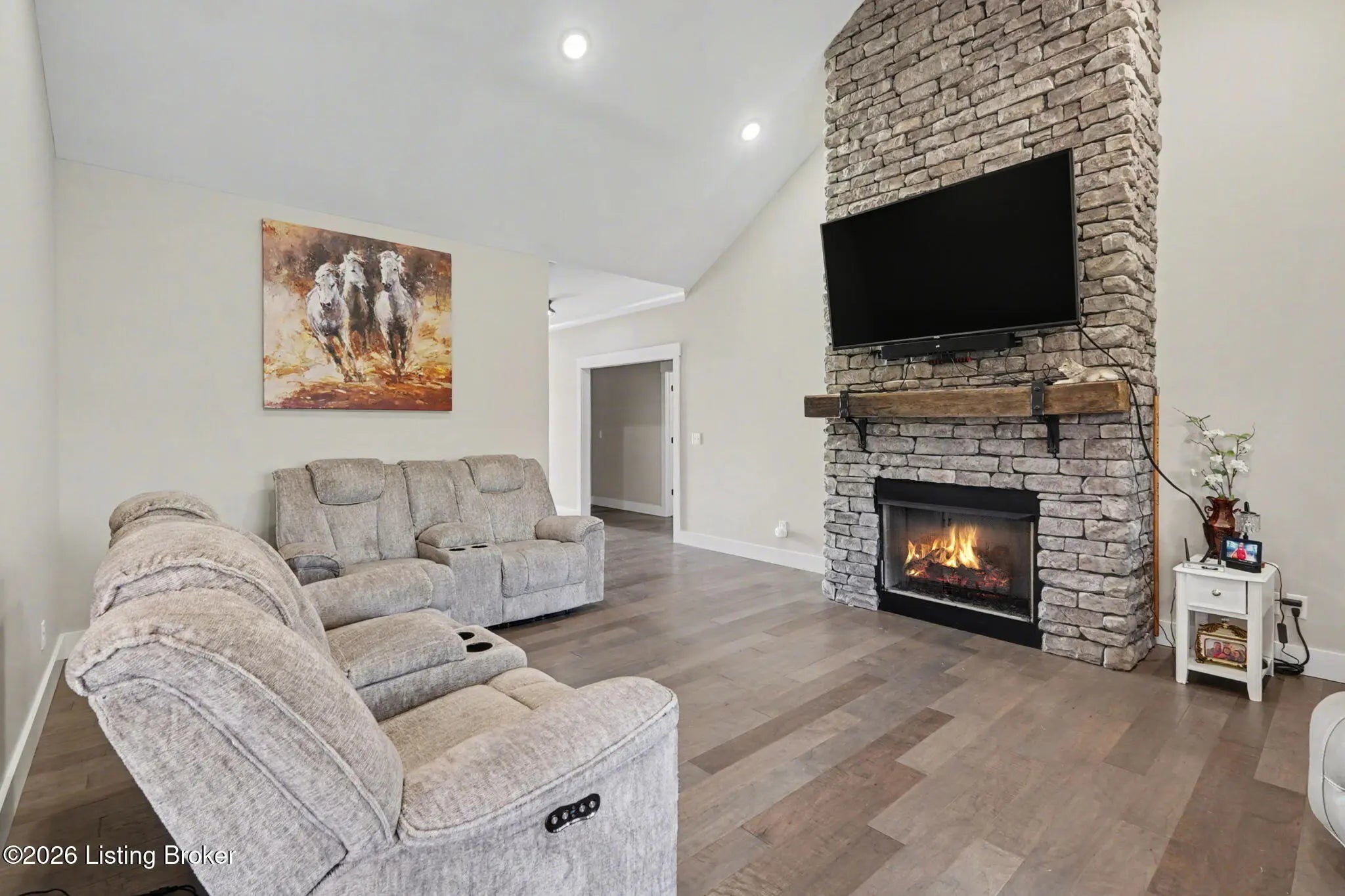 Situated in Maywood, one of Bardstown's most desirable golf communities, this 2019 built great-home is one you don't want to miss! This 1770 square foot home boasts three bedrooms and two full bathrooms. Inside you will be greeted by an elegant stone fireplace that climbs up to soaring ceilings. The custom kitchen comes equipped with luxury boasting granite countertops. Enjoy the seamless open floor flow between living room, dining room, and kitchen. This house is equipped with high end features throughout. Outside enjoy the covered rear patio right next to the golf course offering excellent views and relaxation space. This home has it all from luxury design, to excellent community features. Do not miss the chance to make this yours today!