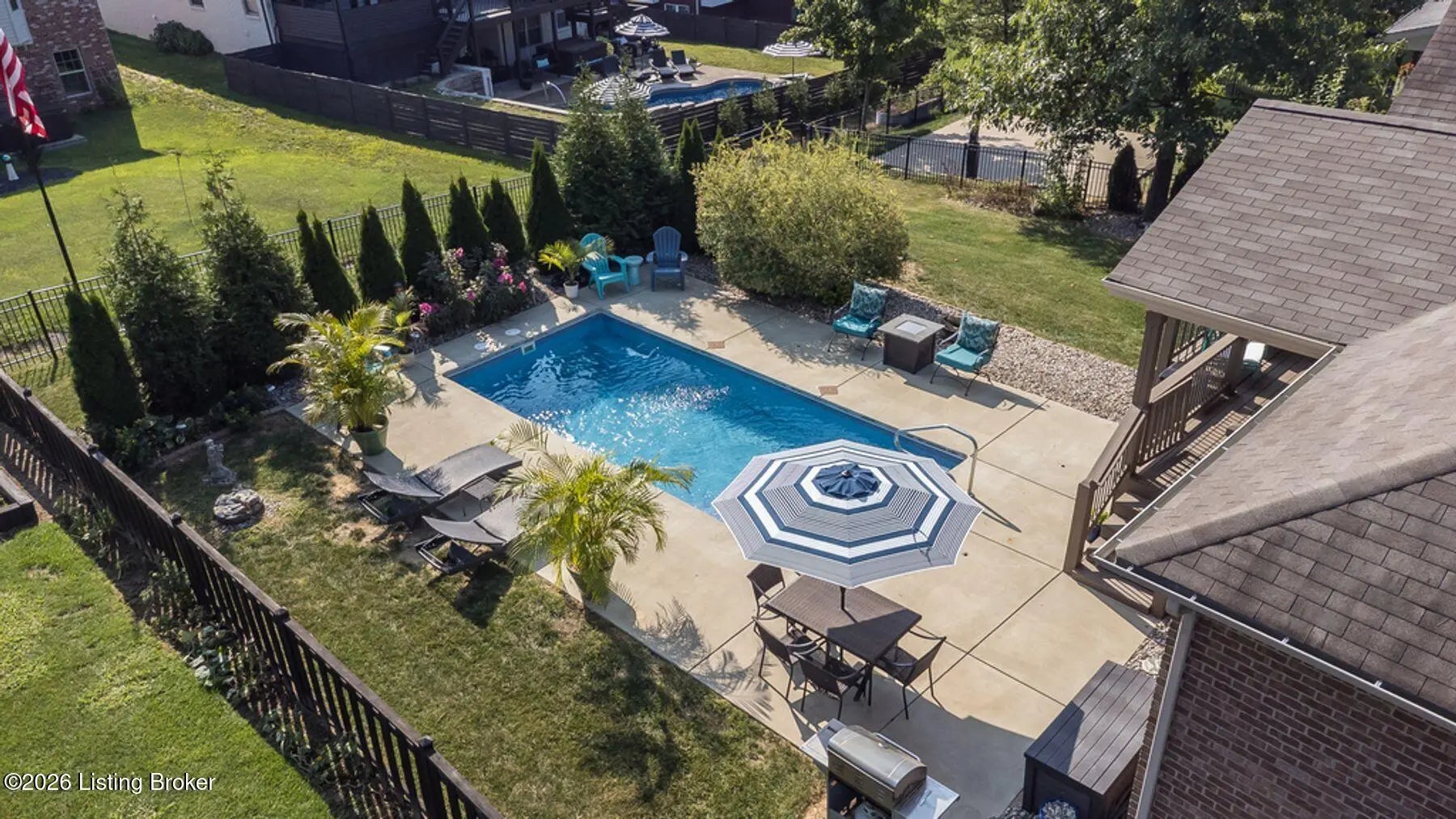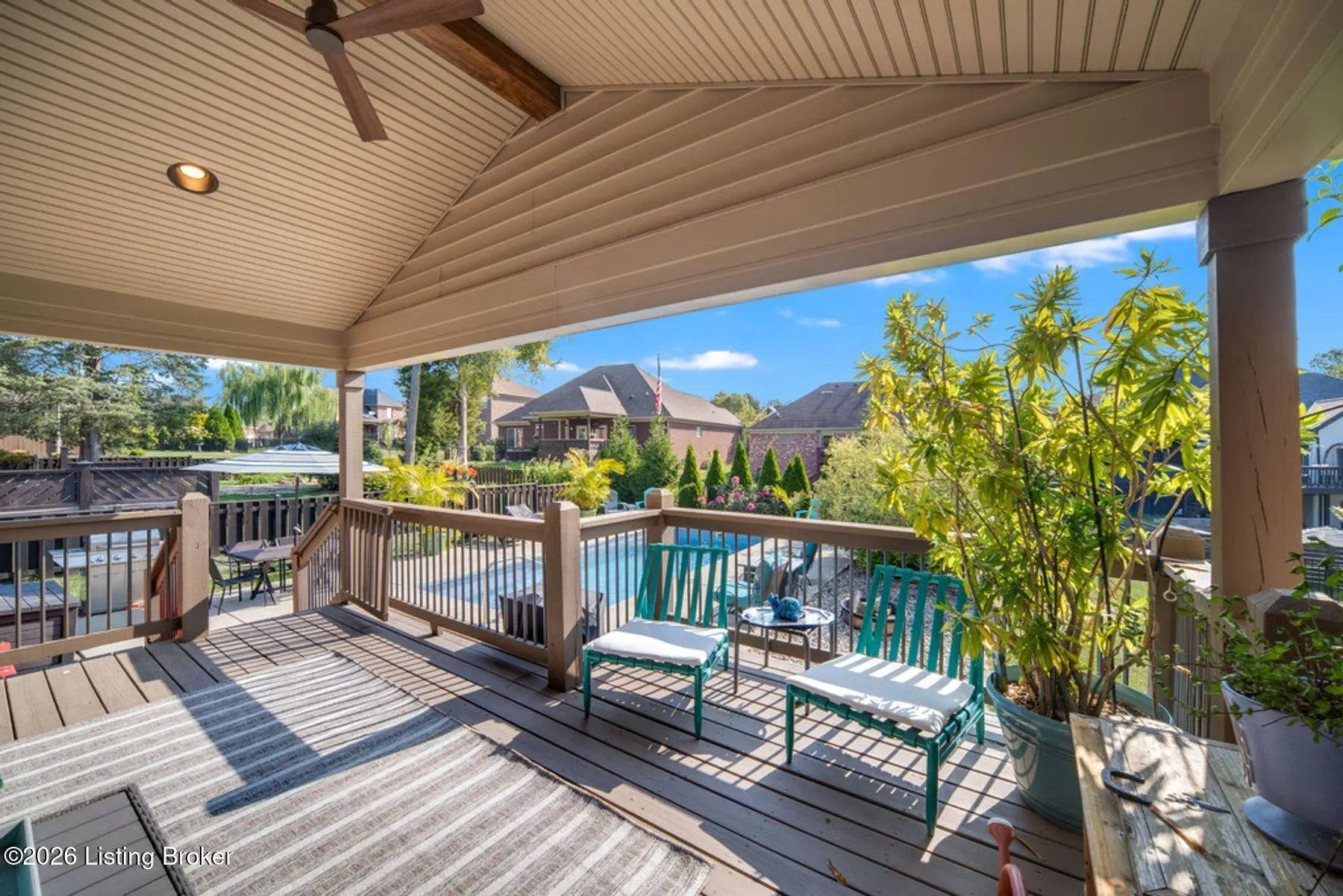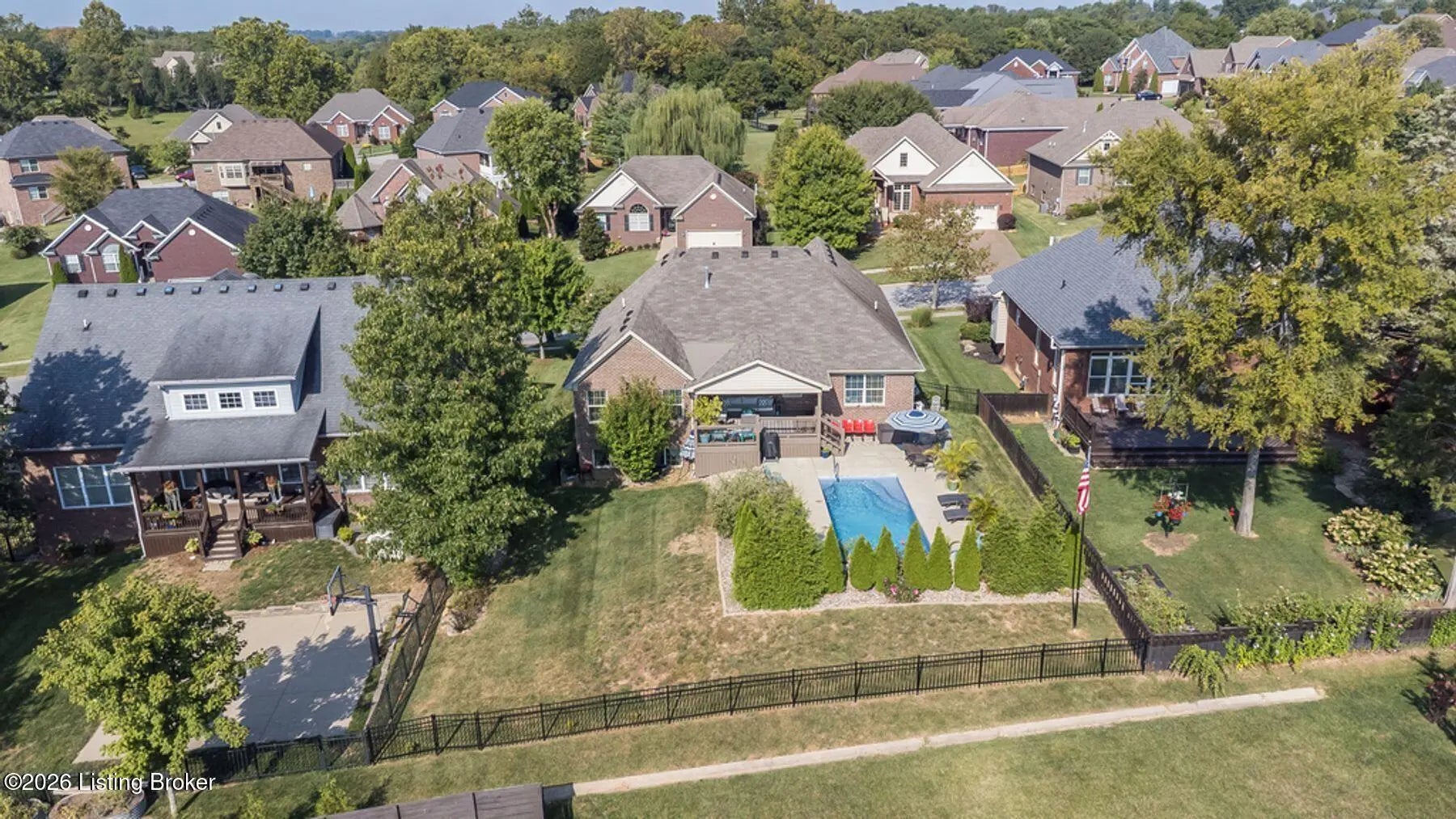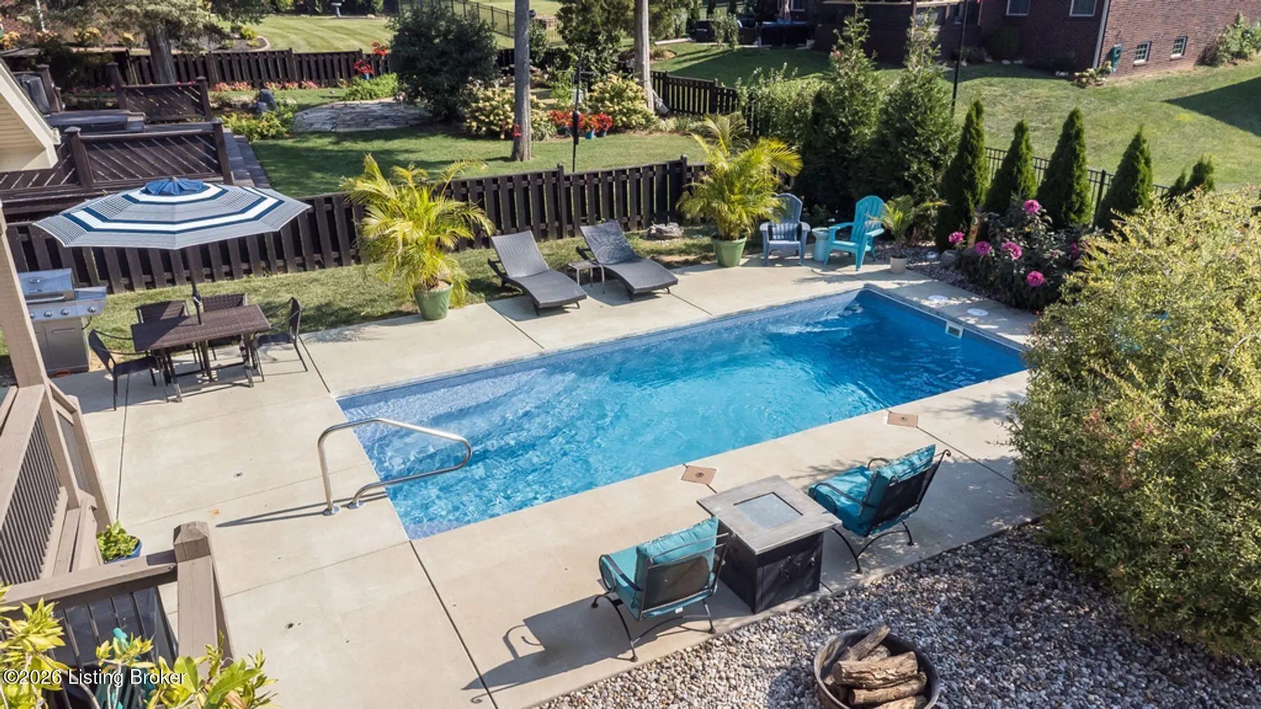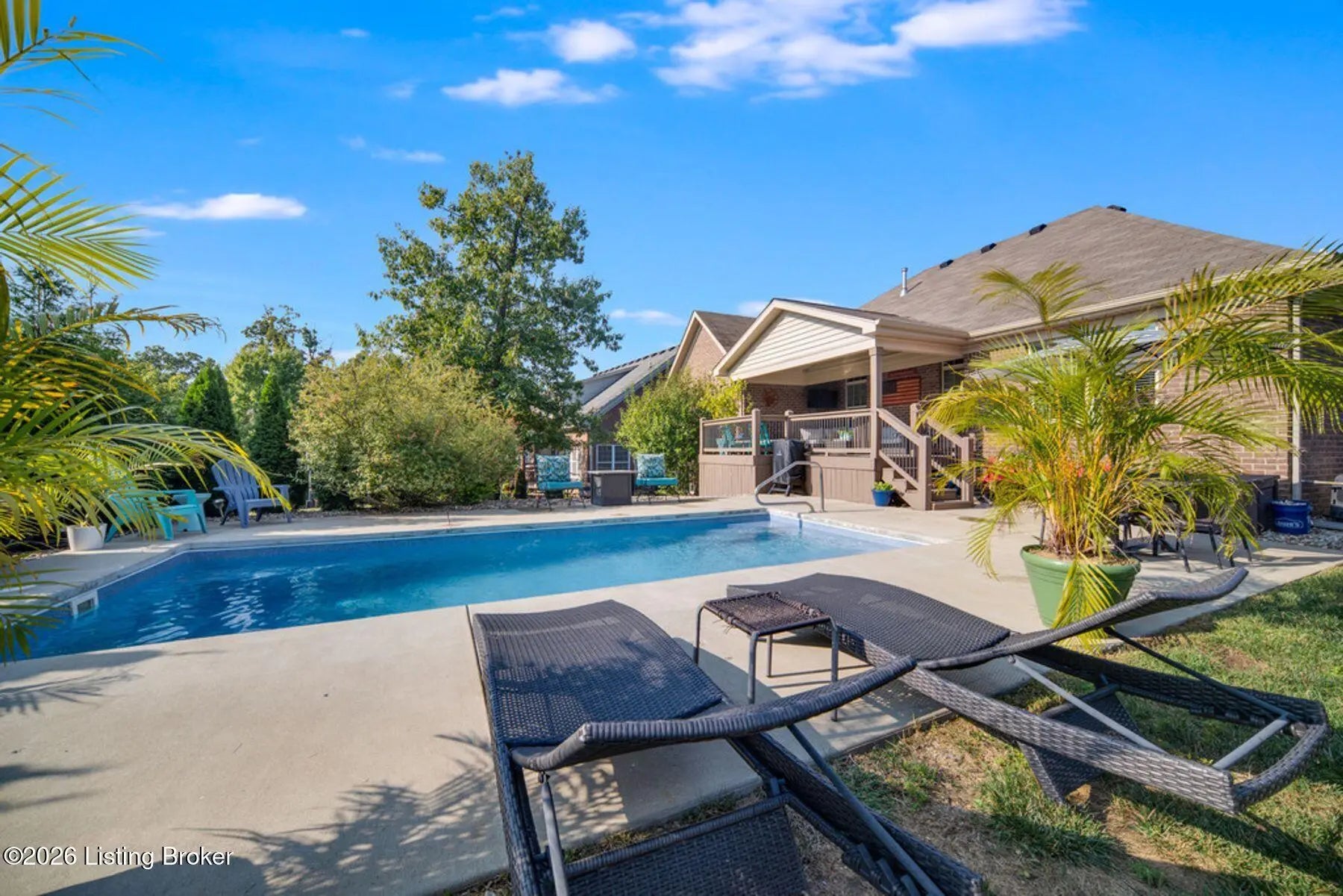 Welcome home to 4209 Pleasant Glen Drive! Located in the desirable Stone Lakes neighborhood, this beautiful ranch offers a great balance of comfort, style, and space. Step inside and you're greeted by a welcoming entry that opens into the great room with soaring vaulted ceilings. The open layout flows easily into the kitchen, where granite countertops, a center island, and a dining area create a space that works well for everyday living as well as gathering with friends and family. The primary suite offers a peaceful place to unwind, complete with a spacious closet and a relaxing en suite bath featuring double vanities, a soaking tub, and a separate shower. Two additional bedrooms provide flexibility for guests, family members, or even a home office. The unfinished basement offers excellent potential with two egress windows and a bathroom rough-in—giving you the opportunity to add a bedroom, recreation space, or another full bath in the future. The backyard features a heated inground saltwater pool, along with a large patio, beautiful landscaping, and a fully fenced yard that provides both privacy and space to enjoy the outdoors. Overlooking it all is a covered deck with a vaulted beadboard ceiling, exposed wood beam, ceiling fan, and mounted TV—creating a comfortable outdoor living space that's perfect for relaxing or entertaining. This is a home you'll want to see in person. Schedule your private showing today!