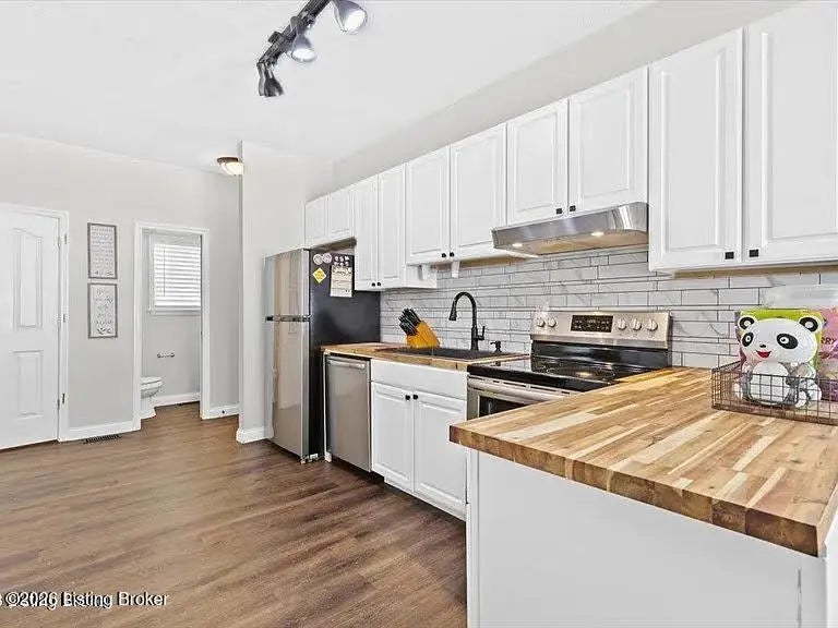 This charming 3-bedroom, 2-bathroom home exudes warmth and character. The stone façade welcomes you into the living room, which seamlessly flows into the open-plan kitchen, complete with butcher countertops and a warm backsplash. Proceeding from the entry, a short staircase leads to three spacious bedrooms, including a master suite with a full bath, dual vanity, and walk-in closet. The home also features a deck with a privacy fence, perfect for relaxation or entertainment. An attached garage provides secure entry to the home. Don't miss this exceptional opportunity, as this property qualifies for various grant programs offering up to $30,000 down payment and $50,000 for remodeling.