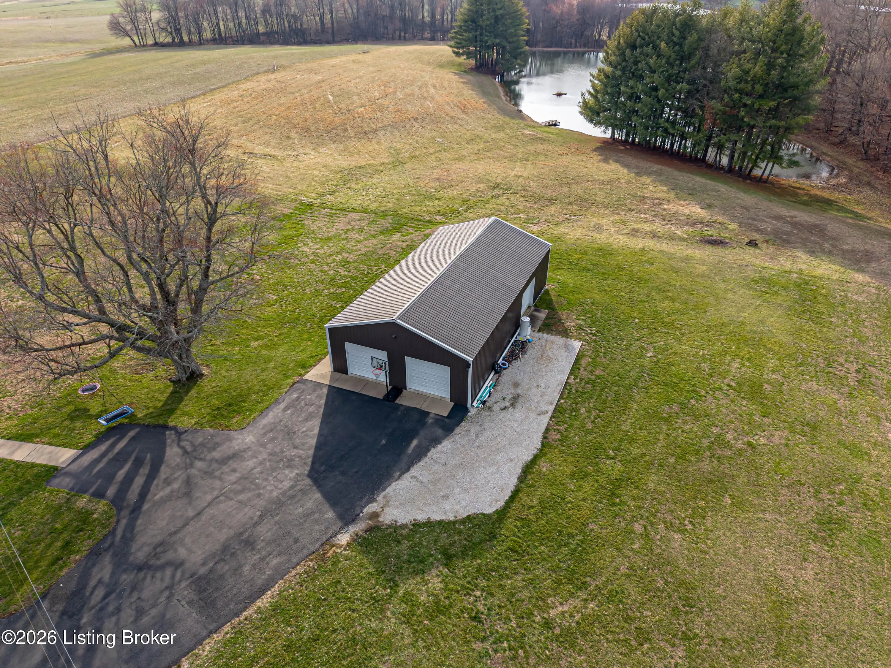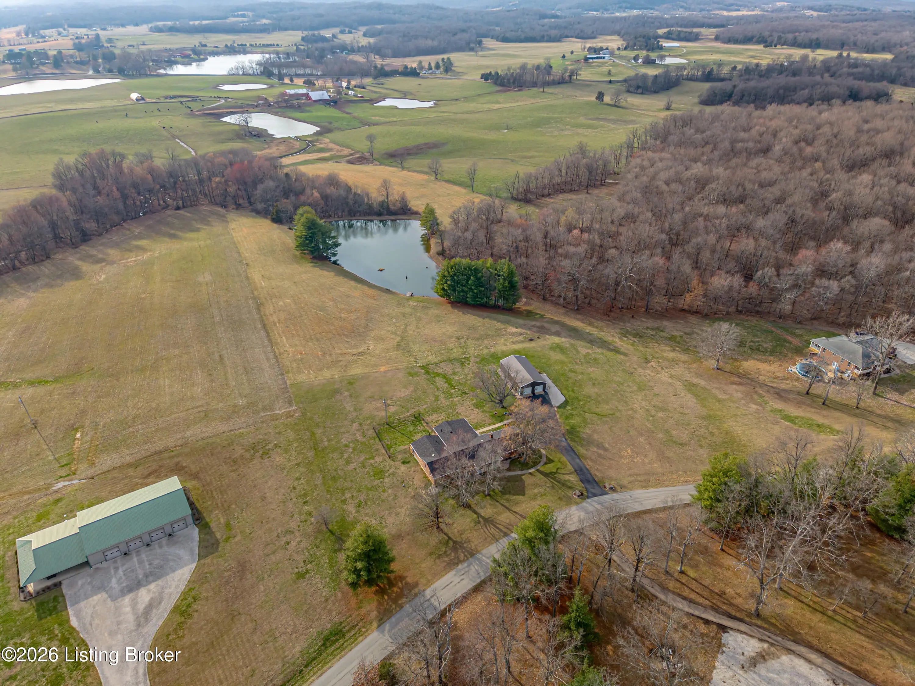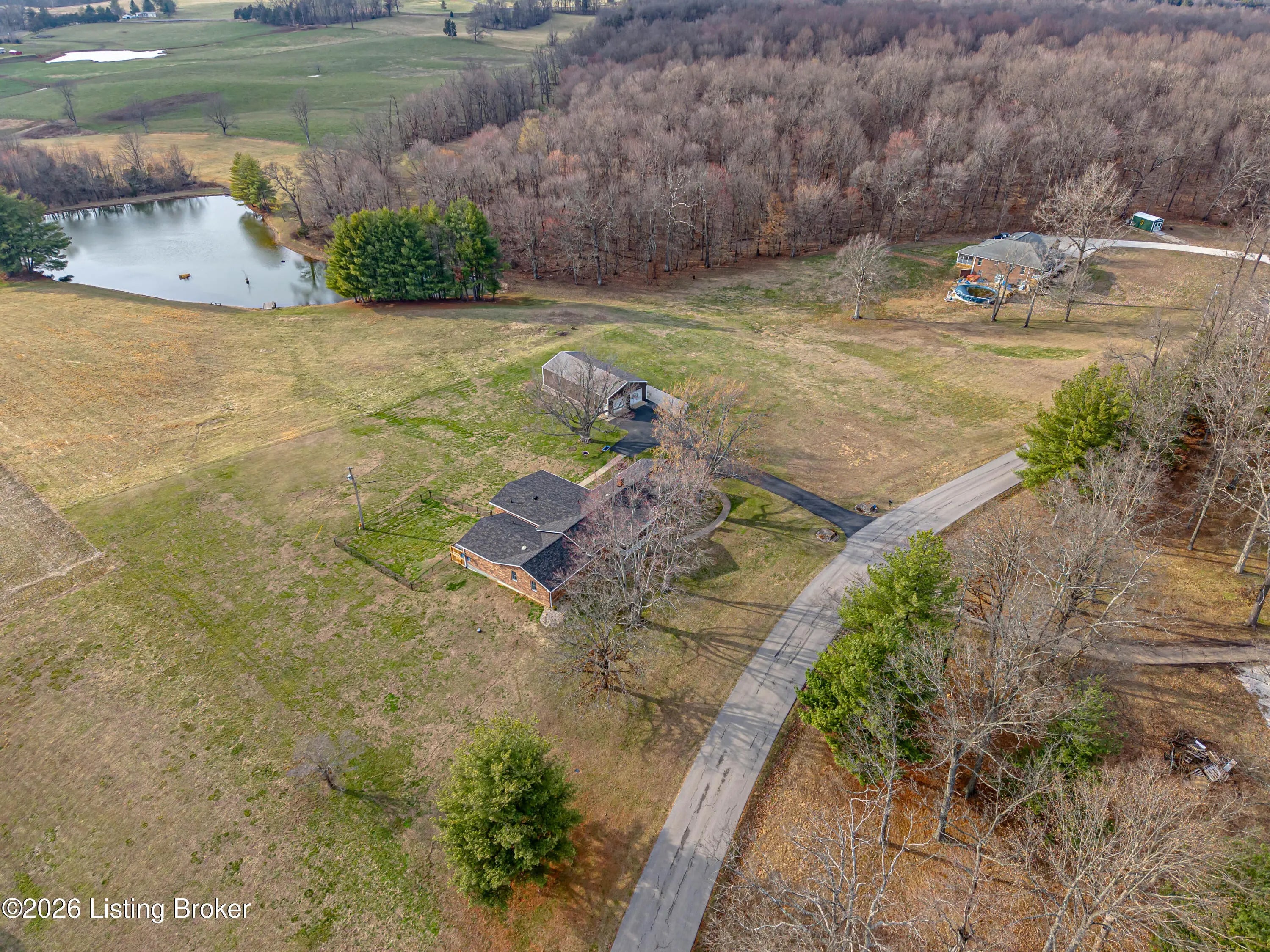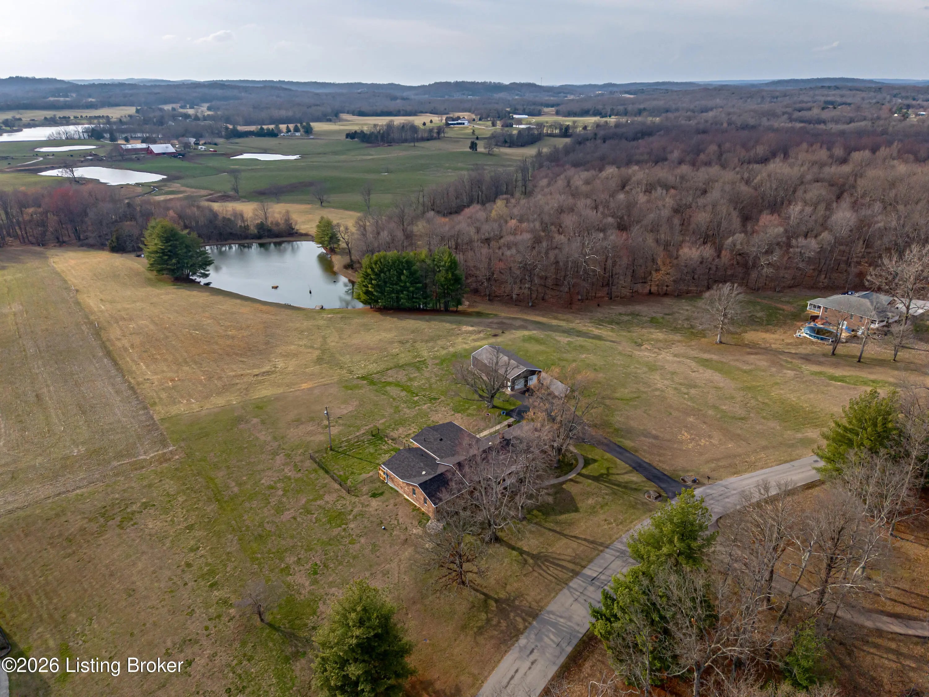 PRIVATE SETTING...LARGE HOME AND PROPERTY...MOVE-IN READY...Nestled on over 10.5 ACRES of Serene, Peaceful land with a 2 Acre Lake, this EXCEPTIONAL home boasts 3 SPACIOUS BEDROOMS, each with its own PRIVATE SUITE, and 5 TOTAL BATHROOMS. The possibilities are endless, with room to expand for more bedrooms. Enjoy a LARGE, STOCKED, SHARED LAKE on the property, perfect for fishing and including a Stationary Dock, as well as a Floating Dock. The Interior Boasts a MAGNIFICENT, SPACIOUS DINING ROOM ideal for gatherings. The RECENTLY UPDATED KITCHEN is a Chef's dream, and the home also features TWO FIREPLACES, creating WARM, INVITING spaces. There is another Kitchenette, a Laundry Room, and an Office on the main level. In the FINISHED WALK-UP BASEMENT you'll find a SEPARATE OFFICE AREA plus... ...an EXERCISE SPACE, along with a GAME ROOM and Wet-bar Area for added flexibility. Two ELECTRIC SERVICES power the home, complemented by GEOTHERMAL HEATING and a SPLIT UNIT for year-round comfort. Additionally , there is BACKUP PROPANE HEAT for added security. Outside, a Detached "GAR-BARN" (Garage-Barn) offers extra storage, with THREE GARAGE DOORS, Electricity, and Concrete Floors. Inside find Lots of Windows and Light, including Tons of Storage. Outside reveals Covered Porches and Decks, a Black Metal Pet Fence, and Scenic, Amazing Acreage. This LUXURIOUS, VERSATILE retreat combines comfort, beauty, and endless potential. Call for your private showing, and PACK YOUR BAGS!