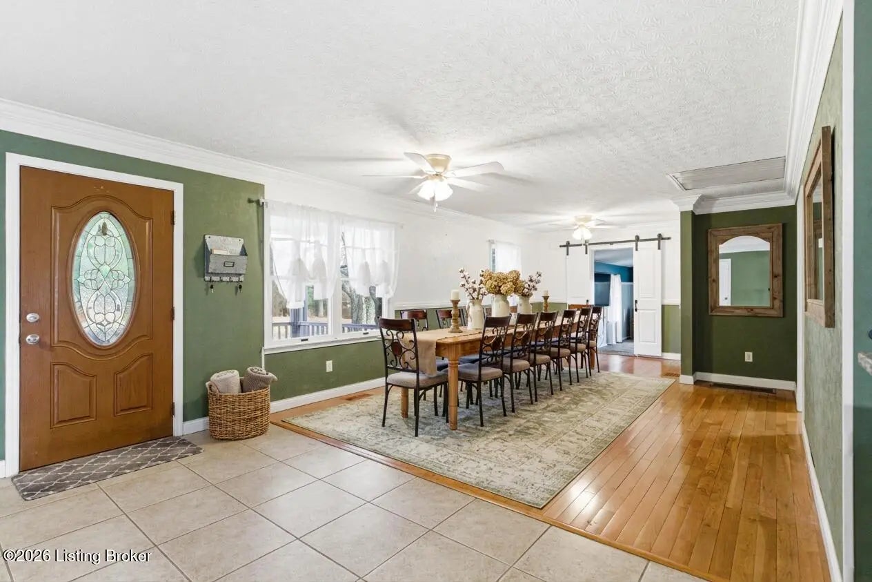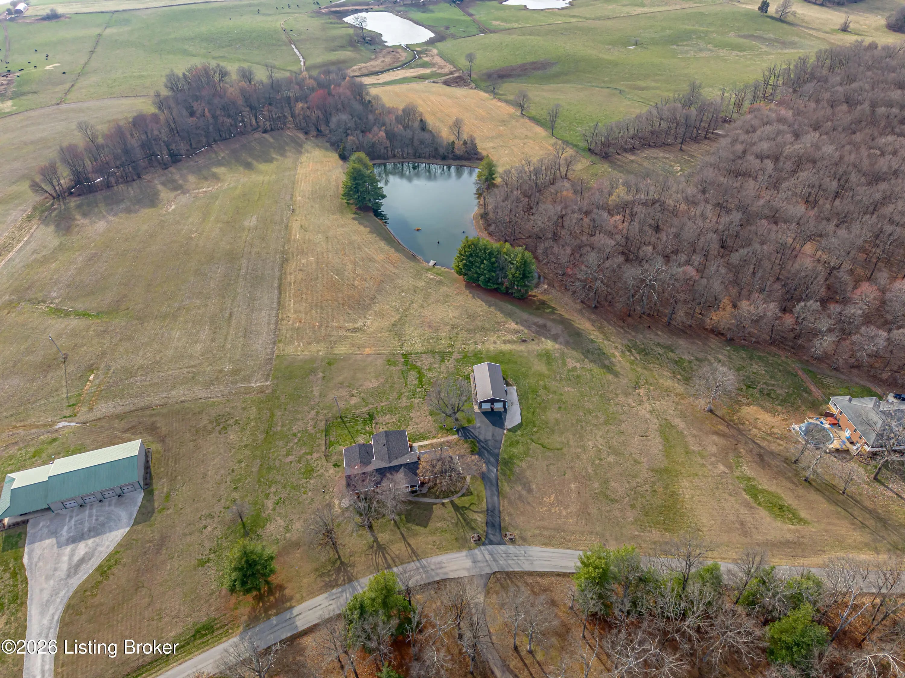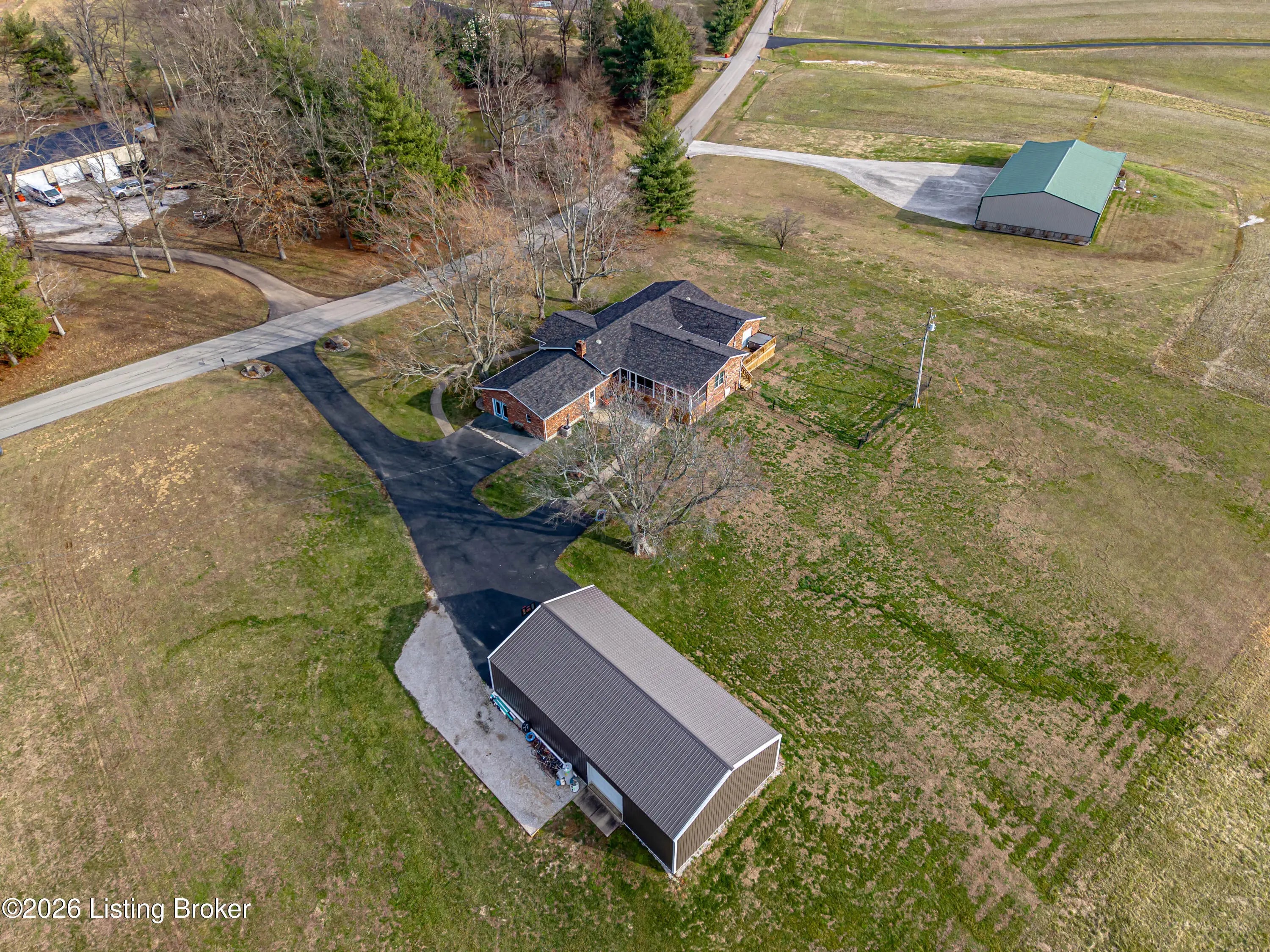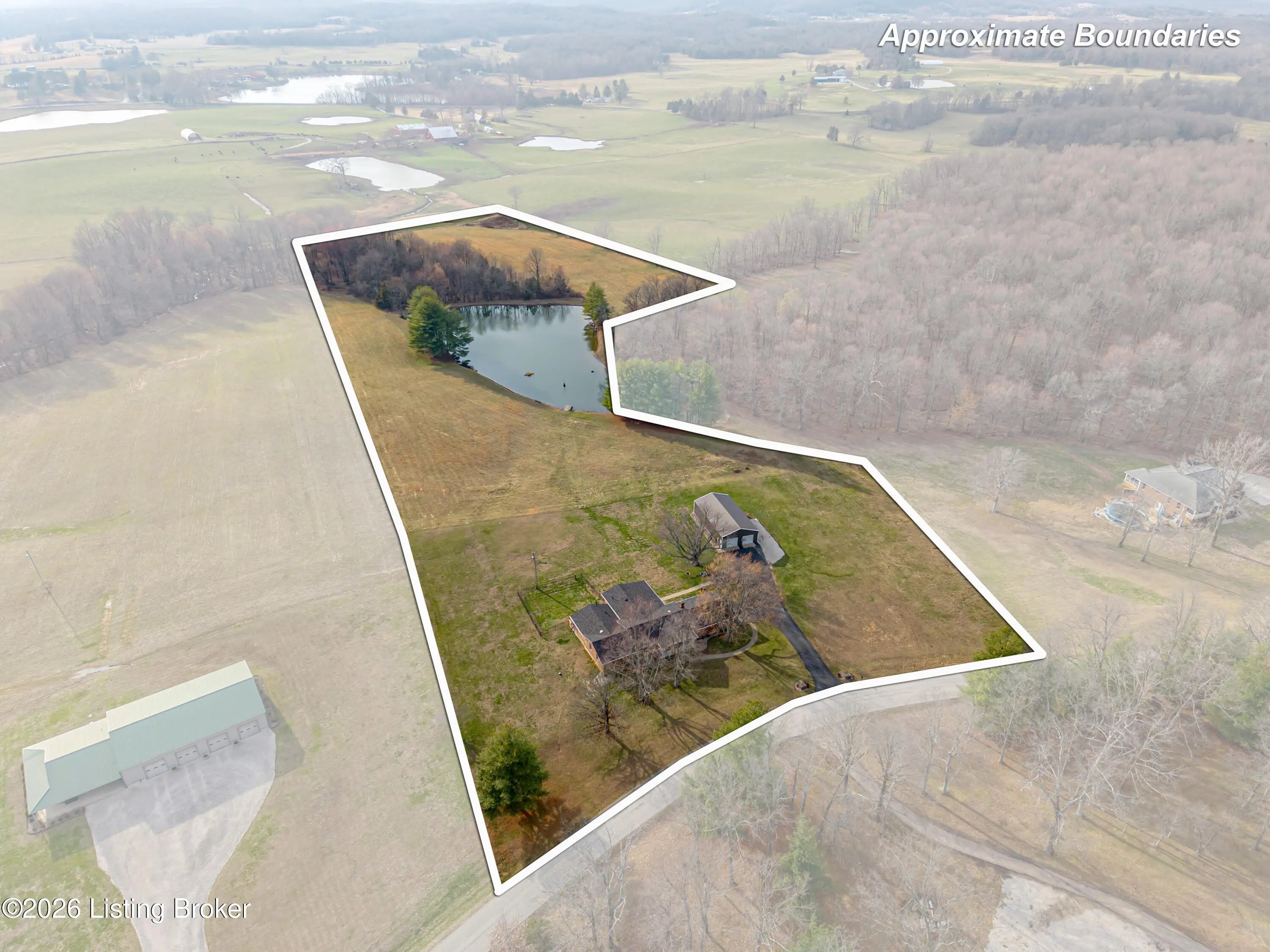 PRIVATE SETTING...LARGE HOME AND PROPERTY...MOVE-IN READY...Nestled on over 10.5 ACRES of Serene, Peaceful land with a 2 Acre Lake, this EXCEPTIONAL home boasts 3 SPACIOUS BEDROOMS, each with its own PRIVATE SUITE, and 5 TOTAL BATHROOMS. The possibilities are endless, with room to expand for more bedrooms. Enjoy a LARGE, STOCKED, SHARED LAKE on the property, perfect for fishing and including a Stationary Dock, as well as a Floating Dock. The Interior Boasts a MAGNIFICENT, SPACIOUS DINING ROOM ideal for gatherings. The RECENTLY UPDATED KITCHEN is a Chef's dream, and the home also features TWO FIREPLACES, creating WARM, INVITING spaces. There is another Kitchenette, a Laundry Room, and an Office on the main level. In the FINISHED WALK-UP BASEMENT you'll find a SEPARATE OFFICE AREA plus... ...an EXERCISE SPACE, along with a GAME ROOM and Wet-bar Area for added flexibility. Two ELECTRIC SERVICES power the home, complemented by GEOTHERMAL HEATING and a SPLIT UNIT for year-round comfort. Additionally , there is BACKUP PROPANE HEAT for added security. Outside, a Detached "GAR-BARN" (Garage-Barn) offers extra storage, with THREE GARAGE DOORS, Electricity, and Concrete Floors. Inside find Lots of Windows and Light, including Tons of Storage. Outside reveals Covered Porches and Decks, a Black Metal Pet Fence, and Scenic, Amazing Acreage. This LUXURIOUS, VERSATILE retreat combines comfort, beauty, and endless potential. Call for your private showing, and PACK YOUR BAGS!