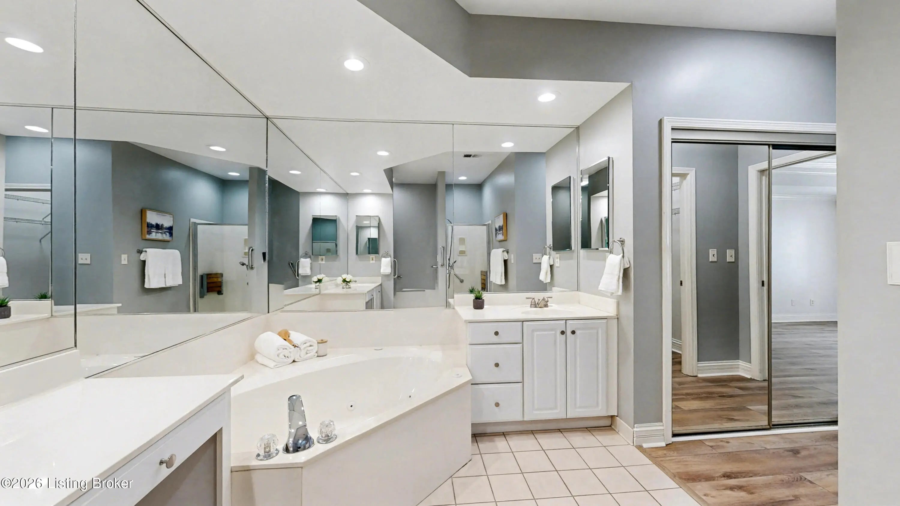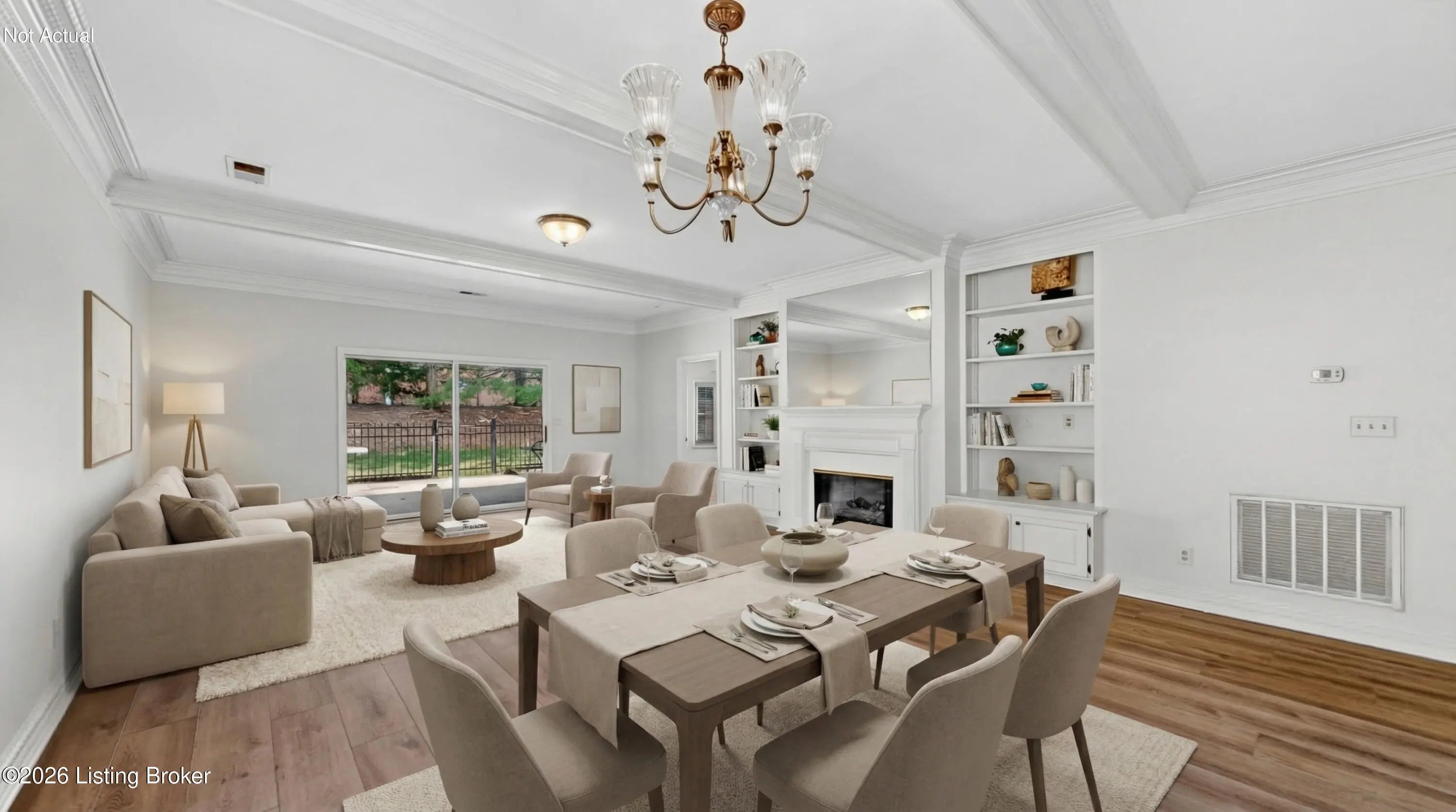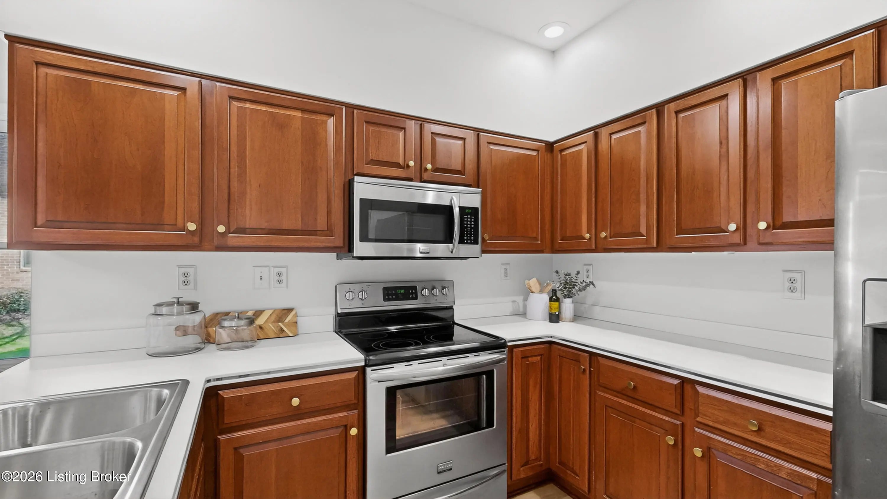 Beautifully updated and meticulously maintained, this bright 2-bed, 2-bath end-unit condo offers comfort, space, and an ideal floor plan. The first-floor primary suite provides easy living, while two separate living rooms, each with a fireplace, offer flexible space for relaxing or entertaining. The eat-in kitchen features stainless appliances, solid surface countertops, a planning desk, and dining area, plus a formal dining room. Enjoy the large enclosed patio with gardening space, perfect for flowers or vegetables. Additional highlights include new flooring throughout (no carpet), fresh neutral paint, wide hallways, 9-ft ceilings, and an attached two-car garage with one step into the home. This well kept community is conveniently located and offers ample guest parking. A must see!!