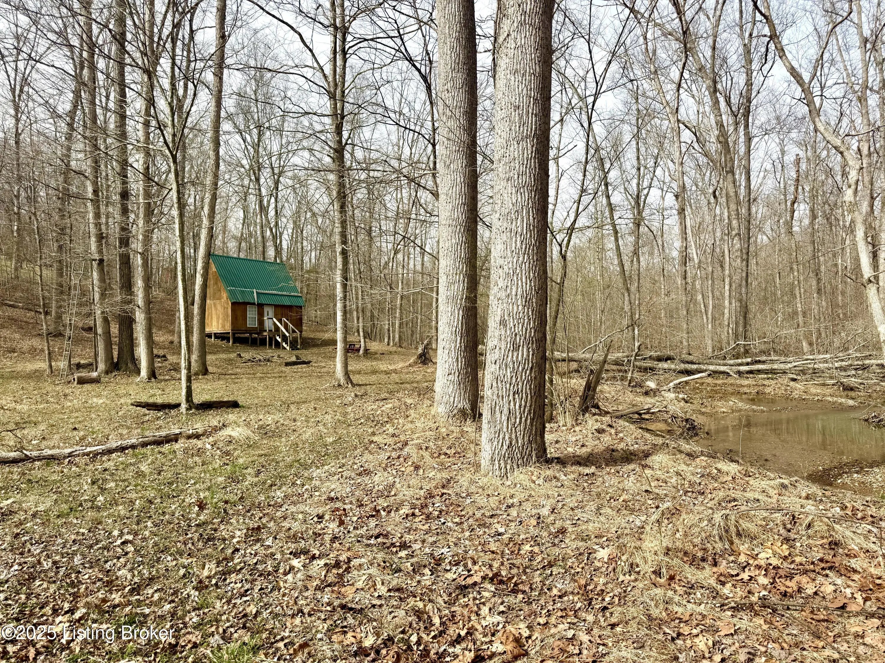 Looking for a place to get away from it all? This unfinished cabin sits on 2 adjoining parcels that are partially cleared & partially wooded totaling 1+/- acre in Ambassador Shores. Tucked off the beaten path and nestled near a winding creek, this unfinished cabin is just waiting for someone to finish to their liking. Surrounded by trees & wildlife, you're sure to find peace & quiet here while still being close to Nolin Lake. You'll find many places to add a hammock, tire swings & the magic of a firepit area for relaxing around at night. During the day the kids might enjoy fishing or catching crawdads in the creek while waiting to hit the lake. Let them bring their friends! Pitch some tents for some good ole camping in the great outdoors & they'll make memories that will last a lifetime! The 24 x 16 cabin is off to a good start having a framed out bathroom with a vanity, toilet & shower insert with room to add a washer/dryer. The spiral staircase leads you to the loft-like area that could be finished off as private sleeping quarters. This Property is located 5 minutes from the nearest boat ramp for convenient boat launching. Cabin is already connected to city water, has a septic tank in place and electric that is provided by a temporary pole. There is no water heater. Property is accessible from Briarwood Rd or by crossing the creek off of Kirkwood. Three concrete culverts remain which could be installed by the new owner for easier creek crossing. Property is being sold as-is with all cabin contents to remain. This is one of those spots that just feels good to be at...Schedule your showing, bring your vision & imagine the possibilities!