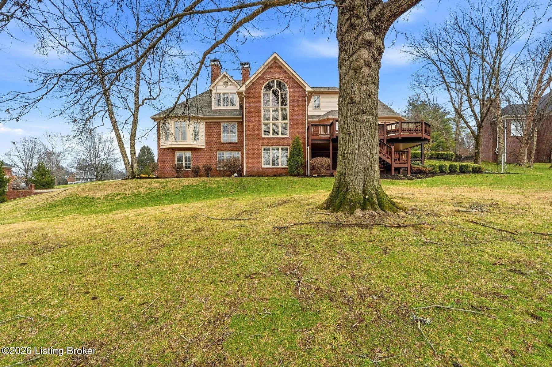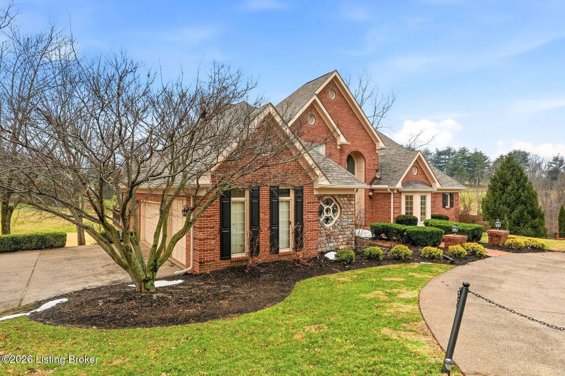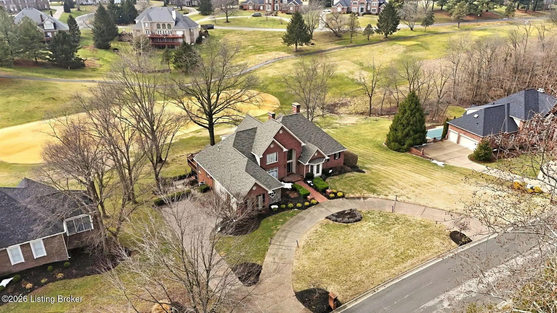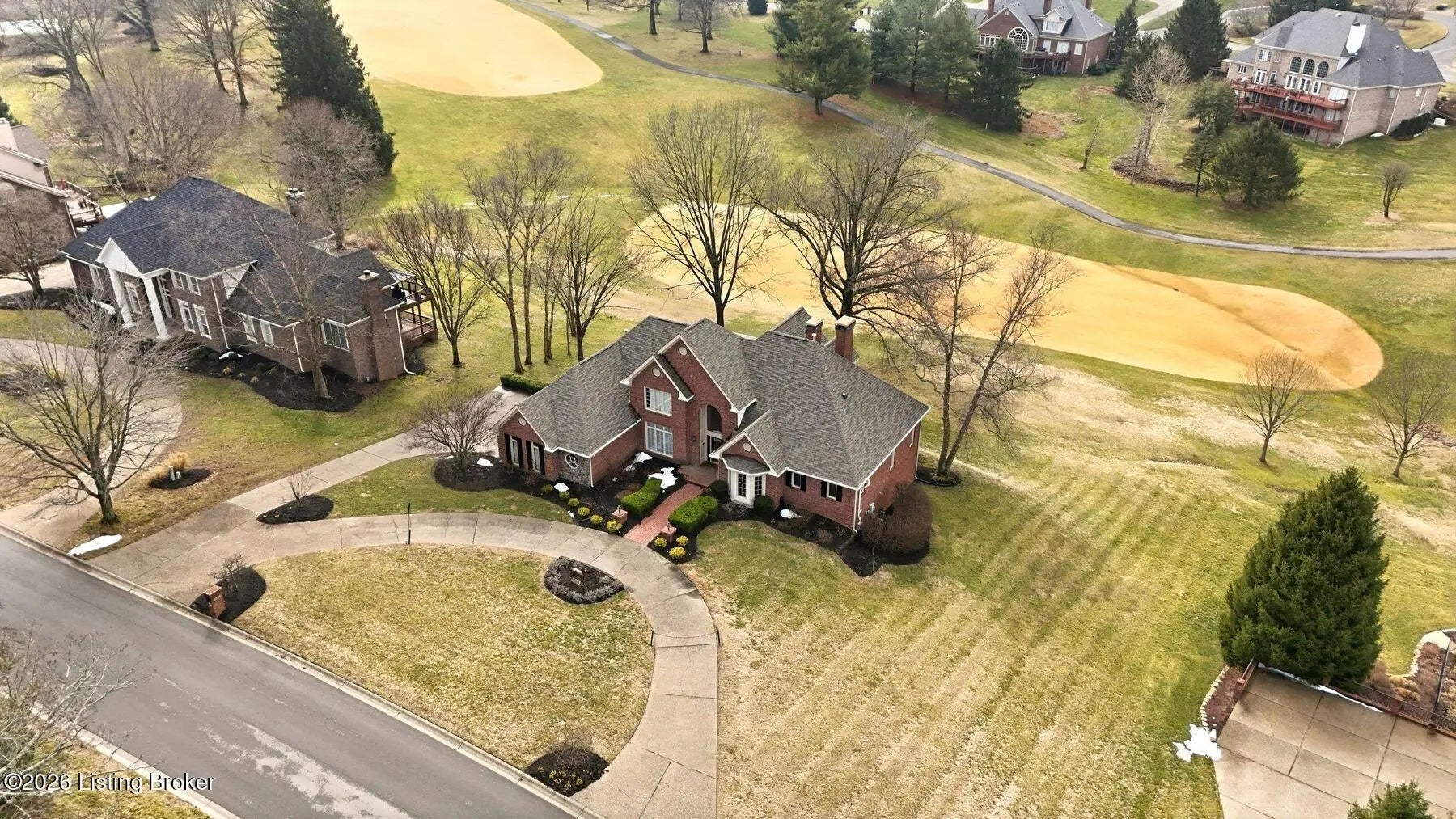 Nestled on a stunning golf-course lot within desirable Estates of Hunting Creek, this timeless two-story home offers a quintessential estate experience with custom millwork, soaring ceilings, scenic views, and three spacious levels of living space with 5 bedrooms, 4 full baths, and 2 half baths. Homeowners will further appreciate the home's brand new roof (2025) for added peace of mind. Past an impressive semicircular driveway with extended brick walkway, guests first arrive into a light-filled two-story foyer with bright picture window, herringbone tile floors, and convenient coat closets. To the right, a spacious living room with tray ceiling, hardwood floors with custom inlay, and oversize windows is the perfect place to greet guests. Beyond arched entryways, an elegant dining room with wainscoting and tray ceiling adjoins the foyer and invites guests further into the gourmet eat-in kitchen and windowed breakfast room. With stainless steel appliances, granite countertops, prep island, and spacious pantry with custom storage, the eat-in kitchen has been designed for effortless entertaining. The kitchen opens to the adjoining windowed breakfast room with vaulted ceiling and access to the home's oversize deck. A custom wet bar joins the kitchen and living areas, making the perfect spot for a bourbon collection or butler's pantry. Overlooking the home's scenic golf course setting, the stunning great room features a bright fireplace with decorative mantel, soaring vaulted ceiling, and dramatic picture window with incredible views. The first floor continues into a luxurious owner's suite unlike any other, beginning with a handsome wood-panel study with impressive trim detail and fireplace adjoining directly to the primary bedroom. With beautiful golf course views, the first floor primary bedroom features double tray ceiling, fireplace, and dual walk-in closets. A spa-inspired primary bathroom provides owners with an everyday getaway, offering his-and-her vanities, soaking tub, and oversized shower. The first floor is complete with a stylish powder room, large laundry with half bath, and attached 3-car garage. The second floor offers two spacious bedrooms with Jack-and-Jill bath and a gracious guest suite with built-in window bench and updated en-suite bath. Designed for spending time with family and friends, the walkout lower level of the home features a bright family room with cozy stone fireplace, game room, exercise room, spacious guest bedroom with walk-in closet, full bath, play room, and plenty of room for additional storage. With a spacious tiered deck overlooking the manicured golf course and large backyard, the home's outdoor area is the perfect place for unwinding and entertaining. Homeowners enjoy the option of joining Hunting Creek's exclusive country club with 18-hole championship golf course, renovated clubhouse, tennis courts, and pool. A rare offering for the neighborhood, this home is not to be missed.