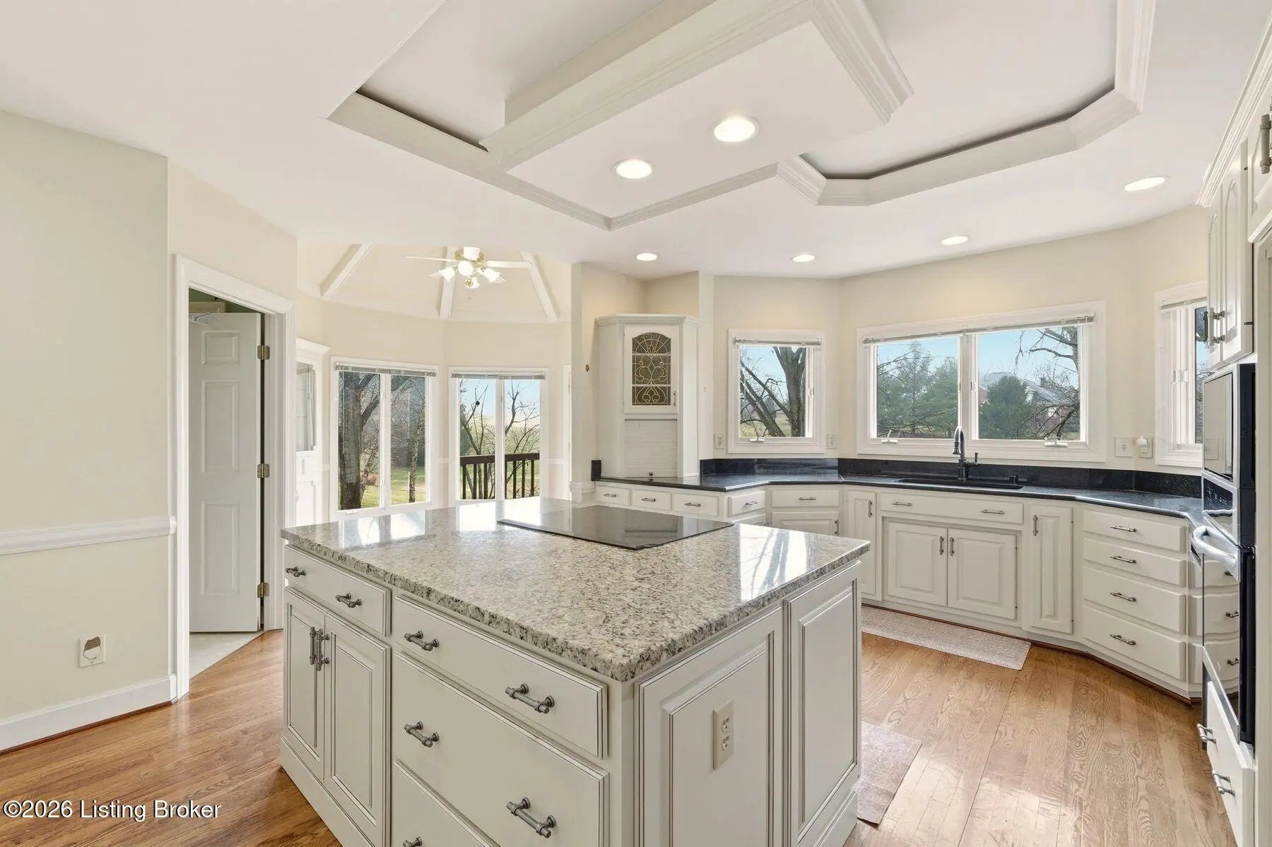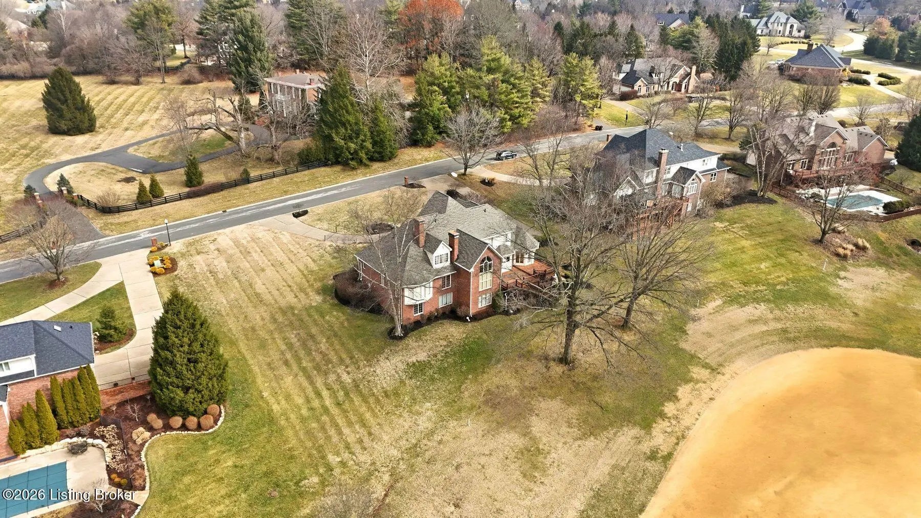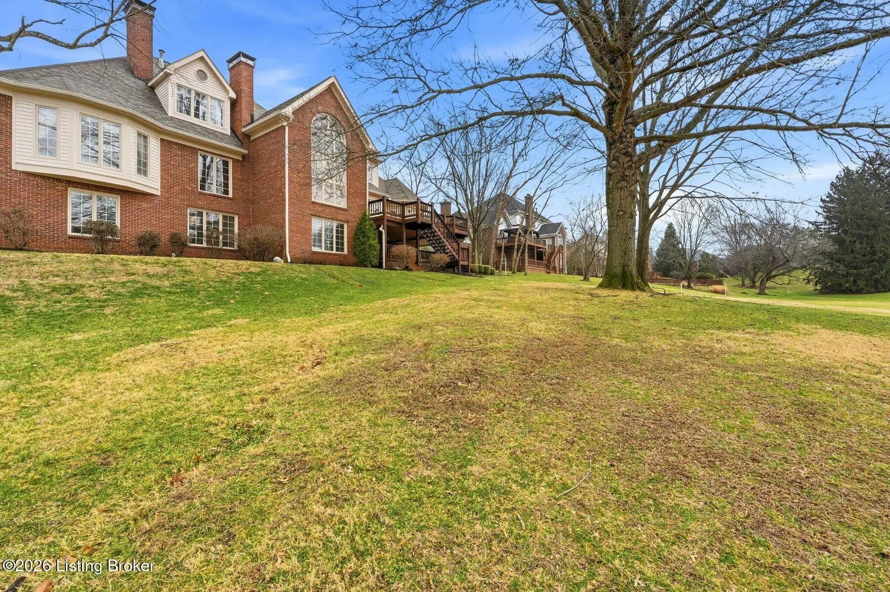 Nestled on a stunning golf-course lot within desirable Estates of Hunting Creek, this timeless two-story home offers a quintessential estate experience with custom millwork, soaring ceilings, scenic views, and three spacious levels of living space with 5 bedrooms, 4 full baths, and 2 half baths. Homeowners will further appreciate the home's brand new roof (2025) for added peace of mind. Past an impressive semicircular driveway with extended brick walkway, guests first arrive into a light-filled two-story foyer with bright picture window, herringbone tile floors, and convenient coat closets. To the right, a spacious living room with tray ceiling, hardwood floors with custom inlay, and oversize windows is the perfect place to greet guests. Beyond arched entryways, an elegant dining room with wainscoting and tray ceiling adjoins the foyer and invites guests further into the gourmet eat-in kitchen and windowed breakfast room. With stainless steel appliances, granite countertops, prep island, and spacious pantry with custom storage, the eat-in kitchen has been designed for effortless entertaining. The kitchen opens to the adjoining windowed breakfast room with vaulted ceiling and access to the home's oversize deck. A custom wet bar joins the kitchen and living areas, making the perfect spot for a bourbon collection or butler's pantry. Overlooking the home's scenic golf course setting, the stunning great room features a bright fireplace with decorative mantel, soaring vaulted ceiling, and dramatic picture window with incredible views. The first floor continues into a luxurious owner's suite unlike any other, beginning with a handsome wood-panel study with impressive trim detail and fireplace adjoining directly to the primary bedroom. With beautiful golf course views, the first floor primary bedroom features double tray ceiling, fireplace, and dual walk-in closets. A spa-inspired primary bathroom provides owners with an everyday getaway, offering his-and-her vanities, soaking tub, and oversized shower. The first floor is complete with a stylish powder room, large laundry with half bath, and attached 3-car garage. The second floor offers two spacious bedrooms with Jack-and-Jill bath and a gracious guest suite with built-in window bench and updated en-suite bath. Designed for spending time with family and friends, the walkout lower level of the home features a bright family room with cozy stone fireplace, game room, exercise room, spacious guest bedroom with walk-in closet, full bath, play room, and plenty of room for additional storage. With a spacious tiered deck overlooking the manicured golf course and large backyard, the home's outdoor area is the perfect place for unwinding and entertaining. Homeowners enjoy the option of joining Hunting Creek's exclusive country club with 18-hole championship golf course, renovated clubhouse, tennis courts, and pool. A rare offering for the neighborhood, this home is not to be missed.