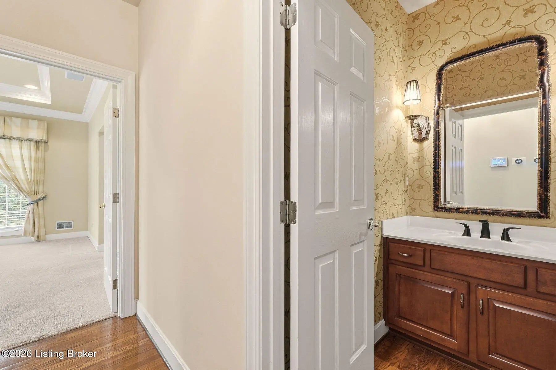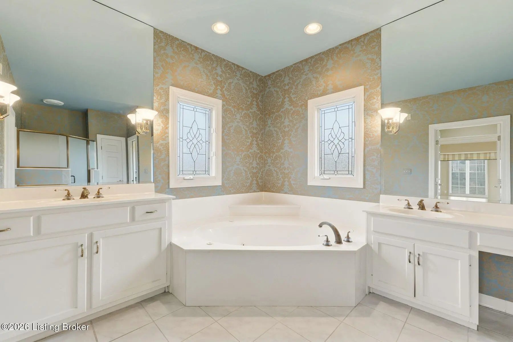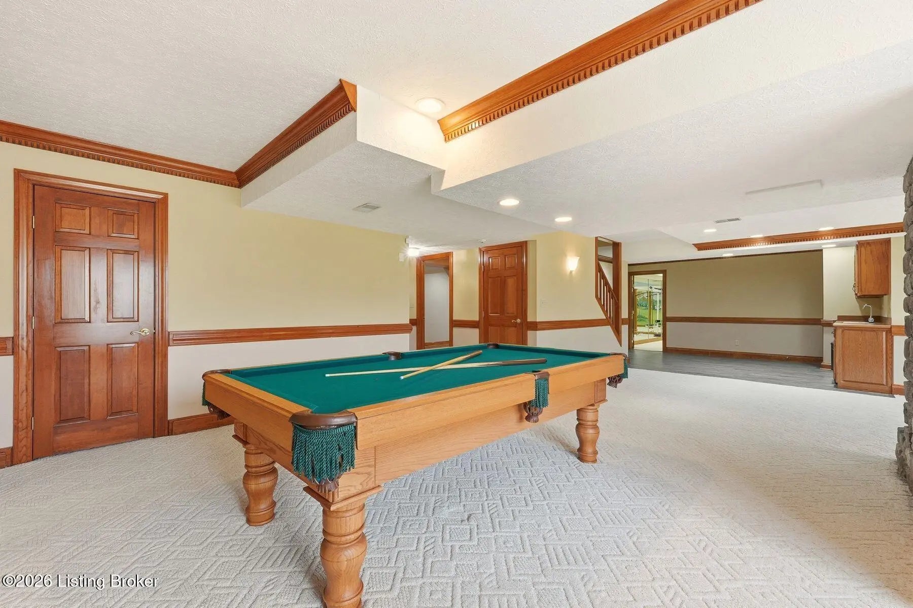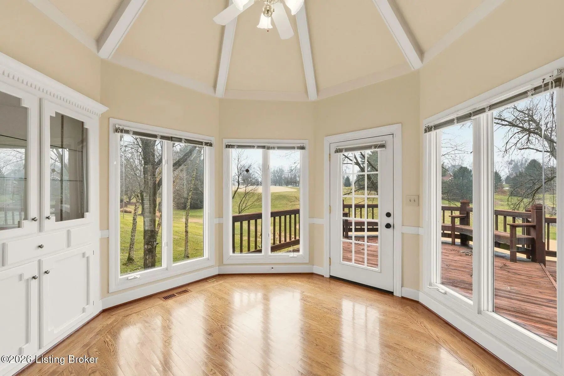 Nestled on a stunning golf-course lot within desirable Estates of Hunting Creek, this timeless two-story home offers a quintessential estate experience with custom millwork, soaring ceilings, scenic views, and three spacious levels of living space with 5 bedrooms, 4 full baths, and 2 half baths. Homeowners will further appreciate the home's brand new roof (2025) for added peace of mind. Past an impressive semicircular driveway with extended brick walkway, guests first arrive into a light-filled two-story foyer with bright picture window, herringbone tile floors, and convenient coat closets. To the right, a spacious living room with tray ceiling, hardwood floors with custom inlay, and oversize windows is the perfect place to greet guests. Beyond arched entryways, an elegant dining room with wainscoting and tray ceiling adjoins the foyer and invites guests further into the gourmet eat-in kitchen and windowed breakfast room. With stainless steel appliances, granite countertops, prep island, and spacious pantry with custom storage, the eat-in kitchen has been designed for effortless entertaining. The kitchen opens to the adjoining windowed breakfast room with vaulted ceiling and access to the home's oversize deck. A custom wet bar joins the kitchen and living areas, making the perfect spot for a bourbon collection or butler's pantry. Overlooking the home's scenic golf course setting, the stunning great room features a bright fireplace with decorative mantel, soaring vaulted ceiling, and dramatic picture window with incredible views. The first floor continues into a luxurious owner's suite unlike any other, beginning with a handsome wood-panel study with impressive trim detail and fireplace adjoining directly to the primary bedroom. With beautiful golf course views, the first floor primary bedroom features double tray ceiling, fireplace, and dual walk-in closets. A spa-inspired primary bathroom provides owners with an everyday getaway, offering his-and-her vanities, soaking tub, and oversized shower. The first floor is complete with a stylish powder room, large laundry with half bath, and attached 3-car garage. The second floor offers two spacious bedrooms with Jack-and-Jill bath and a gracious guest suite with built-in window bench and updated en-suite bath. Designed for spending time with family and friends, the walkout lower level of the home features a bright family room with cozy stone fireplace, game room, exercise room, spacious guest bedroom with walk-in closet, full bath, play room, and plenty of room for additional storage. With a spacious tiered deck overlooking the manicured golf course and large backyard, the home's outdoor area is the perfect place for unwinding and entertaining. Homeowners enjoy the option of joining Hunting Creek's exclusive country club with 18-hole championship golf course, renovated clubhouse, tennis courts, and pool. A rare offering for the neighborhood, this home is not to be missed.
