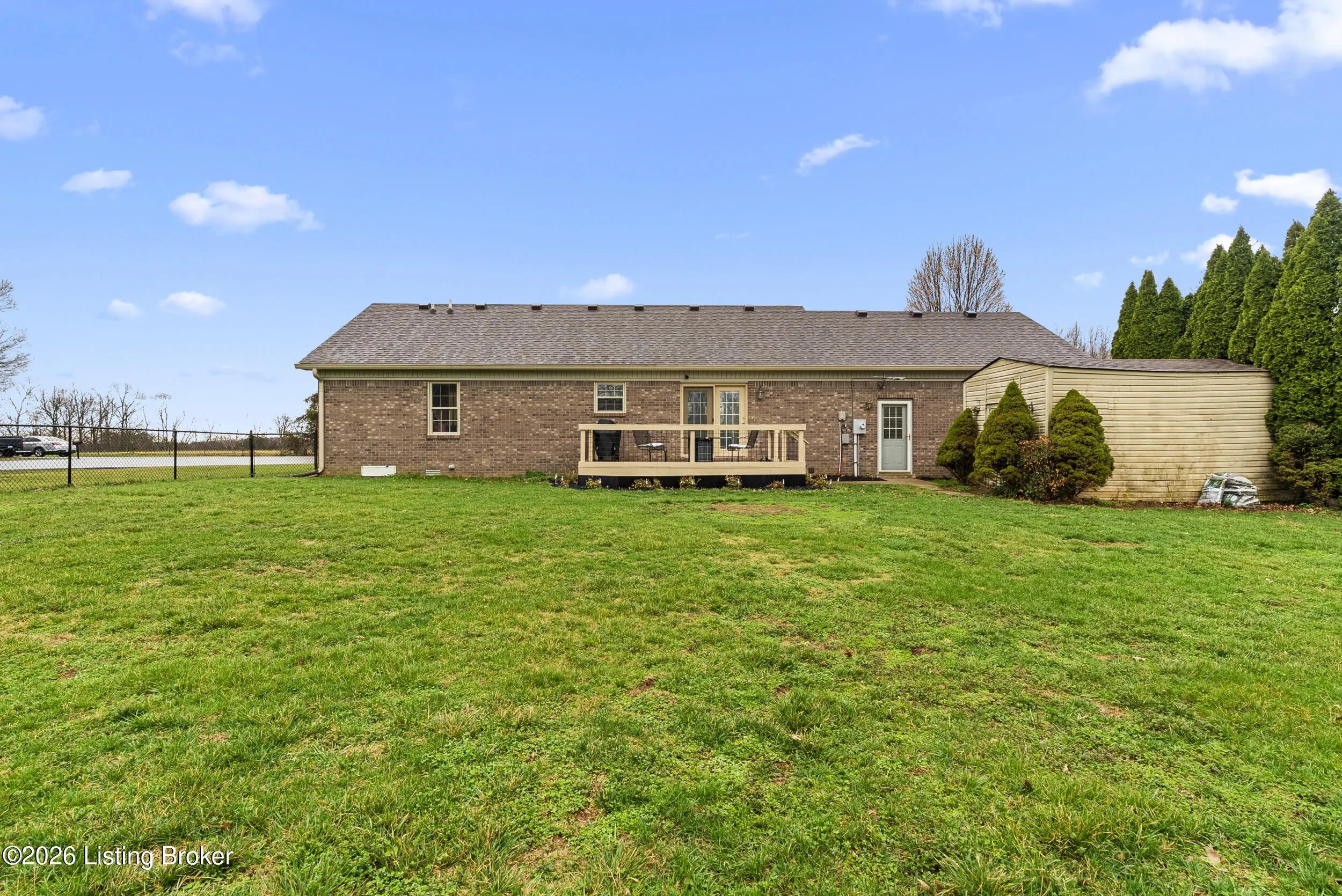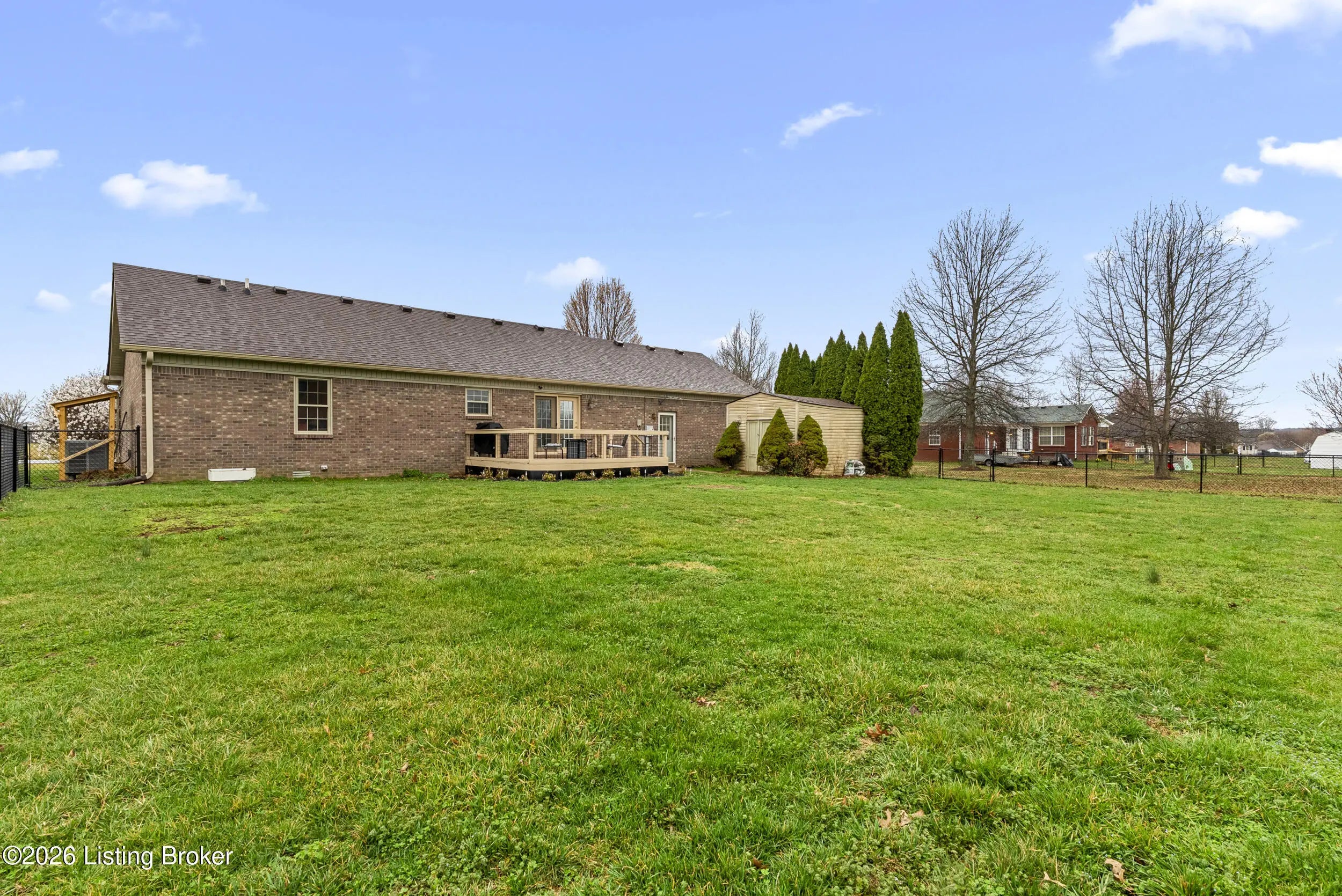 This home is truly turn-key ready. All furniture, appliances (excluding master suite) even the John Deer zero turn lawn mower is included. This well-maintained 3-bedroom, 2 full bath all-brick home offering comfort, convenience, great functionality and perfect location. The spacious eat-in kitchen features plenty of cabinet storage and ample countertop space, making it perfect for everyday living and entertaining. Step outside to enjoy the large fully fenced backyard, ideal for relaxing, pets, or gatherings. A separate outbuilding provides extra storage for lawn equipment, allowing you to make full use of the attached 2-car garage for parking.