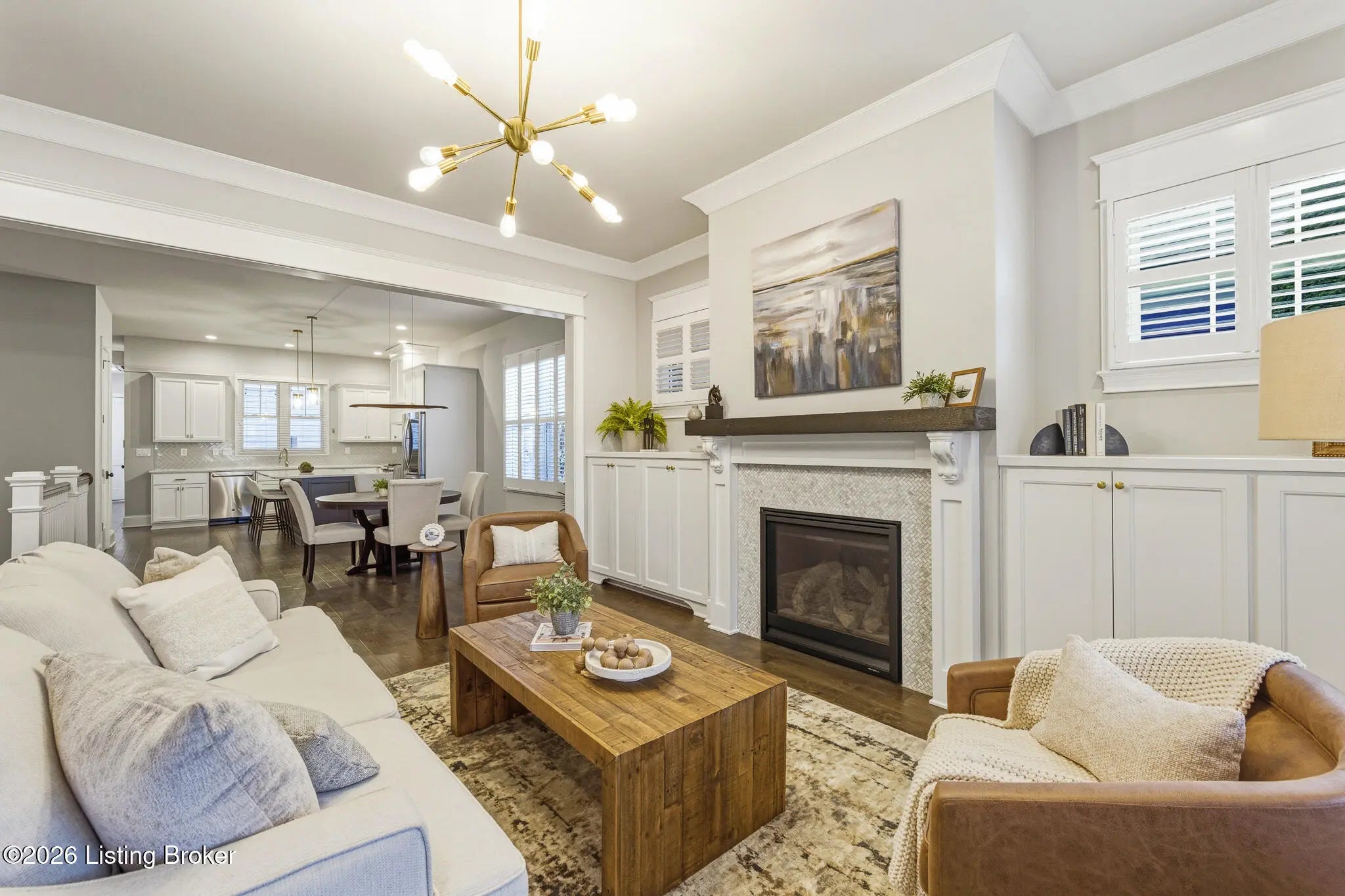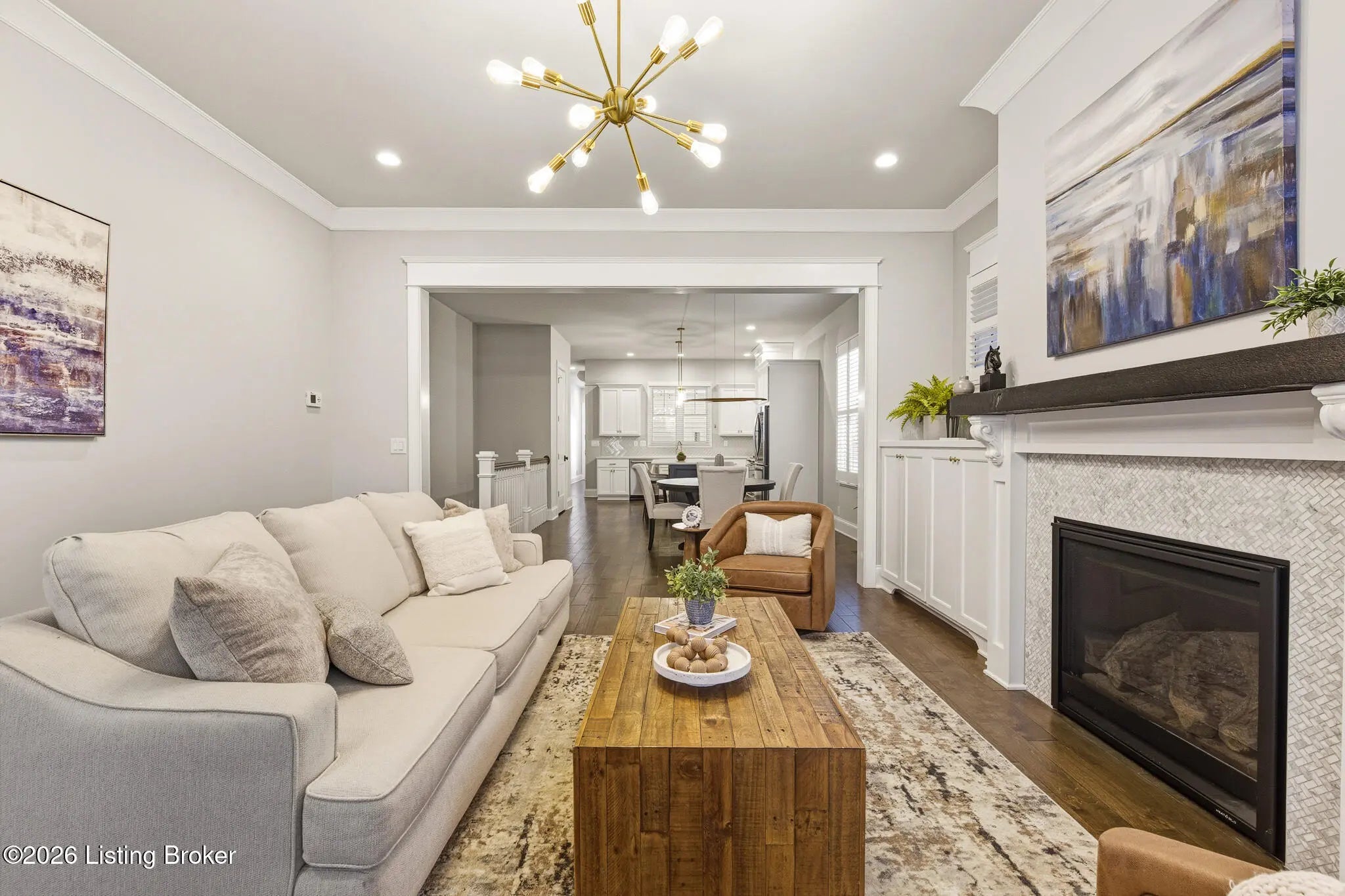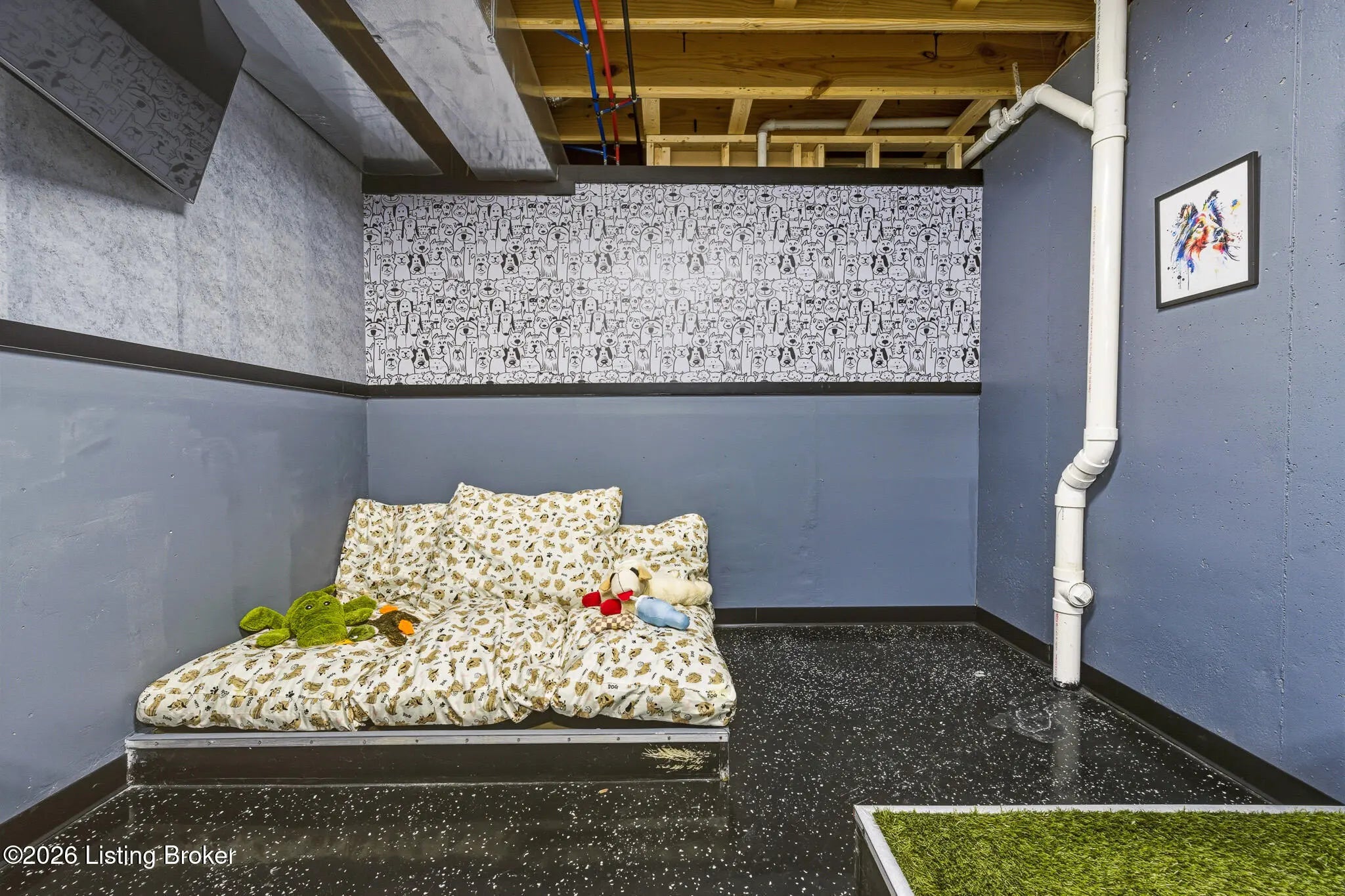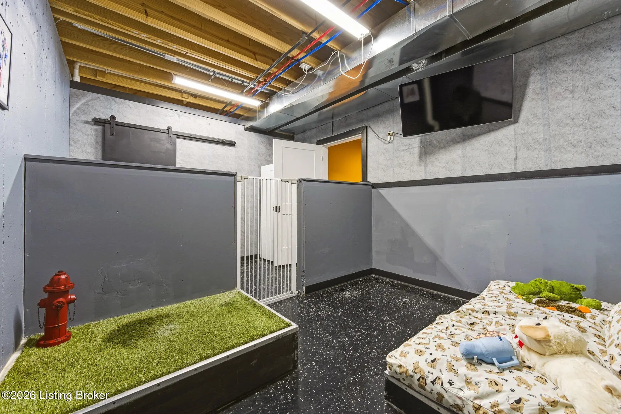 Welcome home to 6425 Paintbrush Lane in the North Village of Norton Commons. This three-bedroom, three-bathroom ranch home offers easy single-story living with impressive amenities throughout. The open first floor features a thoughtfully designed living room with built-ins and a gas fireplace that flows seamlessly into a bright kitchen equipped with a pantry and a gas range. The island offers plenty of seating and the kitchen showcases upgraded lighting, fixtures, and appliances. The first-floor primary suite is well laid out, flowing through the en suite—complete with a large walk-in shower and double vanities—into an attached walk-in closet. A second bedroom and updated full bath complete the main level, along with convenient first-floor laundry. The fully finished basement is an entertainer's dream, complete with surround sound and a custom bar featuring a beer tap, wine cooler, and beverage cooler. A third bedroom and full bath provide comfortable guest accommodations. For pet lovers, the home even includes a dedicated dog room with a TV, lounge area, and custom doggie door, adding unique charm. The basement also offers a large unfinished area, allowing for ample storage. Outside, the backyard delivers resort-style relaxation with a Jacuzzi hot tub, an outdoor gas fireplace with a covered seating area and electric heater, and an outdoor kitchen area with a gas grill, and a charcoal egg smoker that conveys. Maintenance-free turf yard create the perfect space for pets and leisure alike. An expansive and rare three-car garage with a Tesla charger rounds out the package. All appliances are included, along with the washer and dryer. The home also features geothermal heating and cooling for added efficiency. Norton Commons residents enjoy parks, trails, 3 pools (including one splash pool), dog parks, community gardens, playgrounds, fully stocked lake, amphitheater, walking trails, vibrant community events, and nearby dining and shopping.