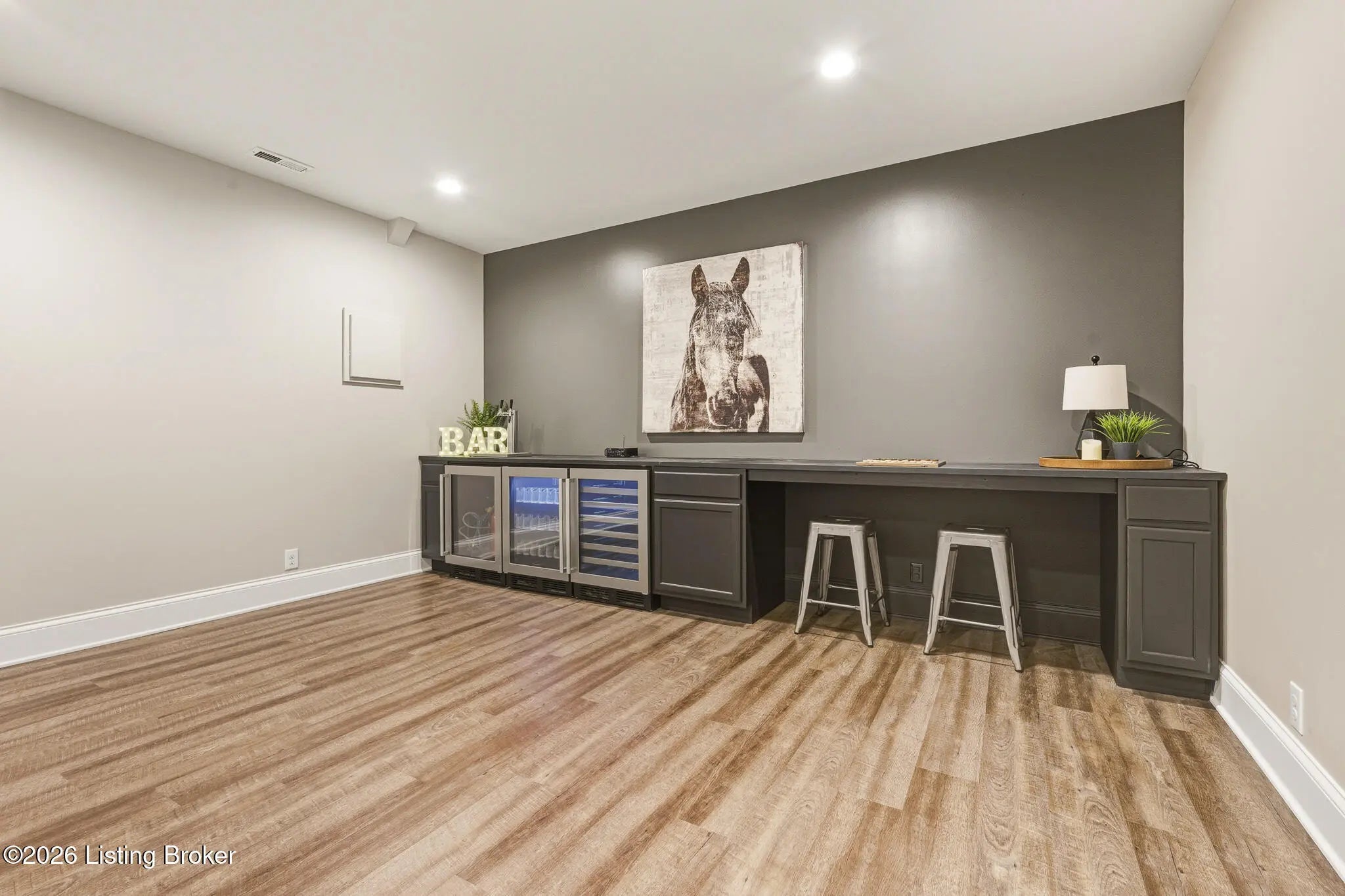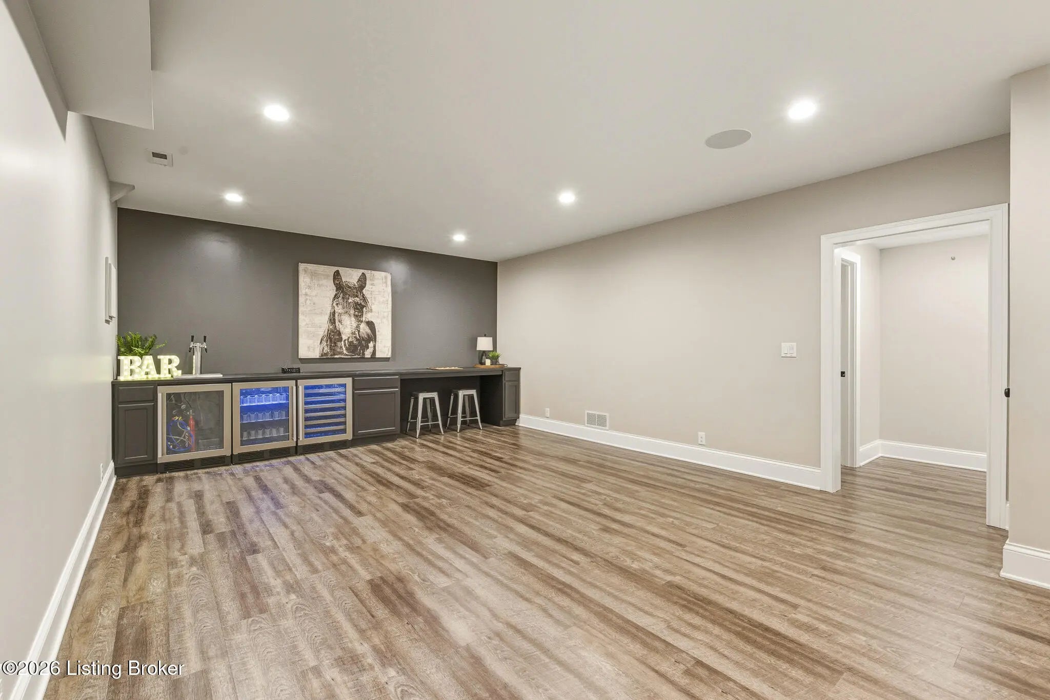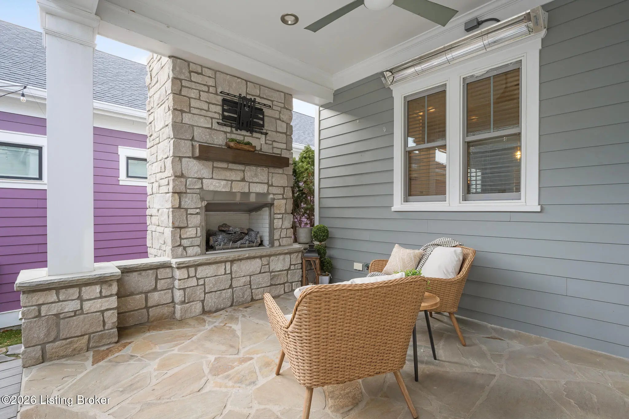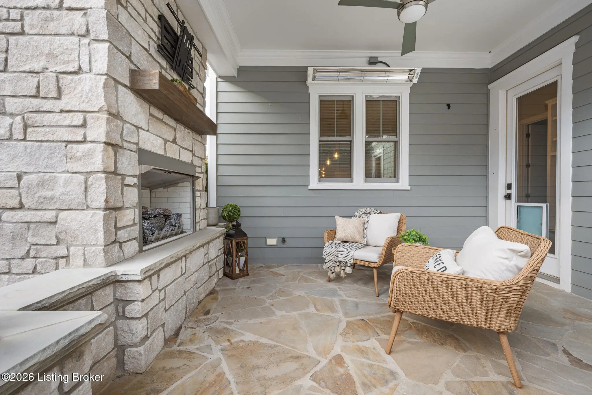 Welcome home to 6425 Paintbrush Lane in the North Village of Norton Commons. This three-bedroom, three-bathroom ranch home offers easy single-story living with impressive amenities throughout. The open first floor features a thoughtfully designed living room with built-ins and a gas fireplace that flows seamlessly into a bright kitchen equipped with a pantry and a gas range. The island offers plenty of seating and the kitchen showcases upgraded lighting, fixtures, and appliances. The first-floor primary suite is well laid out, flowing through the en suite—complete with a large walk-in shower and double vanities—into an attached walk-in closet. A second bedroom and updated full bath complete the main level, along with convenient first-floor laundry. The fully finished basement is an entertainer's dream, complete with surround sound and a custom bar featuring a beer tap, wine cooler, and beverage cooler. A third bedroom and full bath provide comfortable guest accommodations. For pet lovers, the home even includes a dedicated dog room with a TV, lounge area, and custom doggie door, adding unique charm. The basement also offers a large unfinished area, allowing for ample storage. Outside, the backyard delivers resort-style relaxation with a Jacuzzi hot tub, an outdoor gas fireplace with a covered seating area and electric heater, and an outdoor kitchen area with a gas grill, and a charcoal egg smoker that conveys. Maintenance-free turf yard create the perfect space for pets and leisure alike. An expansive and rare three-car garage with a Tesla charger rounds out the package. All appliances are included, along with the washer and dryer. The home also features geothermal heating and cooling for added efficiency. Norton Commons residents enjoy parks, trails, 3 pools (including one splash pool), dog parks, community gardens, playgrounds, fully stocked lake, amphitheater, walking trails, vibrant community events, and nearby dining and shopping.