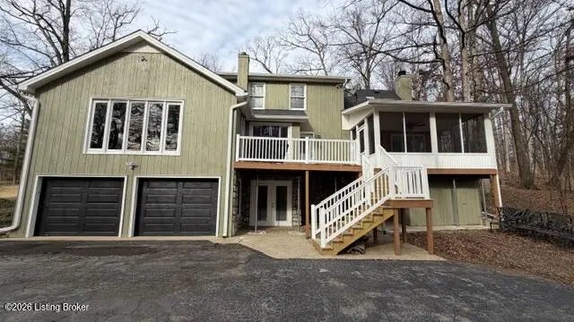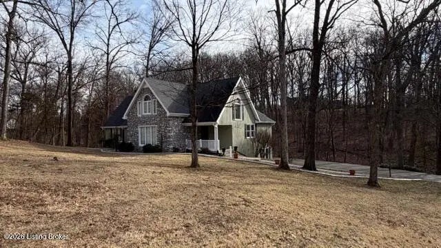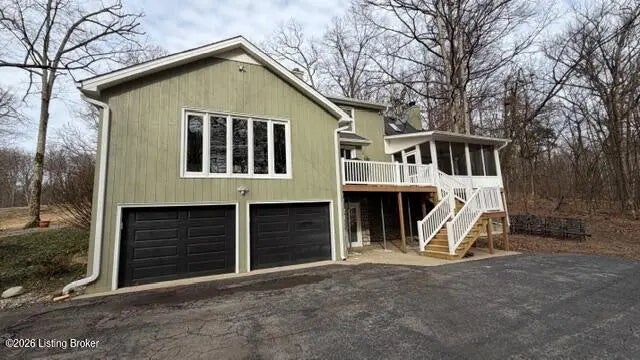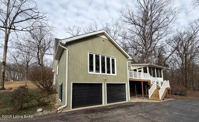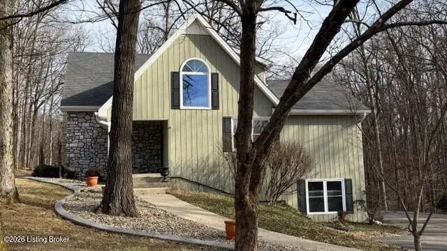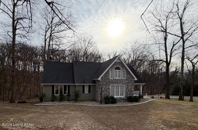 The feel of the country yet close to all the amenities of historic Bardstown awaits you at 3124 Yorkshire Drive with this impressive four bedroom three & a half bath Cape Cod style home with partially finished walkout basement & two car lower-level garage situated on 1.24 scenic & wooded acres located in Camelot near all the amenities of historic Bardstown. Plenty of room for everyone awaits you in this wonderful home. Spacious carpeted Den with decorative exposed wooden beams, built in bookcases & cozy gas fireplace. Kitchen features hardwood, crown molding, lovely cabinetry, stainless appliances & convenient breakfast bar. Dining area offers an open double sided gas fireplace, an abundance of natural lighting with the large windows overlooking the scenic wooded lot. Desirable spacious & comfortable carpeted first floor Primary suite with tiled Primary Bath offering relaxing jacuzzi tub & separate stand-up shower. Upstairs houses three additional spacious bedrooms along with a tiled full Bath. Venture to the basement to enjoy the carpeted Den, full Bath & Laundry. There are many outdoor features to enjoy starting with the screened in porch where you can enjoy scenic views of the wooded lot & enjoy bird watching & plenty of wildlife. Additional deck & patio areas are perfect spots to enjoy your morning coffee or afternoon tea. Your views and outdoor amenities are numerous. All this near all the amenities of historic Bardstown including shopping, schools & restaurants. Great commute location via both 31W as well as Hwy 245 leading you to I65. You don't want to miss this wonderful home. Call today for your personal tour!