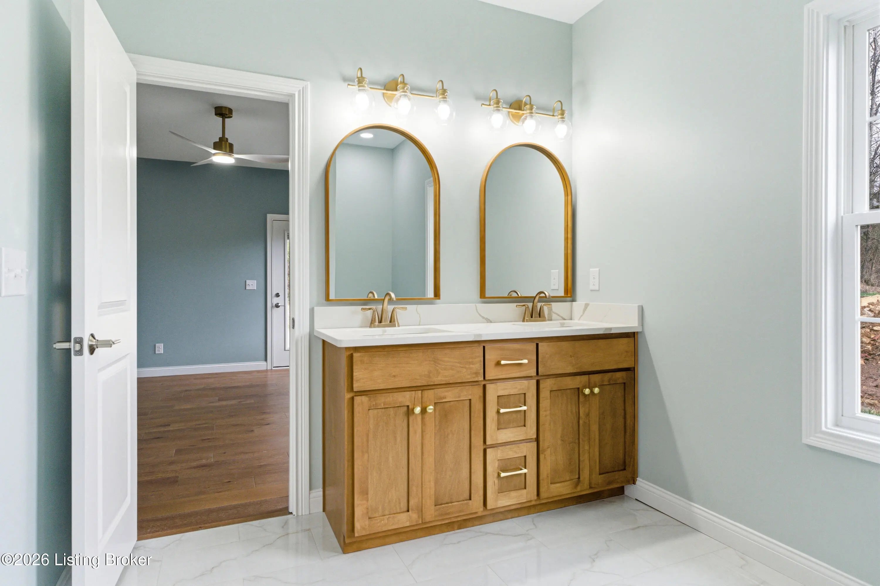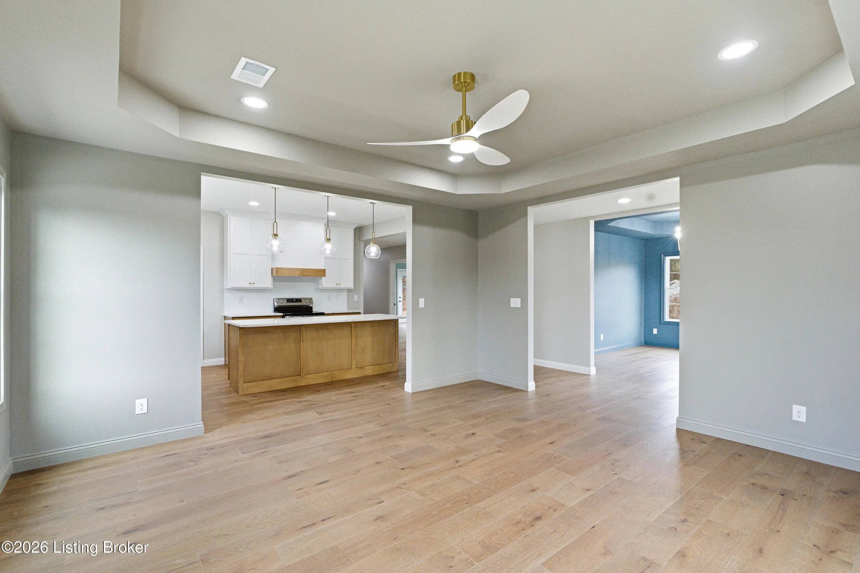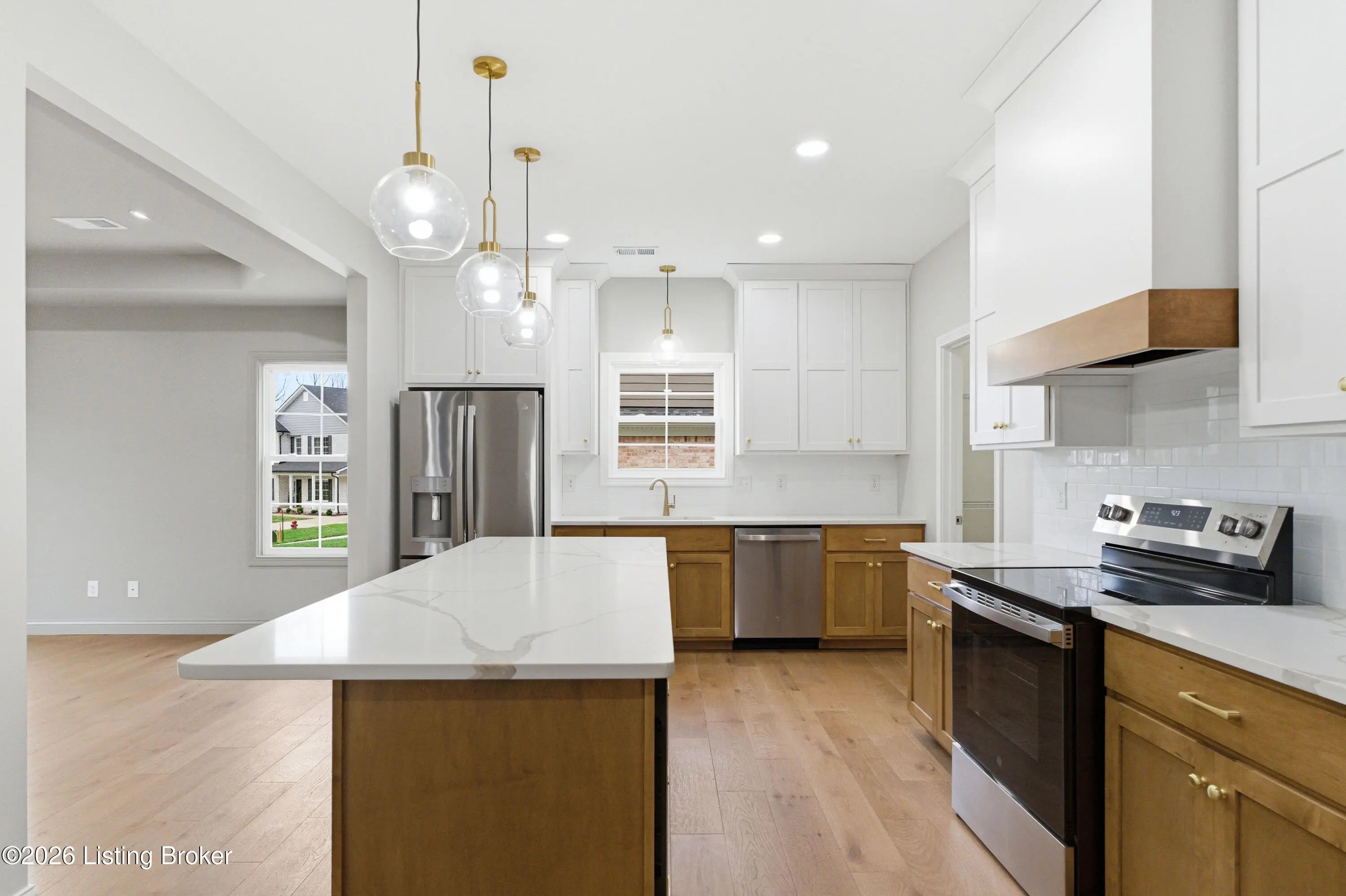 Welcome to 1006 Rowan Creek Dr, a gorgeous new construction home nestled in a charming cul-de-sac setting. Offering 2407 sq ft, this beautifully designed, 4 bedroom, 2.5 bath home blends style, space, and thoughtful details throughout. The inviting living room features a trey ceiling with stunning color drenching, creating a warm and sophisticated focal point that flows seamlessly into the kitchen. The kitchen is a true showstopper with beautiful, white and natural wood cabinetry, a large quartz island perfect for gathering and entertaining, and a classic white subway tile backsplash. All stainless appliances. The dining room also has a trey ceiling and is elegant and comfortable with color drenching and gold accent lighting. Just off the garage entry you'll find a spacious laundry and mudroom area featuring wood cabinetry and built-in cubbies, providing plenty of storage and the perfect drop zone for coats, bags, and shoes. The primary suite offers a private retreat with patio access, a tiled walk-in shower, and a double vanity with elegant gold accents. Upstairs you'll find three additional bedrooms and a full bath, including one bedroom with a vaulted ceiling and an offset nook that would be perfect for a play area, reading space, or home office. The exterior offers gorgeous curb appeal with classic red brick, Hardie board siding, and shake accents. Enjoy privacy in the back of the home, along with a large turnaround area off the 2-car attached garage for convenient parking and easy access. The neighborhood also features a beautiful common green space that's perfect for kids to play and enjoy the outdoors. Great location, close to all that beautiful Bardstown has to offer! Schedule your showing today and make this beautiful home yours!