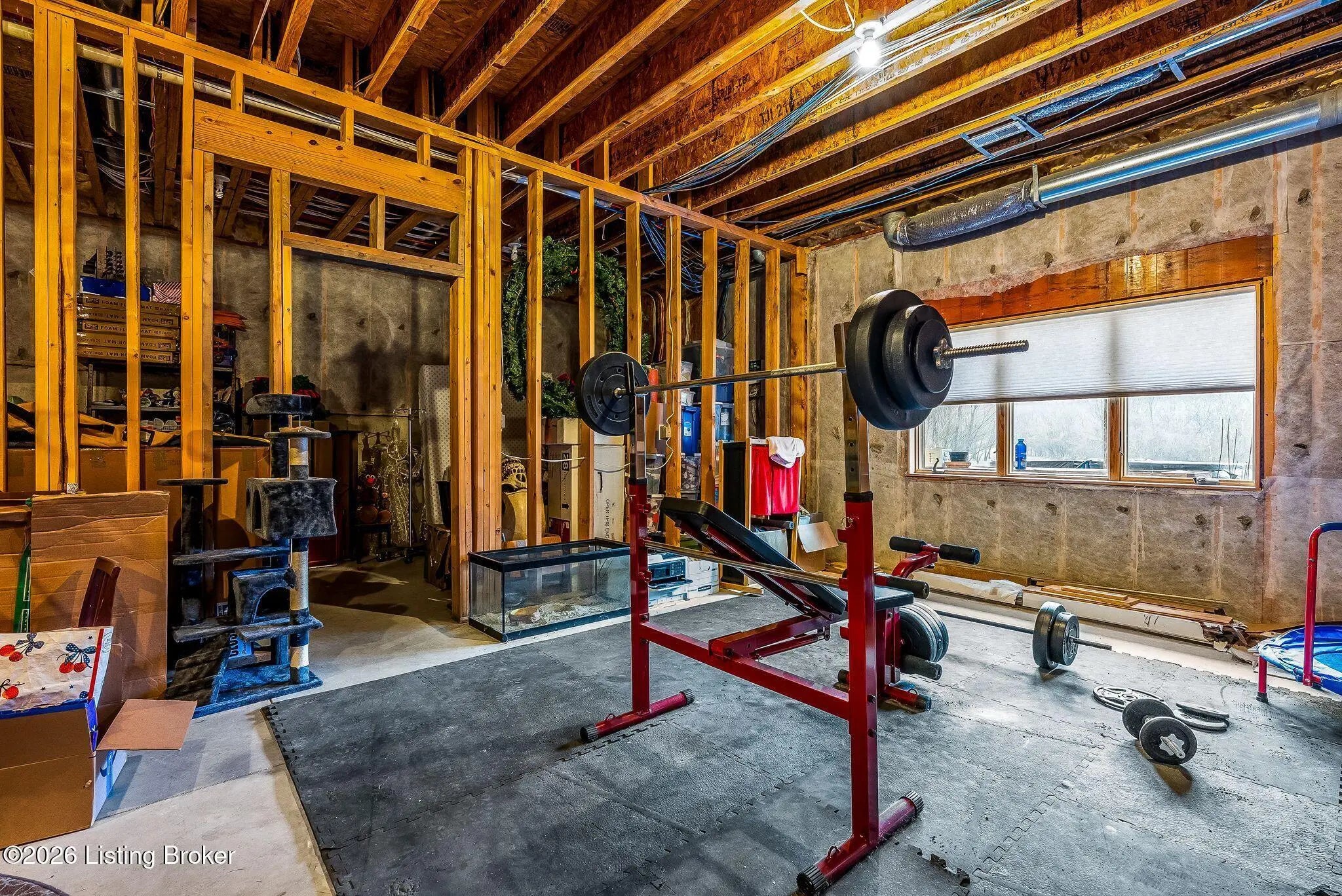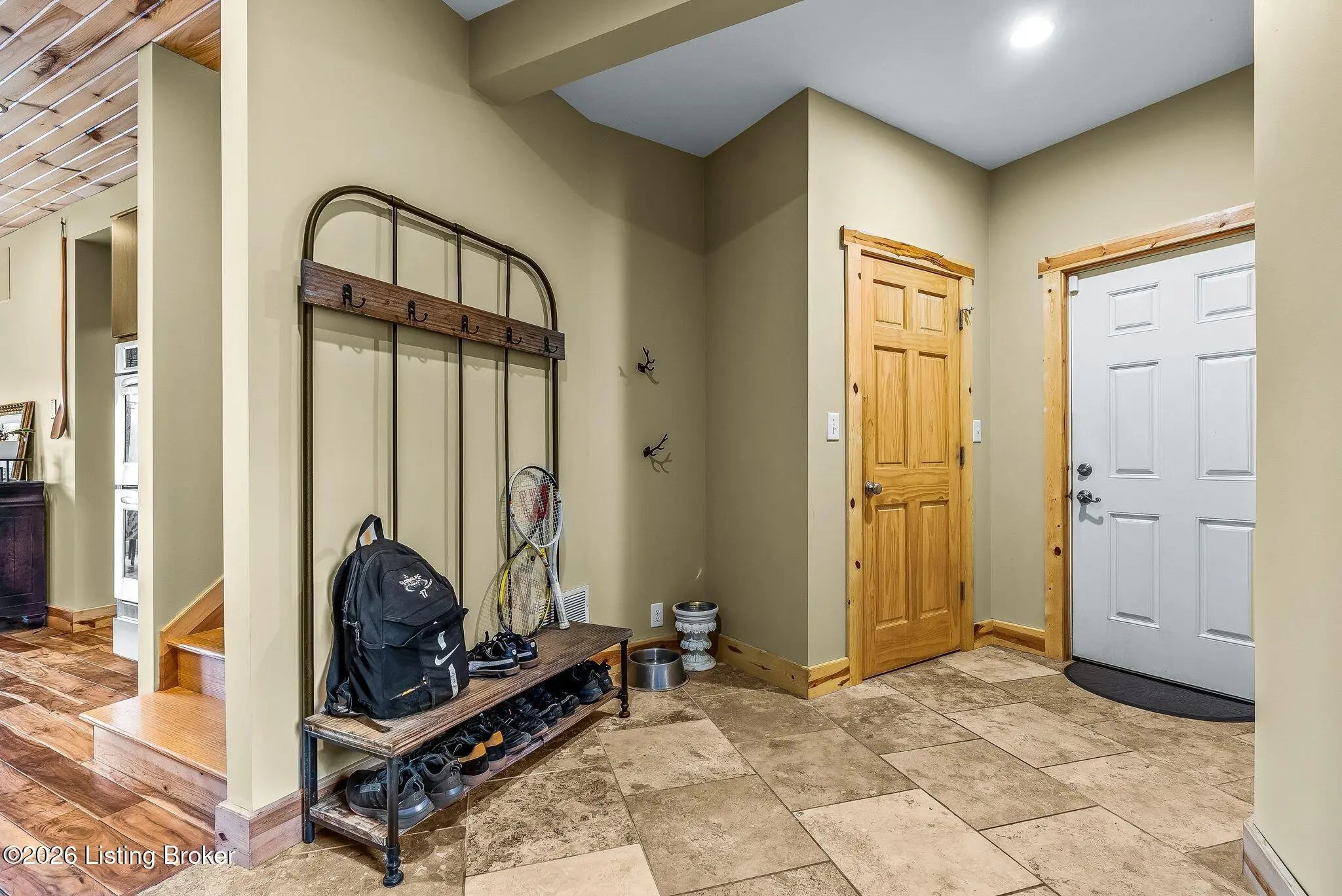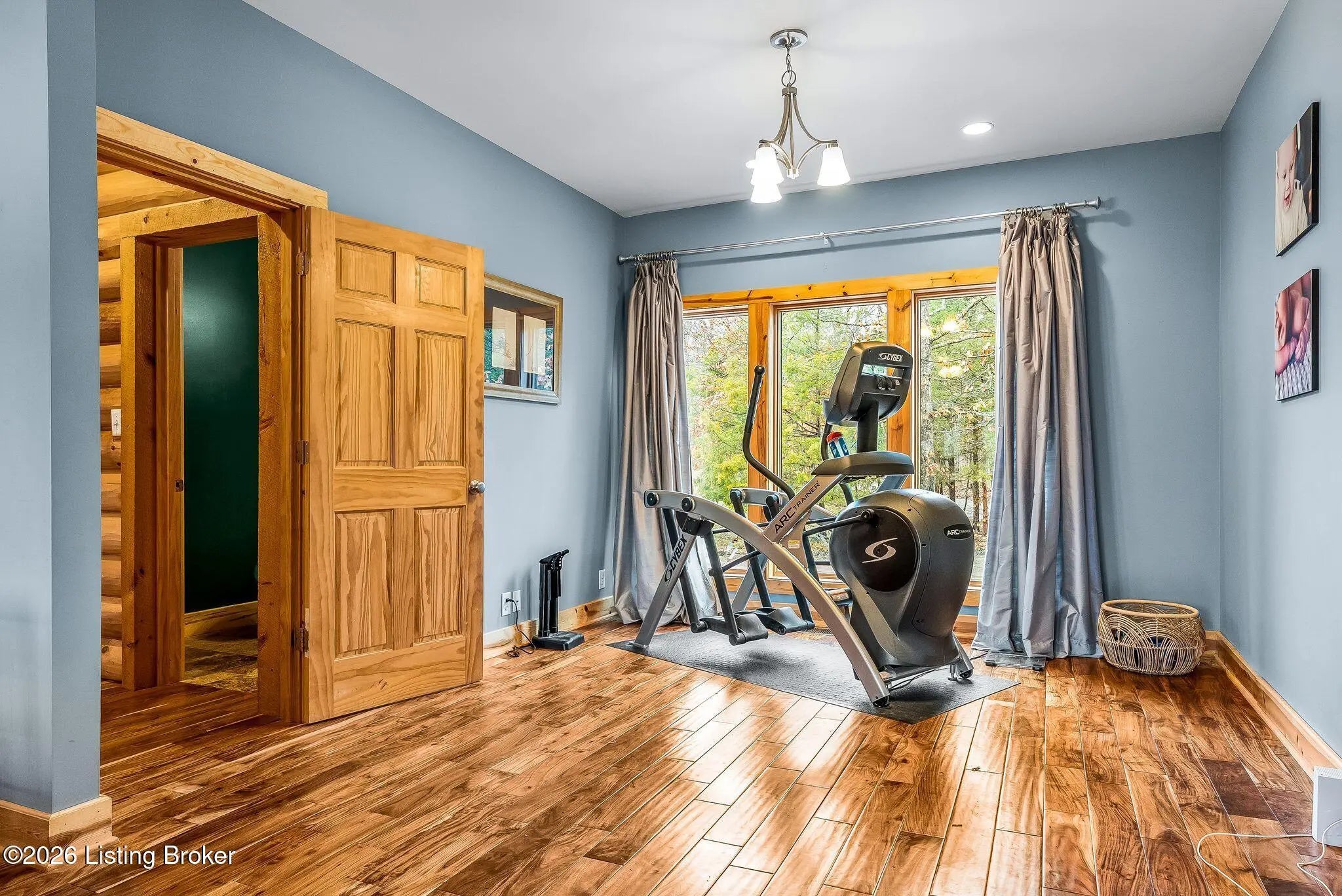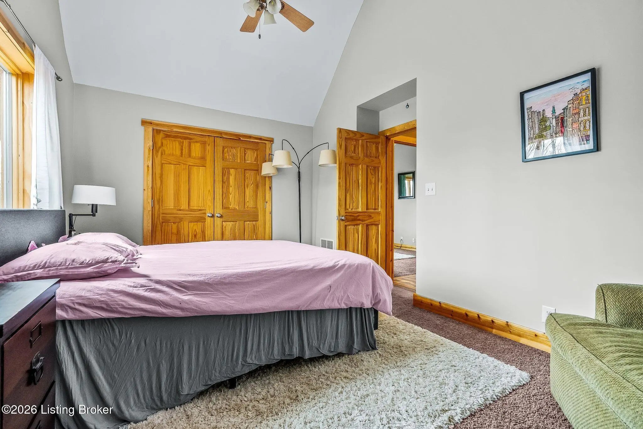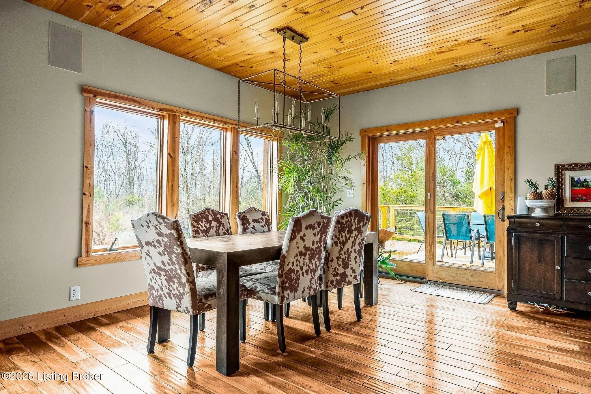 Welcome to 2212 Ballard School Rd in LaGrange, a spectacular custom-built log estate set on 16 private acres with breathtaking views of woods and pasture in every direction. Tucked ¼ mile off the main road, this property offers exceptional privacy while still being just minutes from LaGrange shopping, dining, and I-71. Step inside to a breathtaking great room defined by a dramatic 2.5-story vaulted ceiling and an expansive A-frame wall of windows that fills the space with sunlight and captures sweeping views of the peaceful surroundings. Extraordinary, handcrafted stone masonry anchors the room with a beautiful fireplace and continues throughout both the interior and exterior of the home, highlighting the craftsmanship of this one-of-a-kind property. Acacia wood floors run through the entry, great room, kitchen, and primary suite, adding warmth and character. The first-floor primary suite offers a relaxing retreat with a trey ceiling, sitting area, dual walk-in closets, and private deck overlooking the rear property. The spacious bath includes dual vanity, large tub and walk in shower creating a comfortable and functional layout. Designed for everyday living and entertaining, the kitchen opens to the dining and living areas and includes an oversized pantry, mudroom, and convenient laundry access with direct entry to the oversized two-car garage. Built-in speakers enhance both the kitchen and outdoor deck spaces. Off the dining area, a large deck provides the perfect setting for enjoying the surrounding countryside. Upstairs, you'll find four generously sized bedrooms, including one with a private balcony overlooking the front of the property and another with an en-suite bath. The upper level also features a loft and an additional full bathroom. The finished walkout lower level offers additional living and entertaining space, featuring a bar area and a beautifully crafted hearth with a wood stove, along with doors that open to the rear patio and outdoor gathering area. An additional 1,600+ square feet of unfinished basement provide excellent expansion potential, including two framed and electrically wired rooms ready to be finished and plumbing already installed for a future basement bathroom. Outdoor living is equally impressive with five patios and decks, including the private primary suite balcony. The property also features an outdoor firepit, stone pizza oven, outdoor grilling area, deer stands, dog kennels, and even an ATV included with the property, making the acreage a true outdoor playground. Recent improvements include newly stripped and resealed logs along the rear of the home and rebuilt balcony railings. The home is also equipped with dual geothermal heat pump systems and a whole-house Culligan water filtration system with separate drinking water filtration including a new water heater (2025). With 16 acres of rolling land, partial woods, expansive views, and unmatched privacy, this extraordinary property offers the perfect blend of rustic elegance, modern efficiency, and convenient location. A rare opportunity to own this one-of-a-kind property that offers privacy, character, and incredible craftsmanship while still being conveniently located near LaGrange amenities.