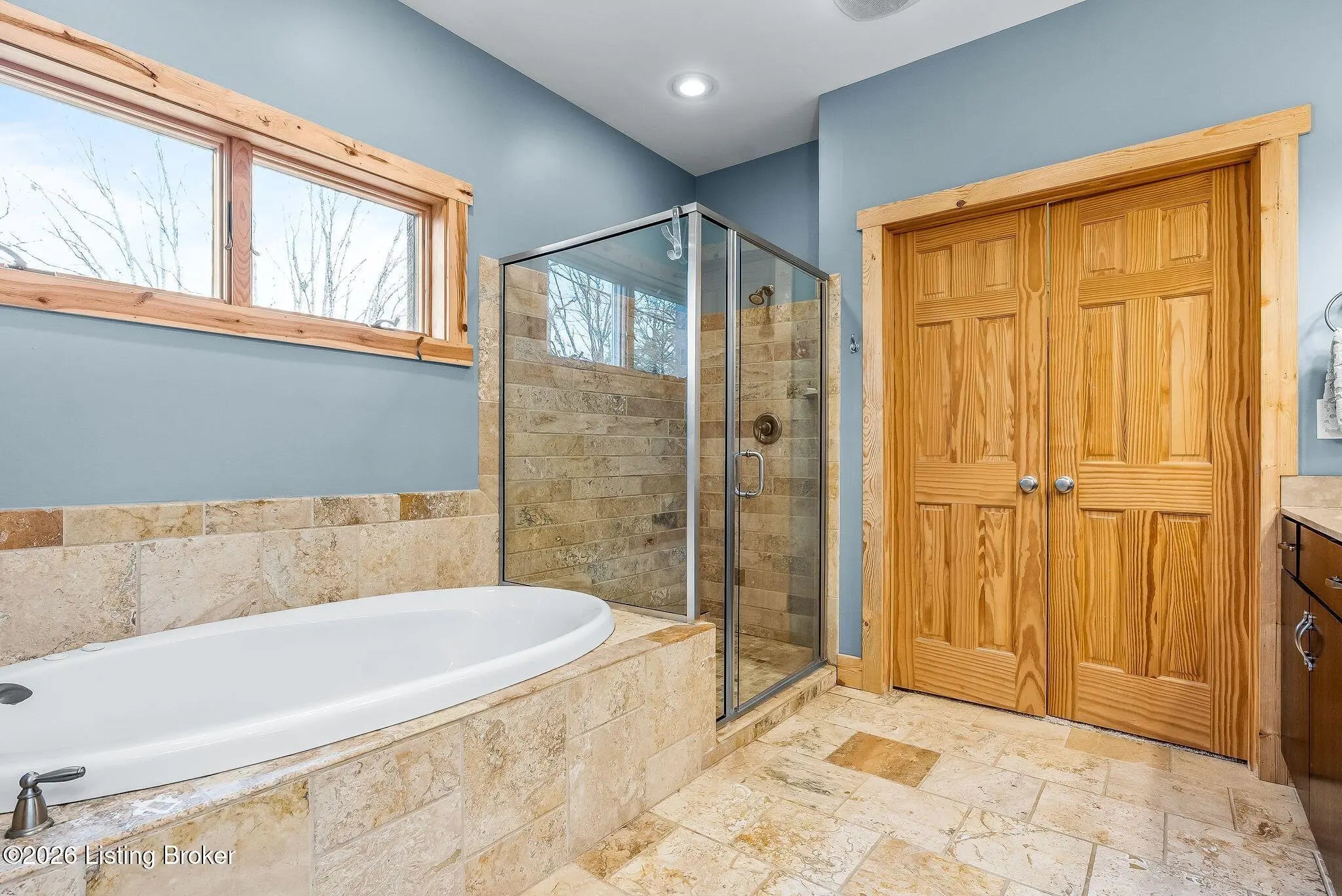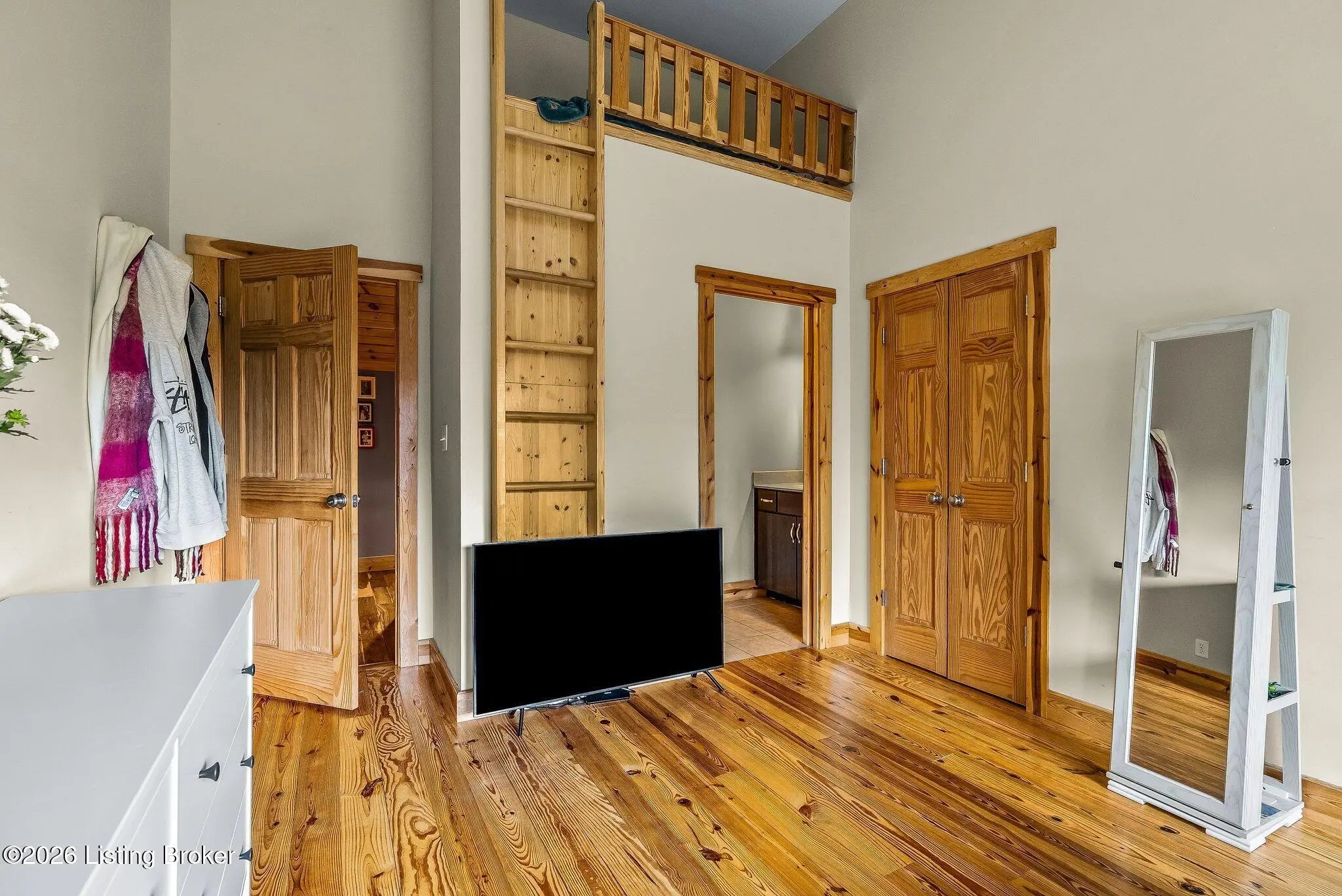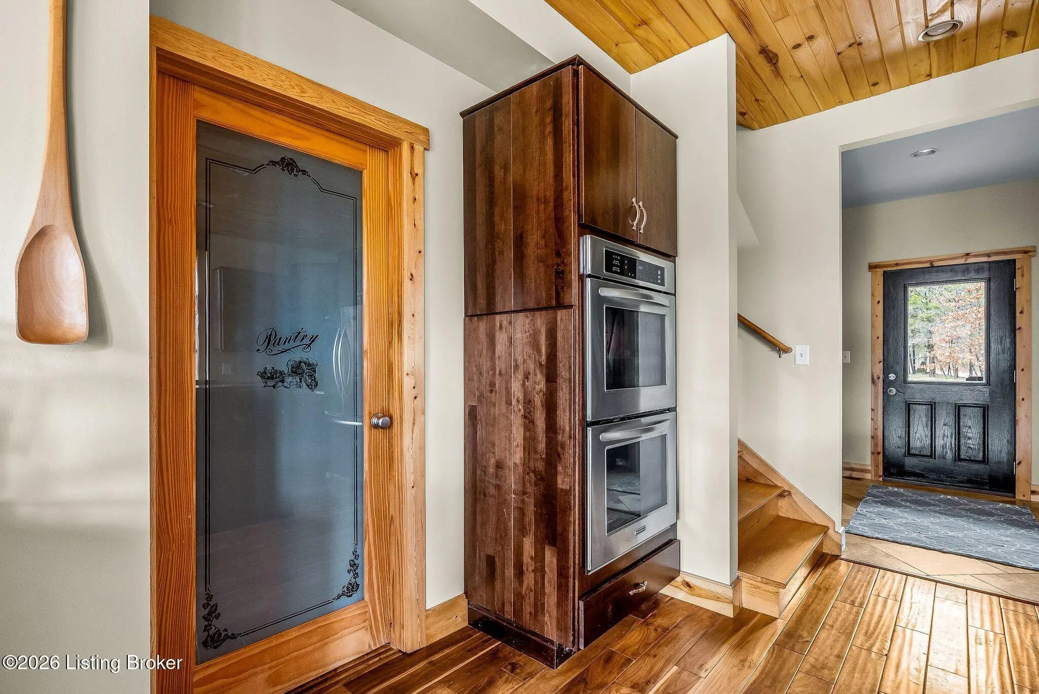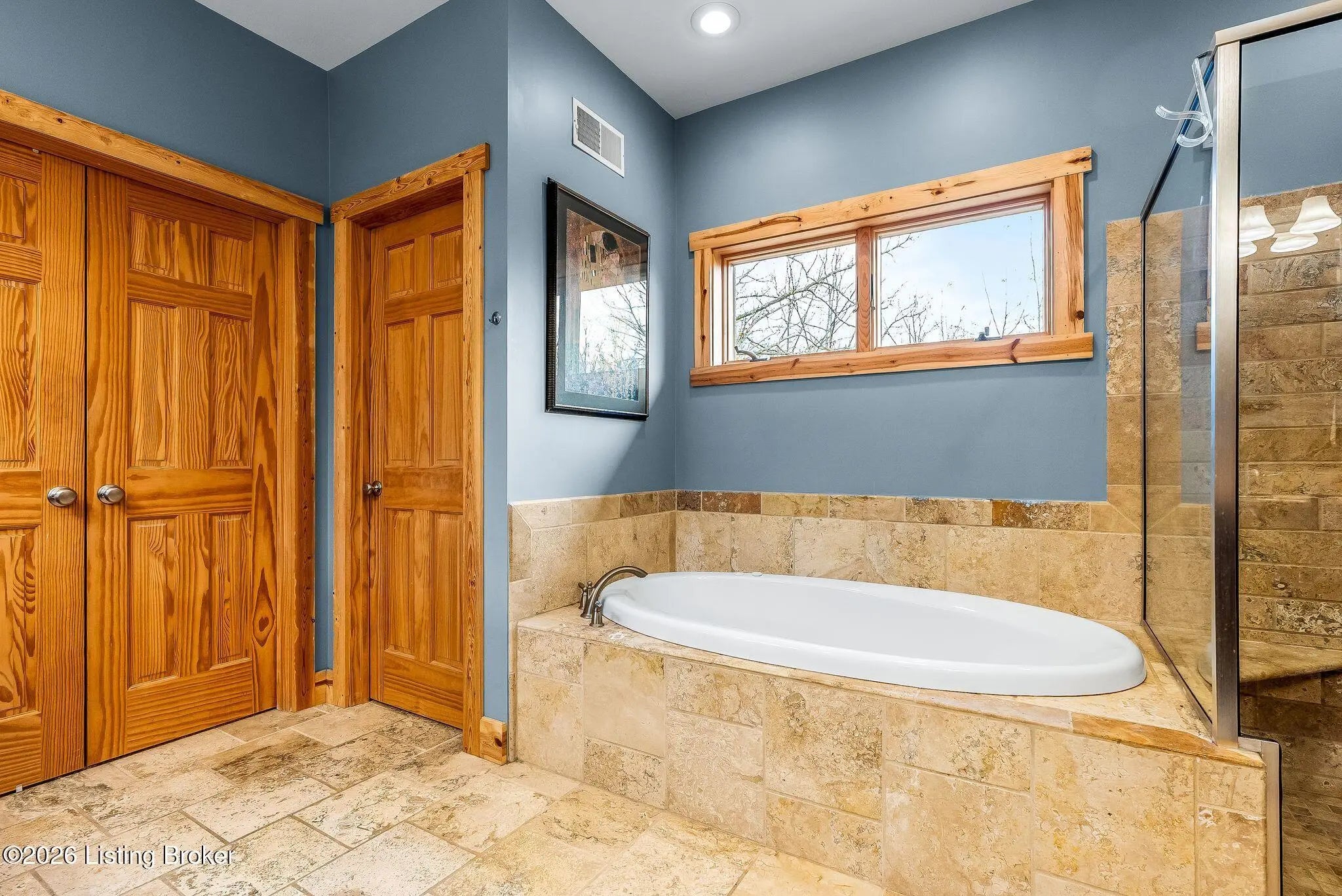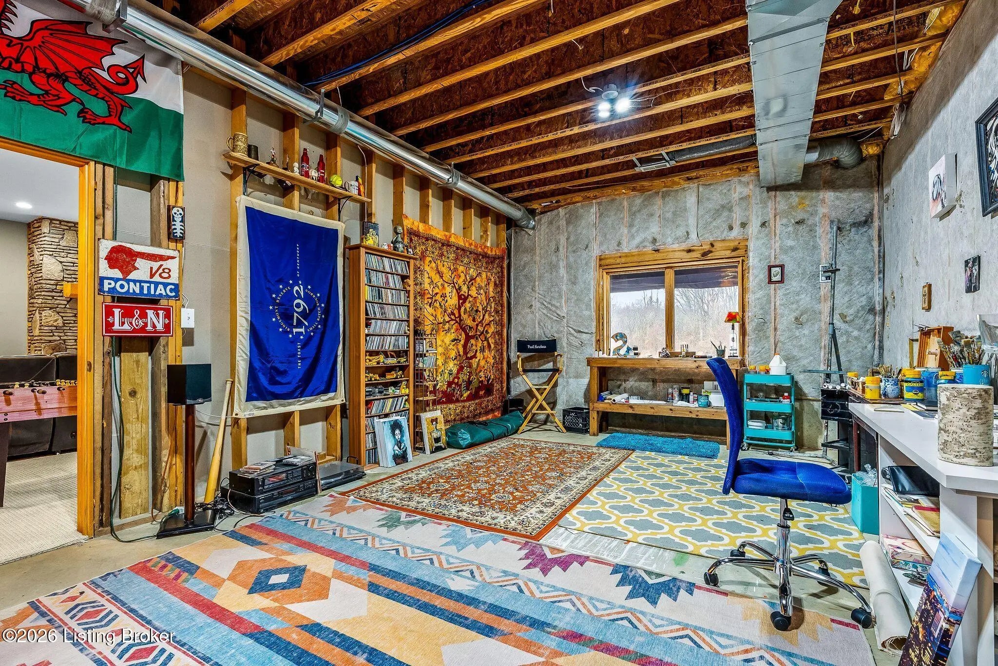 Welcome to 2212 Ballard School Rd in LaGrange, a spectacular custom-built log estate set on 16 private acres with breathtaking views of woods and pasture in every direction. Tucked ¼ mile off the main road, this property offers exceptional privacy while still being just minutes from LaGrange shopping, dining, and I-71. Step inside to a breathtaking great room defined by a dramatic 2.5-story vaulted ceiling and an expansive A-frame wall of windows that fills the space with sunlight and captures sweeping views of the peaceful surroundings. Extraordinary, handcrafted stone masonry anchors the room with a beautiful fireplace and continues throughout both the interior and exterior of the home, highlighting the craftsmanship of this one-of-a-kind property. Acacia wood floors run through the entry, great room, kitchen, and primary suite, adding warmth and character. The first-floor primary suite offers a relaxing retreat with a trey ceiling, sitting area, dual walk-in closets, and private deck overlooking the rear property. The spacious bath includes dual vanity, large tub and walk in shower creating a comfortable and functional layout. Designed for everyday living and entertaining, the kitchen opens to the dining and living areas and includes an oversized pantry, mudroom, and convenient laundry access with direct entry to the oversized two-car garage. Built-in speakers enhance both the kitchen and outdoor deck spaces. Off the dining area, a large deck provides the perfect setting for enjoying the surrounding countryside. Upstairs, you'll find four generously sized bedrooms, including one with a private balcony overlooking the front of the property and another with an en-suite bath. The upper level also features a loft and an additional full bathroom. The finished walkout lower level offers additional living and entertaining space, featuring a bar area and a beautifully crafted hearth with a wood stove, along with doors that open to the rear patio and outdoor gathering area. An additional 1,600+ square feet of unfinished basement provide excellent expansion potential, including two framed and electrically wired rooms ready to be finished and plumbing already installed for a future basement bathroom. Outdoor living is equally impressive with five patios and decks, including the private primary suite balcony. The property also features an outdoor firepit, stone pizza oven, outdoor grilling area, deer stands, dog kennels, and even an ATV included with the property, making the acreage a true outdoor playground. Recent improvements include newly stripped and resealed logs along the rear of the home and rebuilt balcony railings. The home is also equipped with dual geothermal heat pump systems and a whole-house Culligan water filtration system with separate drinking water filtration including a new water heater (2025). With 16 acres of rolling land, partial woods, expansive views, and unmatched privacy, this extraordinary property offers the perfect blend of rustic elegance, modern efficiency, and convenient location. A rare opportunity to own this one-of-a-kind property that offers privacy, character, and incredible craftsmanship while still being conveniently located near LaGrange amenities.