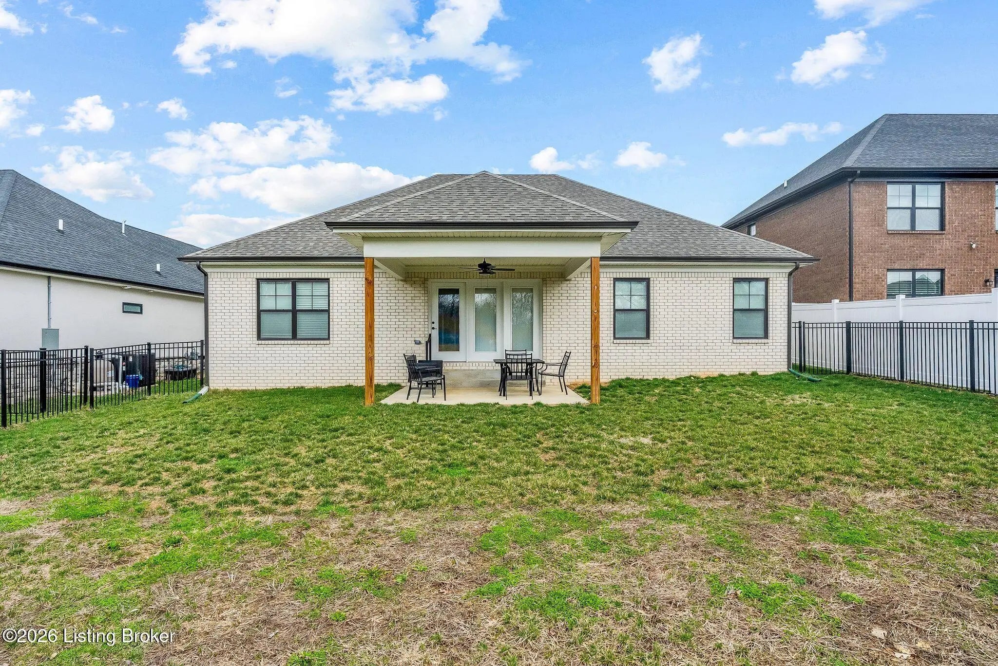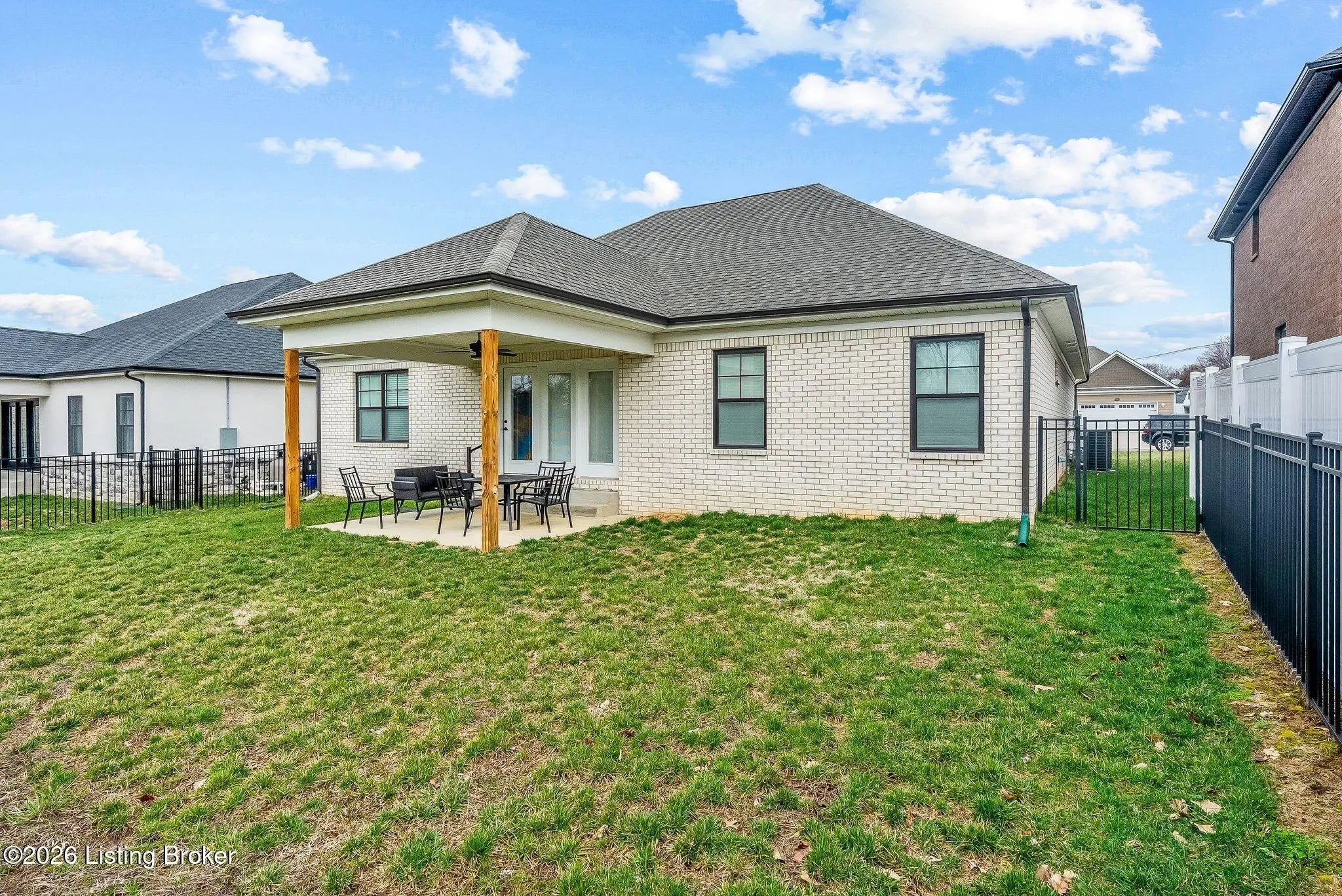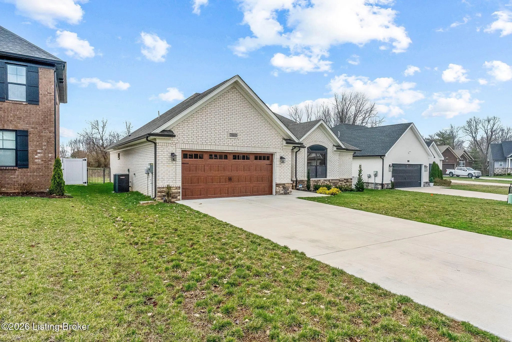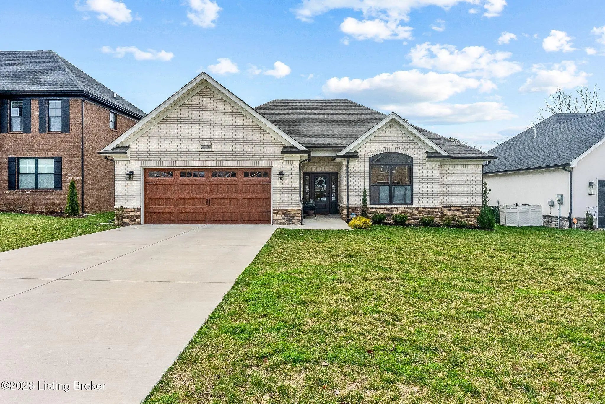 Welcome to 7910 Cultivator Court, a modern craftsman-style ranch home newly constructed in 2024! Nestled into a serene cul-de-sac in tranquil Moore Farms subdivision, the stunning interior boasts over 1,700 square feet of contemporary luxury, both functional and beautiful. Step through a gracefully arched entryway into the warm, open interior featuring brilliant (and durable!) LVP flooring and an expansive, modern layout ideal for both entertaining and everyday family life. Bathed in natural light from oversized windows, the vast great room flows smoothly into the true heart of the home: a truly chef-inspired kitchen, carefully equipped with gleaming granite countertops, classic white cabinetry, and high-end stainless steel GE appliances encircling a bold island centerpiece, with the adjoining dining area offering picturesque backyard views. The regal primary suite creates a private sanctuary, with breathtaking tres ceilings suspended above the spacious bedroom, while the connected primary bathroom creates a spa-like ensuite with dual vanities, a ceramic-tiled walk-in shower, and a generously-sized walk-in closet. A second bedroom--complete with a vaulted ceiling and its own walk-in closet--adds charm and functionality, while a third bedroom and an additional full bathroom provide ample space for guests and family members alike. A laundry/mud room (just off the garage) completes the interior. French doors lead from the kitchen to the relaxing, covered back patio--ideal for family barbecues and entertaining summer guests--proudly overlooking the sprawling, fully-fenced-in backyard. Meanwhile, beyond your new front door, the Fern Creek area offers an abundance of nearby amenities: explore the trails, playgrounds, and tranquil fishing spots at McNeely Lake and Charlie Vettiner Park, or enjoy Saturday shopping/dining in Fern Creek Plaza or Stoneybrook Shopping Center, or venture into the nearby Highlands area to experience Louisville's truly vibrant nightlife. Don't miss your chance to make this chic, modern home your own. Your next chapter begins here!
