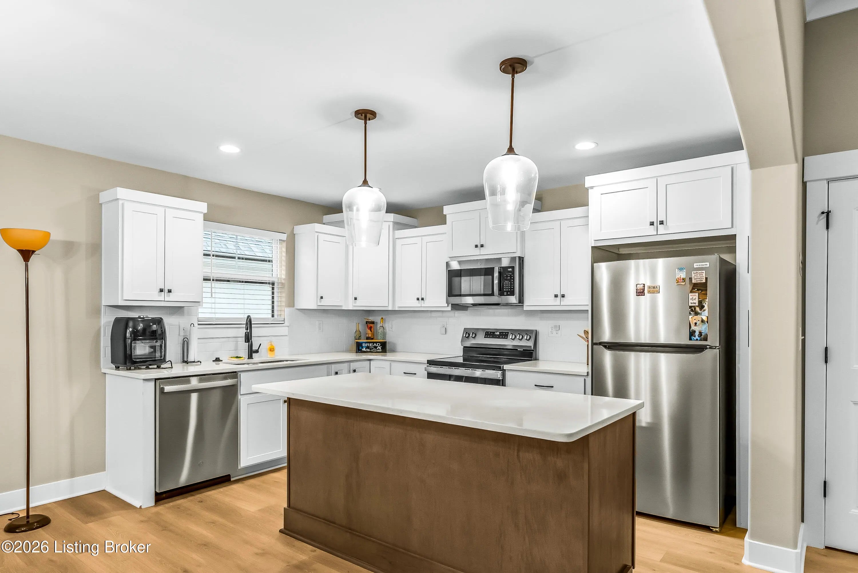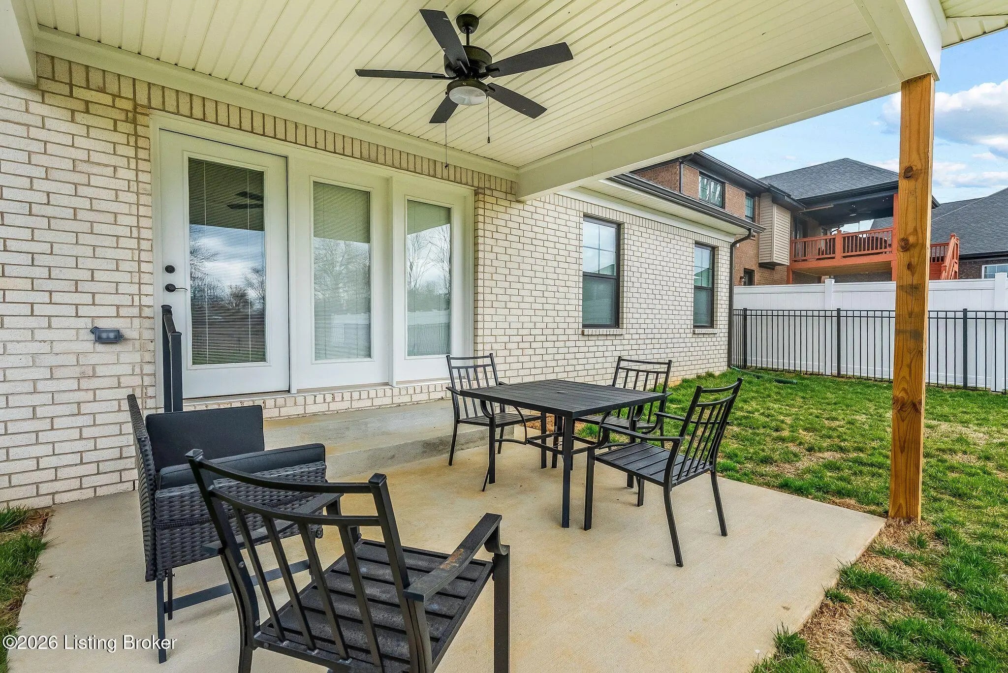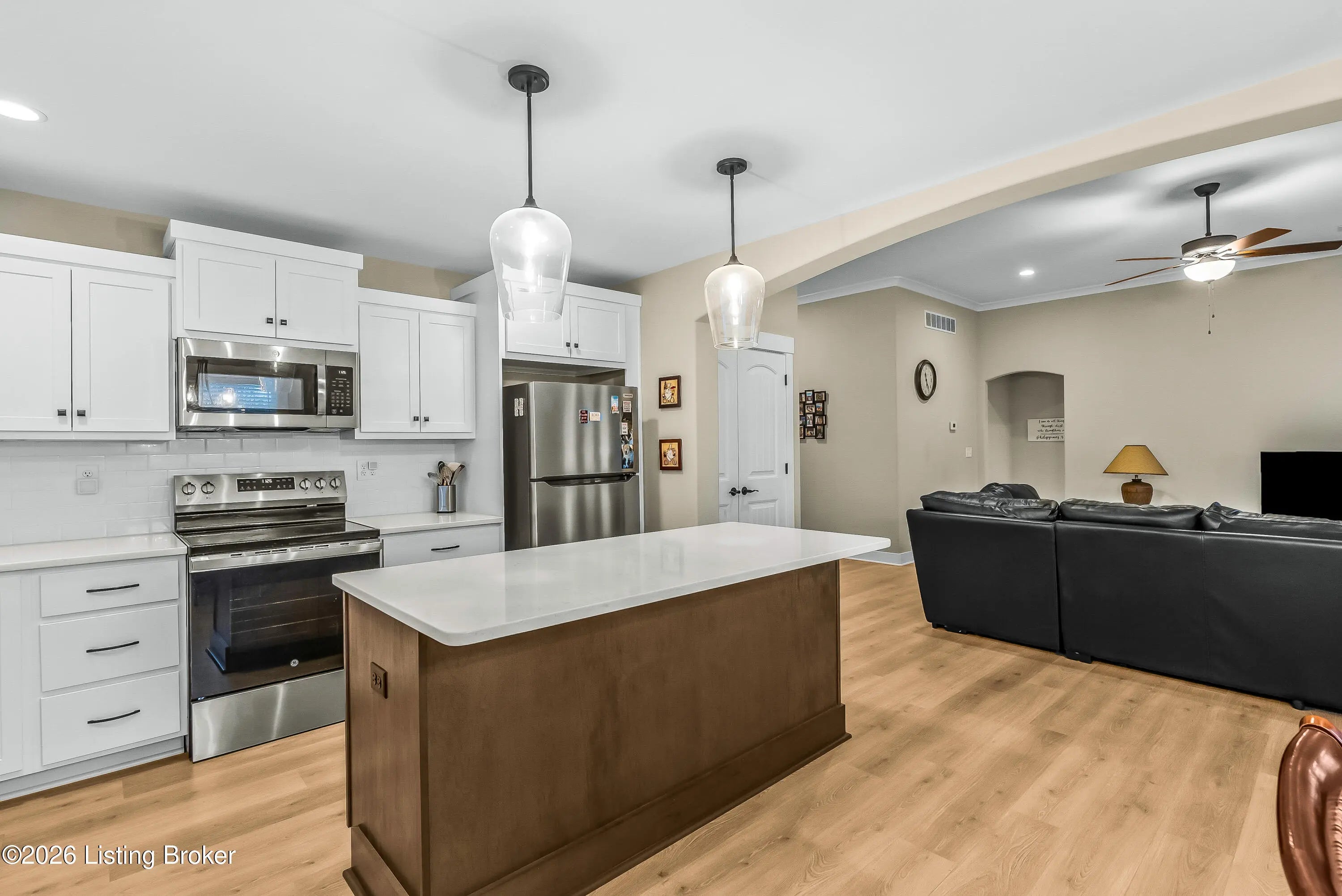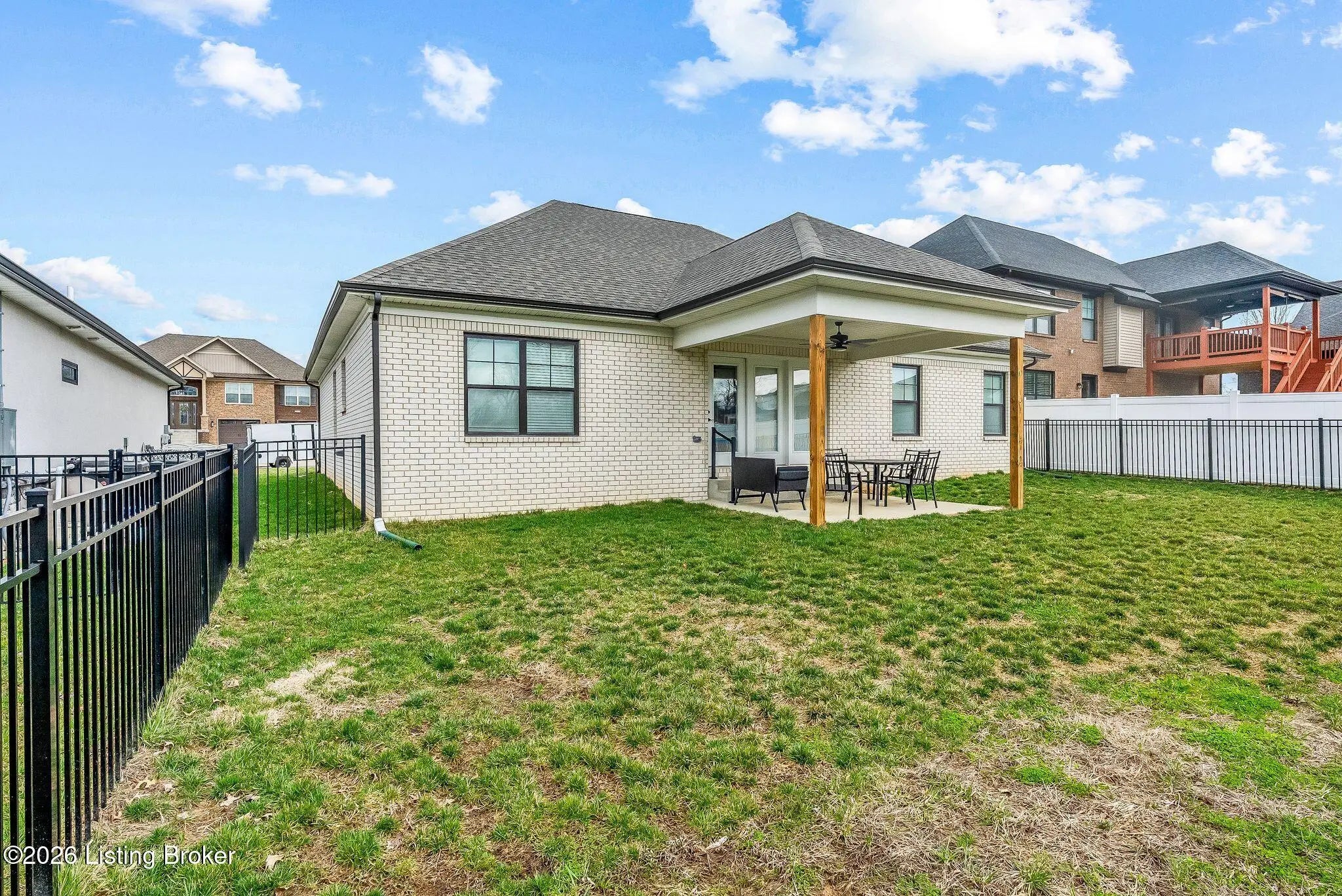 Welcome to 7910 Cultivator Court, a modern craftsman-style ranch home newly constructed in 2024! Nestled into a serene cul-de-sac in tranquil Moore Farms subdivision, the stunning interior boasts over 1,700 square feet of contemporary luxury, both functional and beautiful. Step through a gracefully arched entryway into the warm, open interior featuring brilliant (and durable!) LVP flooring and an expansive, modern layout ideal for both entertaining and everyday family life. Bathed in natural light from oversized windows, the vast great room flows smoothly into the true heart of the home: a truly chef-inspired kitchen, carefully equipped with gleaming granite countertops, classic white cabinetry, and high-end stainless steel GE appliances encircling a bold island centerpiece, with the adjoining dining area offering picturesque backyard views. The regal primary suite creates a private sanctuary, with breathtaking tres ceilings suspended above the spacious bedroom, while the connected primary bathroom creates a spa-like ensuite with dual vanities, a ceramic-tiled walk-in shower, and a generously-sized walk-in closet. A second bedroom--complete with a vaulted ceiling and its own walk-in closet--adds charm and functionality, while a third bedroom and an additional full bathroom provide ample space for guests and family members alike. A laundry/mud room (just off the garage) completes the interior. French doors lead from the kitchen to the relaxing, covered back patio--ideal for family barbecues and entertaining summer guests--proudly overlooking the sprawling, fully-fenced-in backyard. Meanwhile, beyond your new front door, the Fern Creek area offers an abundance of nearby amenities: explore the trails, playgrounds, and tranquil fishing spots at McNeely Lake and Charlie Vettiner Park, or enjoy Saturday shopping/dining in Fern Creek Plaza or Stoneybrook Shopping Center, or venture into the nearby Highlands area to experience Louisville's truly vibrant nightlife. Don't miss your chance to make this chic, modern home your own. Your next chapter begins here!