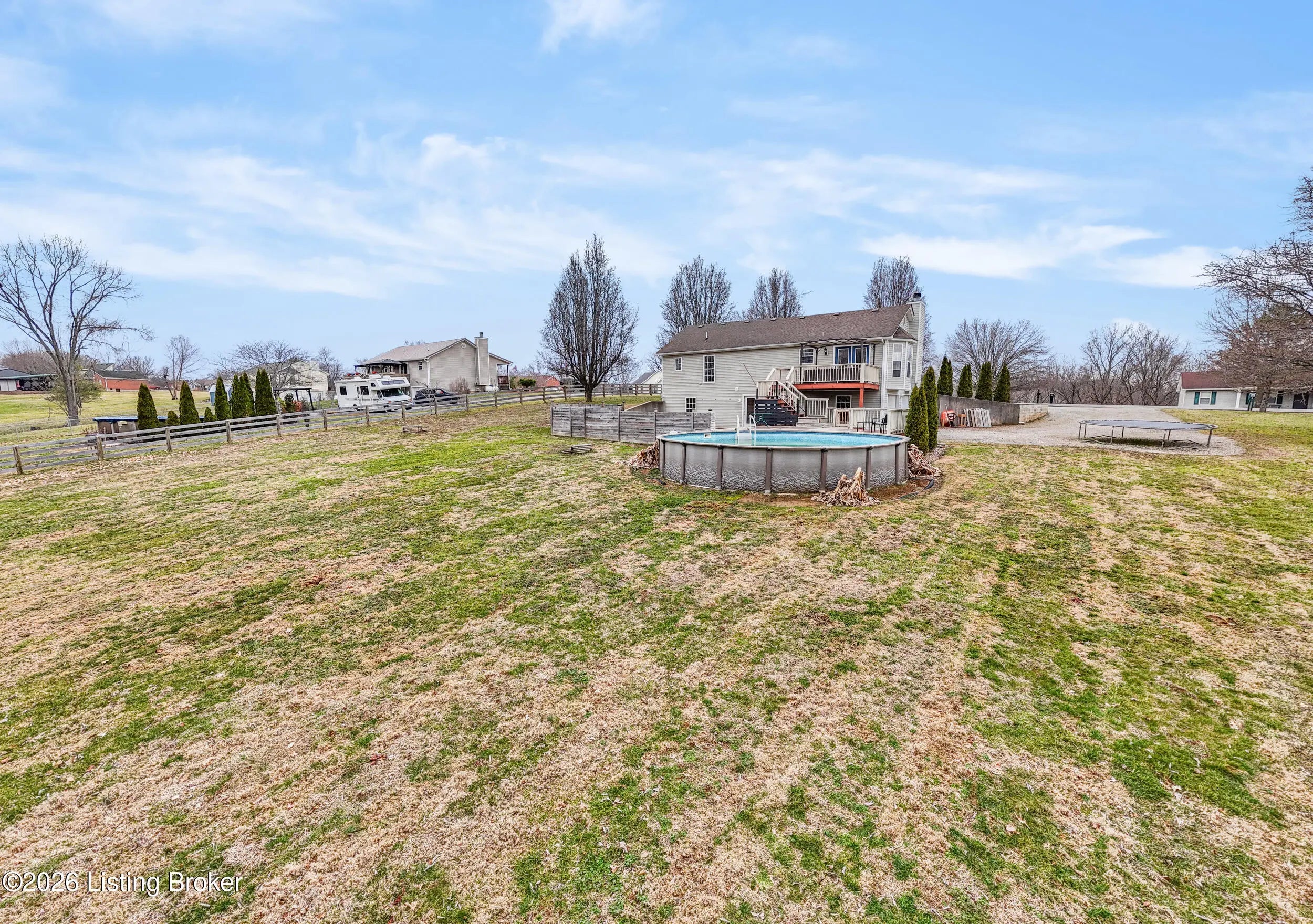 Tucked away in a quiet cul-de-sac, this walk-out ranch sits on just over an acre. Located near Taylorsville Lake and Wildlife Management area this property offers the kind of setting people move to Spencer County for. Inside, you'll find a spacious, open layout designed for everyday living and easy entertaining. The vaulted living room features a cozy fireplace and flows seamlessly into the dining area and kitchen. Natural light pours in through the bay window, offering beautiful views of the backyard and pool. Step out onto the upper-level deck and enjoy your morning coffee overlooking the pool area with mature trees creating a private backdrop . The kitchen is generously sized and equipped with stainless steel appliances, providing both function and style. The primary suite includes dual vanities and two closets, upstairs offers two additional bedrooms, a full bath, and laundry complete. Downstairs, the walk-out basement expands your living area with a fourth bedroom, There's also space ready to be customized — perfect for a home office, gym, hobby or game room. Out back is where this property truly shines. A two-tiered deck, patio space, surrounding the pool, creating the ultimate outdoor escape for summer entertaining. If you've been looking for privacy, space, and a backyard built for making memories — this one delivers.