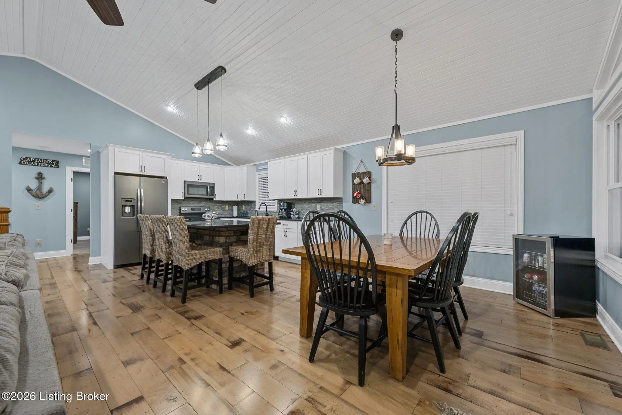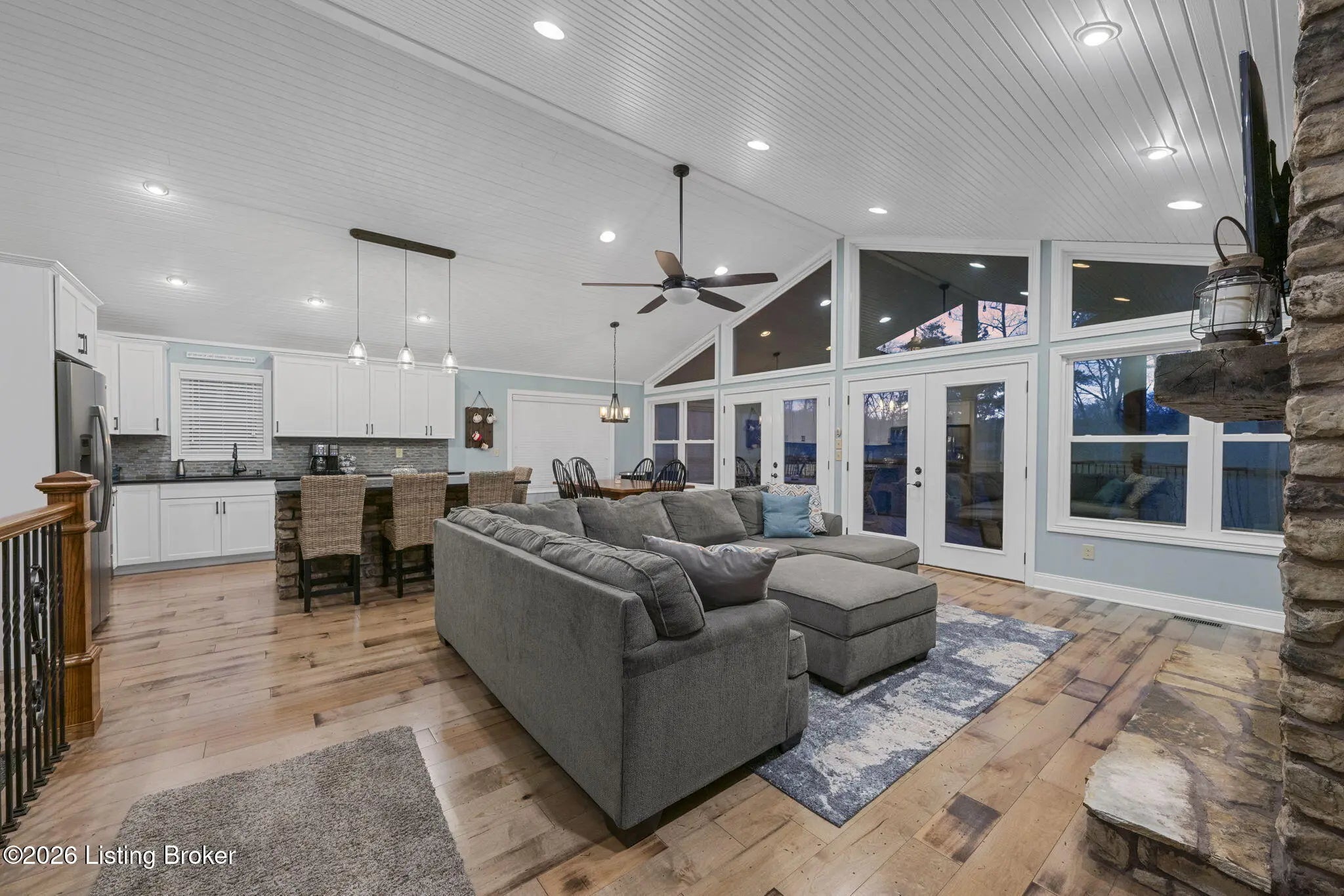 This could be the Nolin Lake house you've been looking for! No restrictions, lakefront, two lots, easy dock access, end dock in a cove, centrally located on the North side of Nolin, sleeps 10 easily, 3 full bathrooms, with modern finishes! Outside there's plenty of parking, lots of concrete, an impressive firepit area with lighting, basketball goal with concrete pad, UTV garage in basement with direct concrete path to the dock. These features are hard to find! 2026 lake season is almost here!