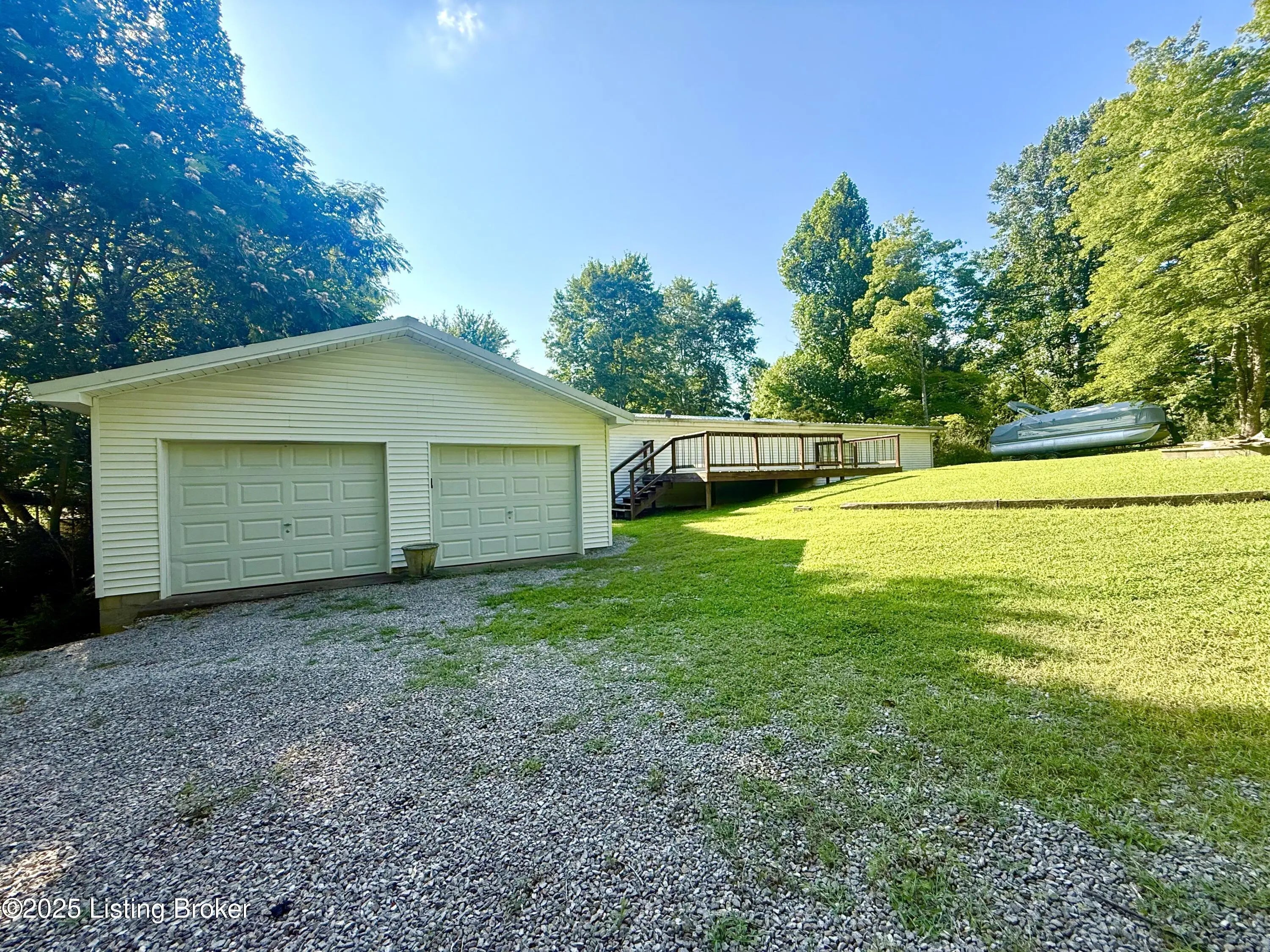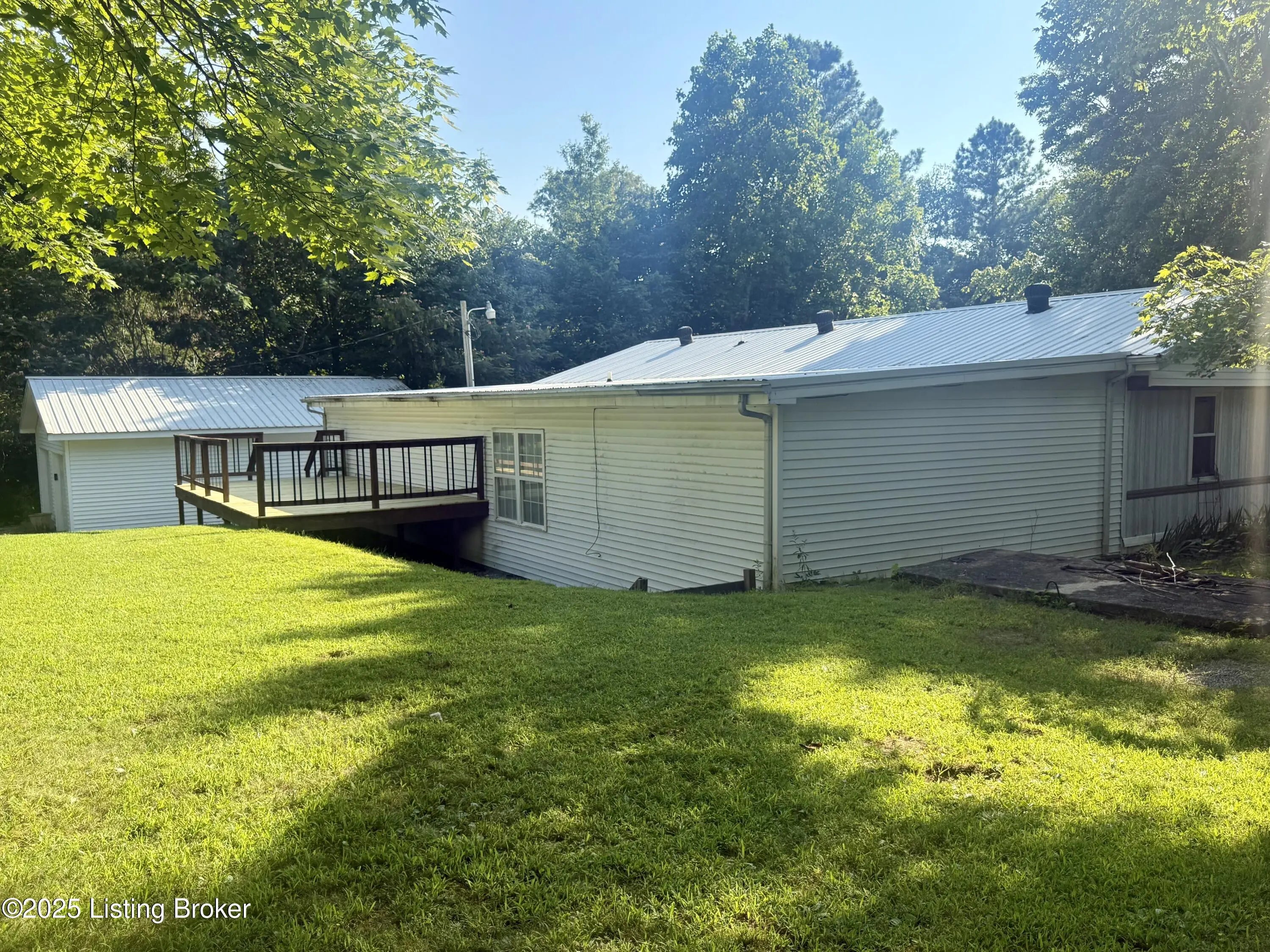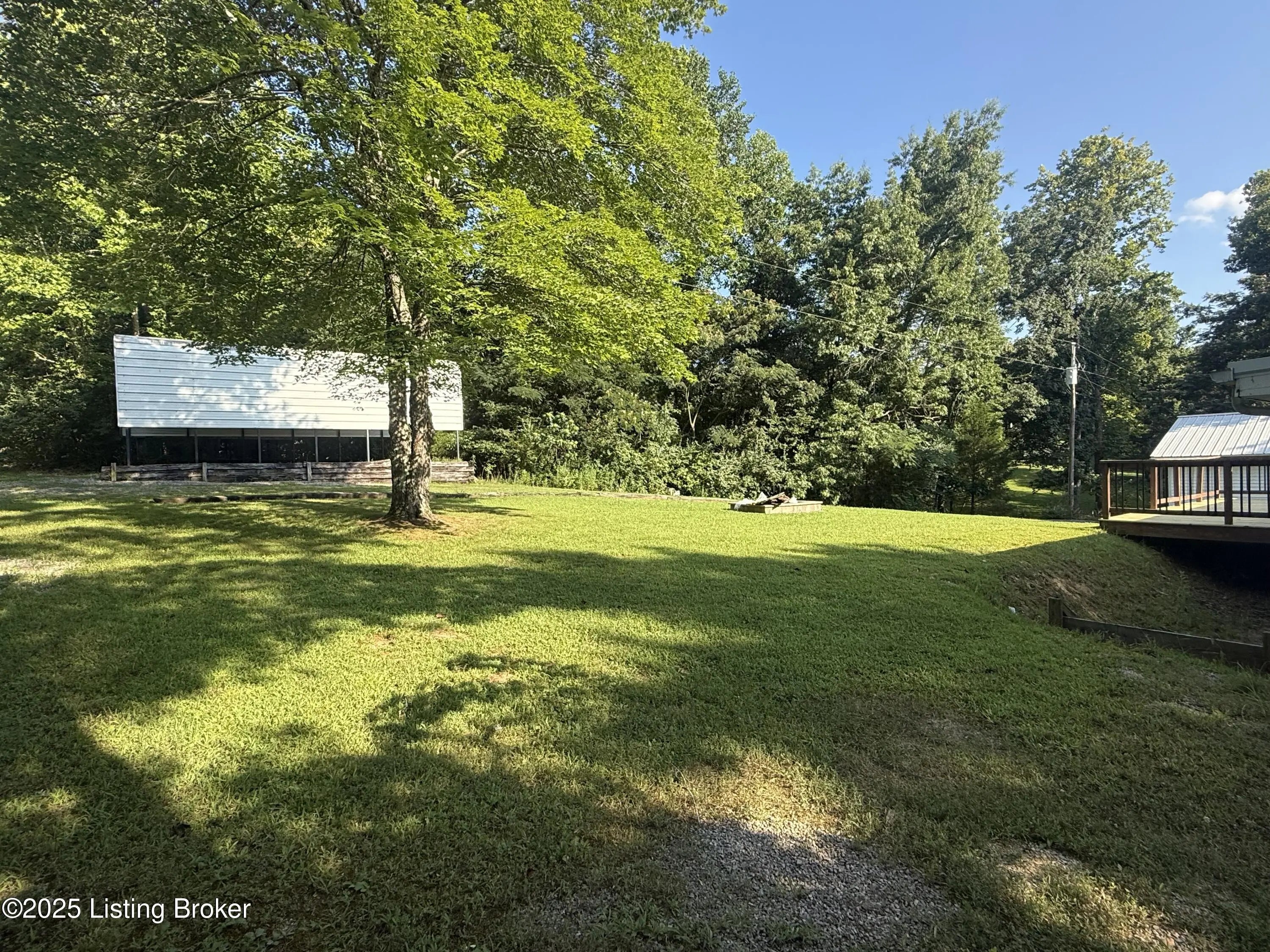 This home sits on 4 lots across from the Cave Creek area on Rough River Lake. It offers a combination of comfort, space and functionality ideal as a full-time residence, weekend getaway, or vacation rental. Inside, you'll find a kitchen open to the dining area, 3 to 4 bedrooms plus a private sleeping room, 2 full baths & laundry. The spacious layout includes a large addition on the back of the home. The bright sunroom surrounds you with windows which allow you to invite the outdoors in & features a window AC unit. Whether you're entertaining, hosting guests or simply enjoying a quiet evening, this home offers flexibility and comfort for a crowd. Outside, the freshly resurfaced deck overlooks a generous flat backyard with mature shade trees in the manicured front yard. You'll appreciate the abundance of storage with 3 outbuildings that include a 24x30 2-bay garage, an additional smaller garage with roll-top door and a shed. There's also a metal storage cover over a gravel pad that's ready to store your RV or boat. Having plenty of room for your family & friends to visit, this is more than just a cute lake house, it's your gateway to making unforgettable memories at Rough River! Dock is just a golfcart ride away & transfers with COE approval.