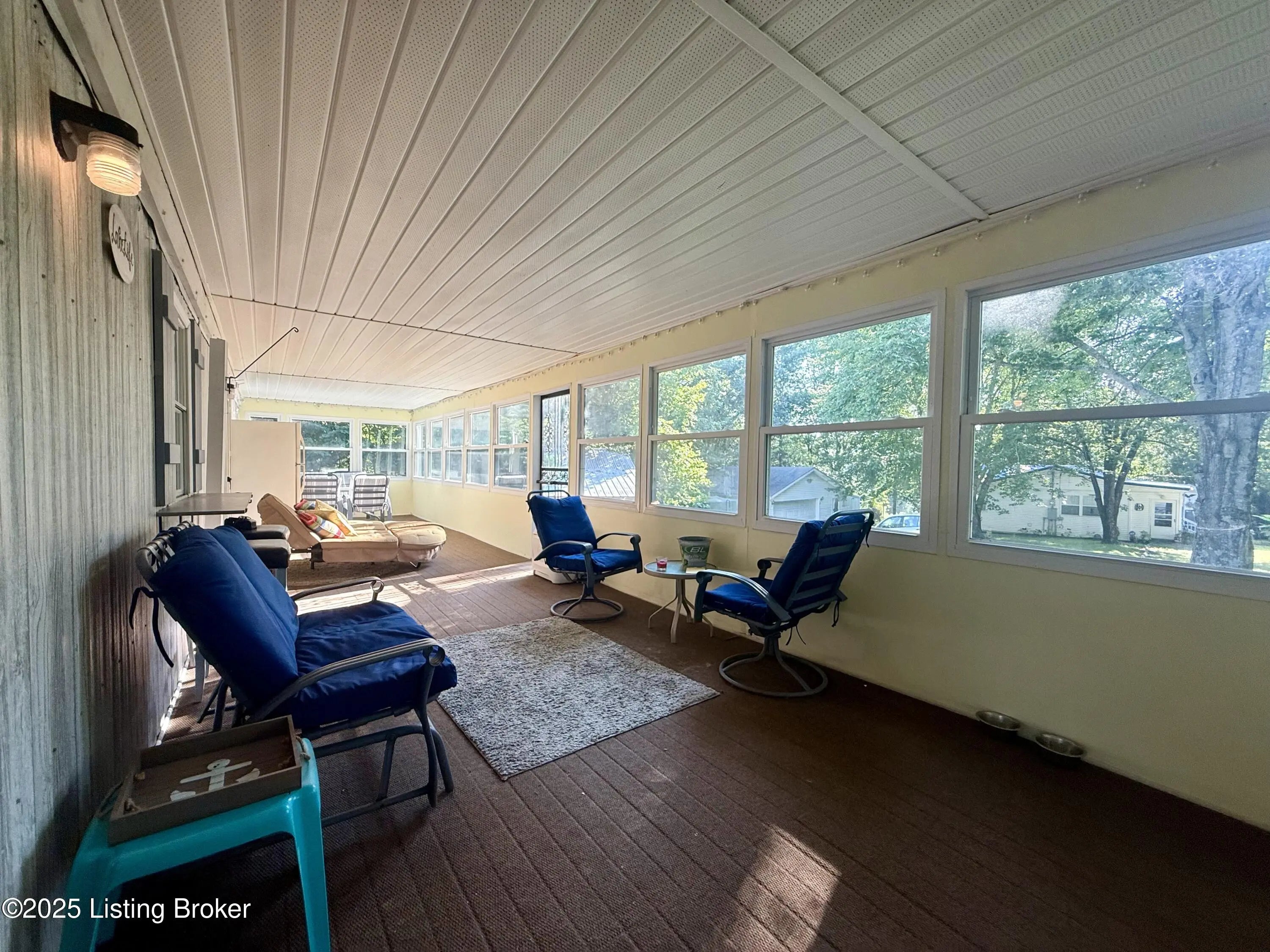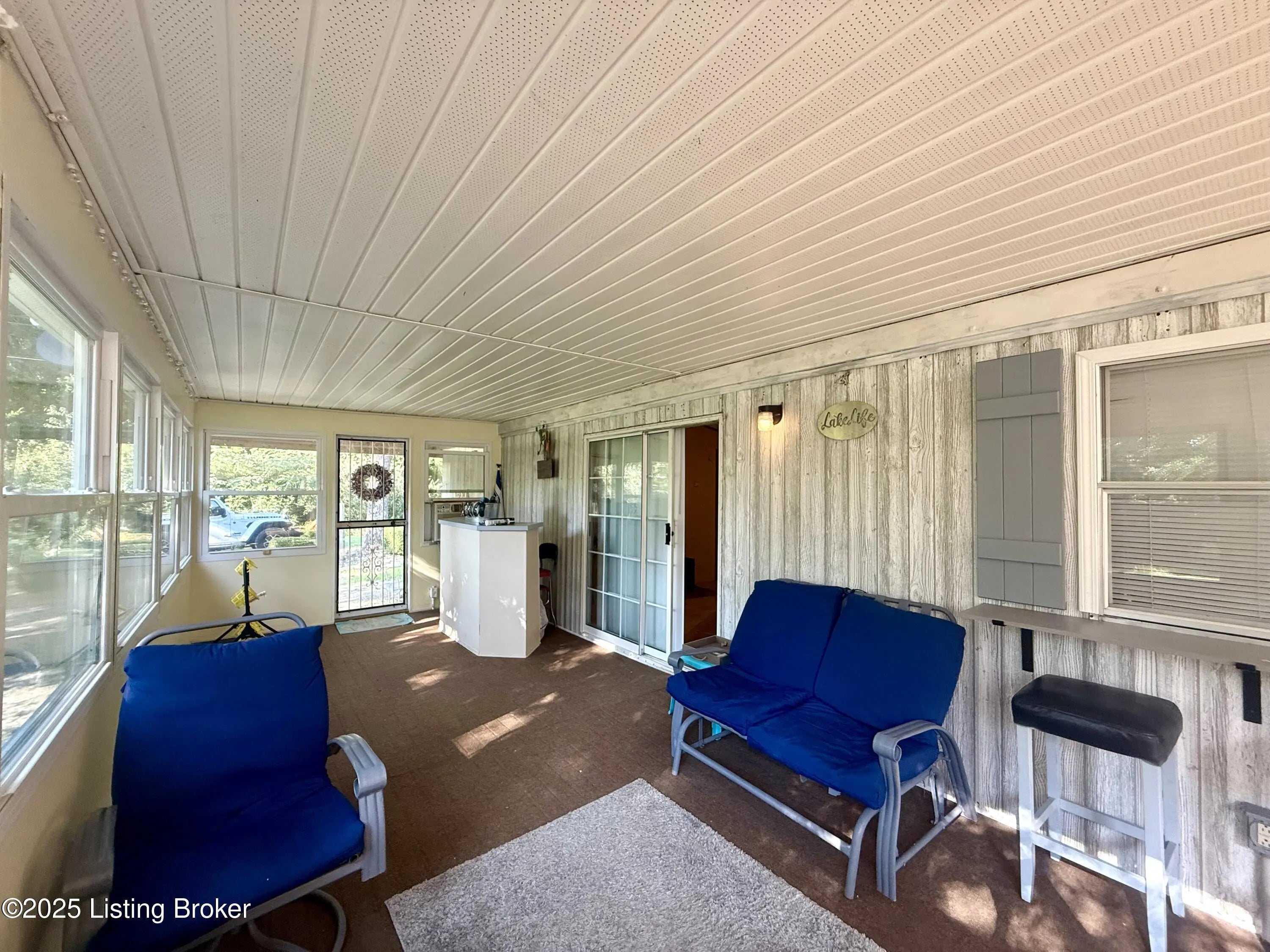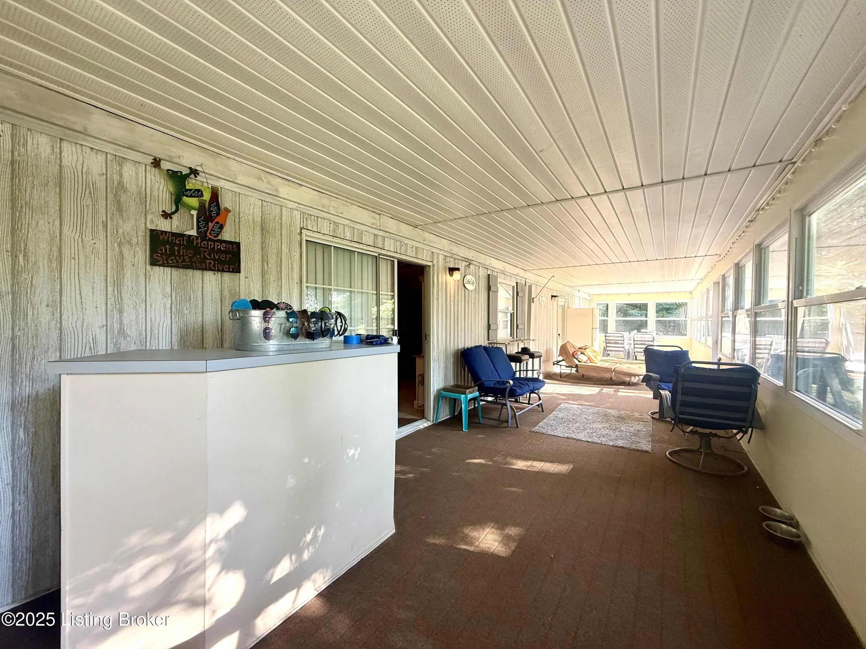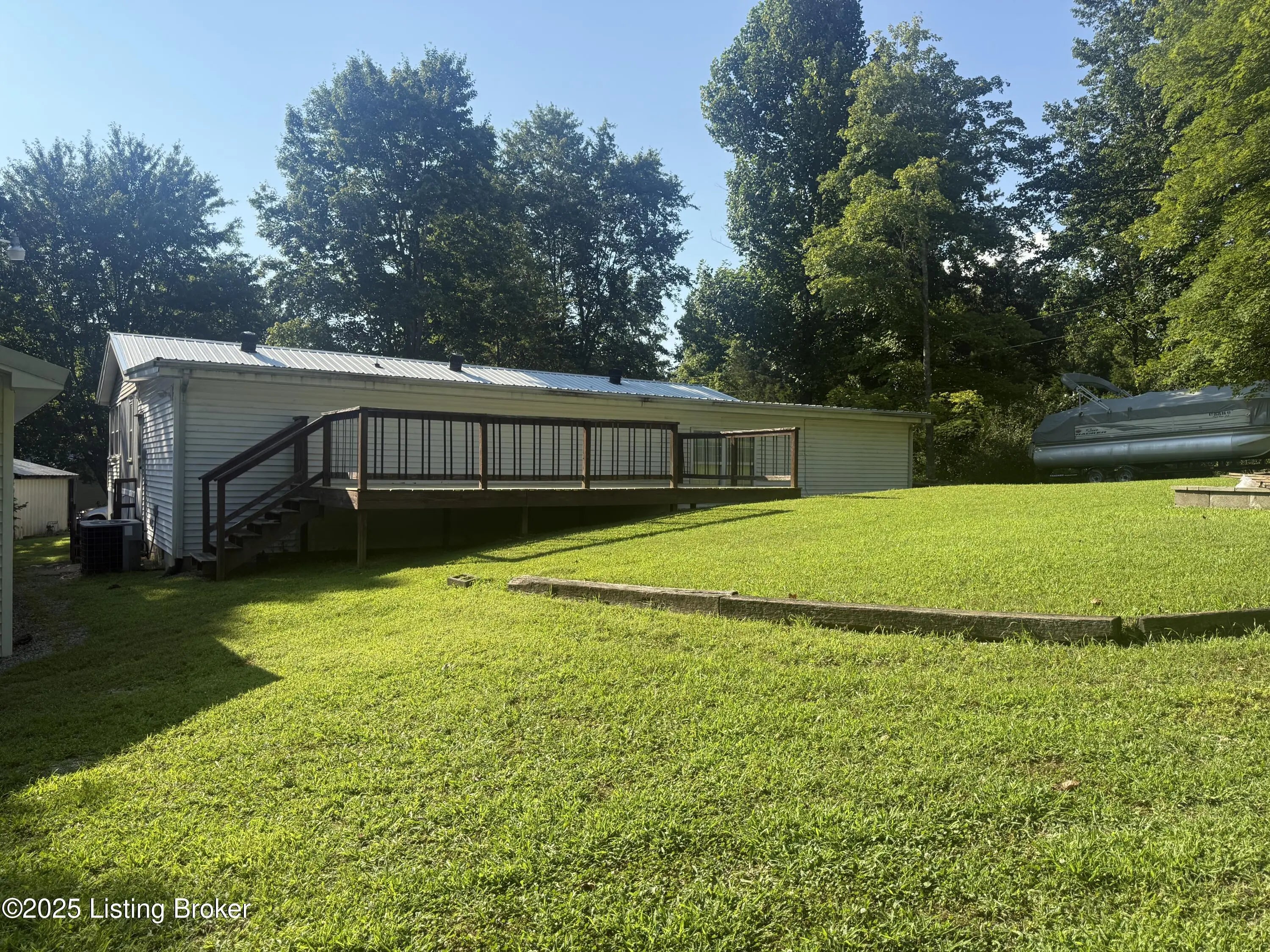 This home sits on 4 lots across from the Cave Creek area on Rough River Lake. It offers a combination of comfort, space and functionality ideal as a full-time residence, weekend getaway, or vacation rental. Inside, you'll find a kitchen open to the dining area, 3 to 4 bedrooms plus a private sleeping room, 2 full baths & laundry. The spacious layout includes a large addition on the back of the home. The bright sunroom surrounds you with windows which allow you to invite the outdoors in & features a window AC unit. Whether you're entertaining, hosting guests or simply enjoying a quiet evening, this home offers flexibility and comfort for a crowd. Outside, the freshly resurfaced deck overlooks a generous flat backyard with mature shade trees in the manicured front yard. You'll appreciate the abundance of storage with 3 outbuildings that include a 24x30 2-bay garage, an additional smaller garage with roll-top door and a shed. There's also a metal storage cover over a gravel pad that's ready to store your RV or boat. Having plenty of room for your family & friends to visit, this is more than just a cute lake house, it's your gateway to making unforgettable memories at Rough River! Dock is just a golfcart ride away & transfers with COE approval.