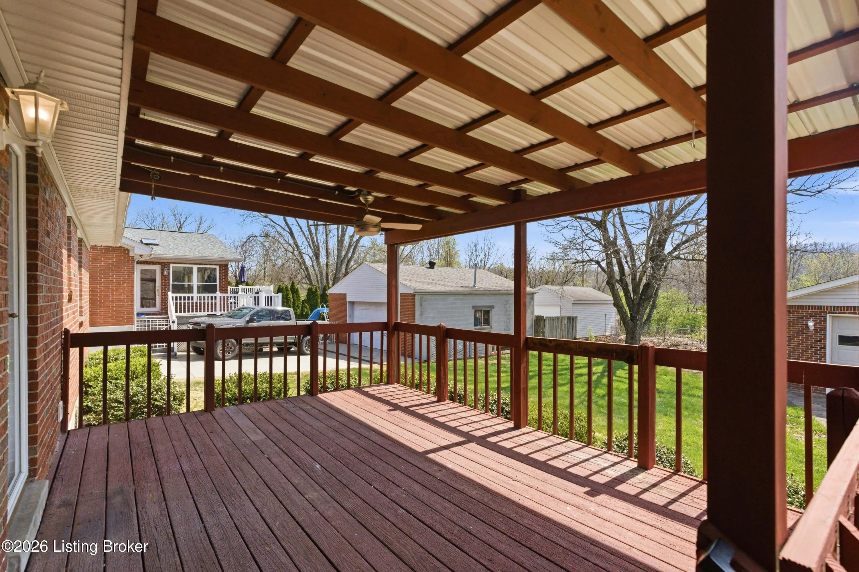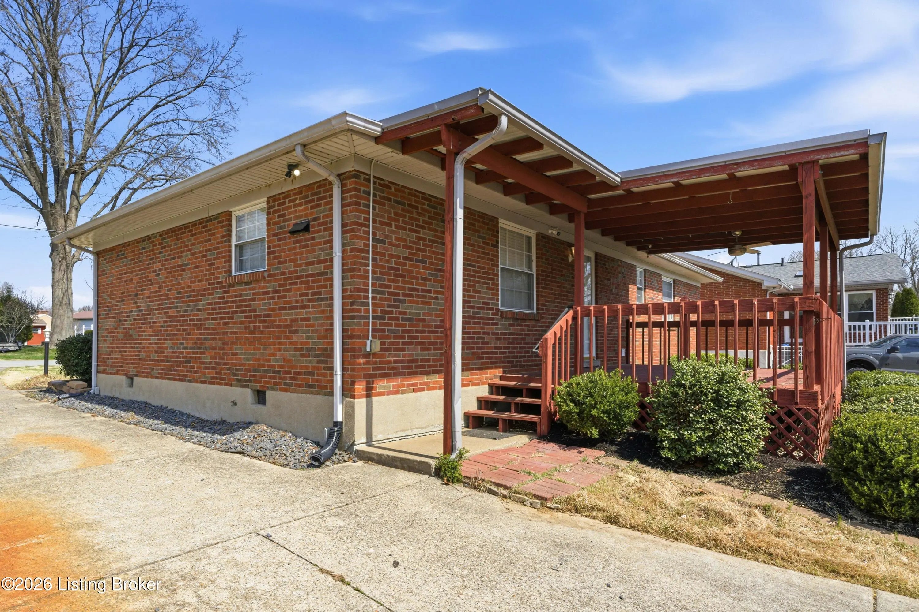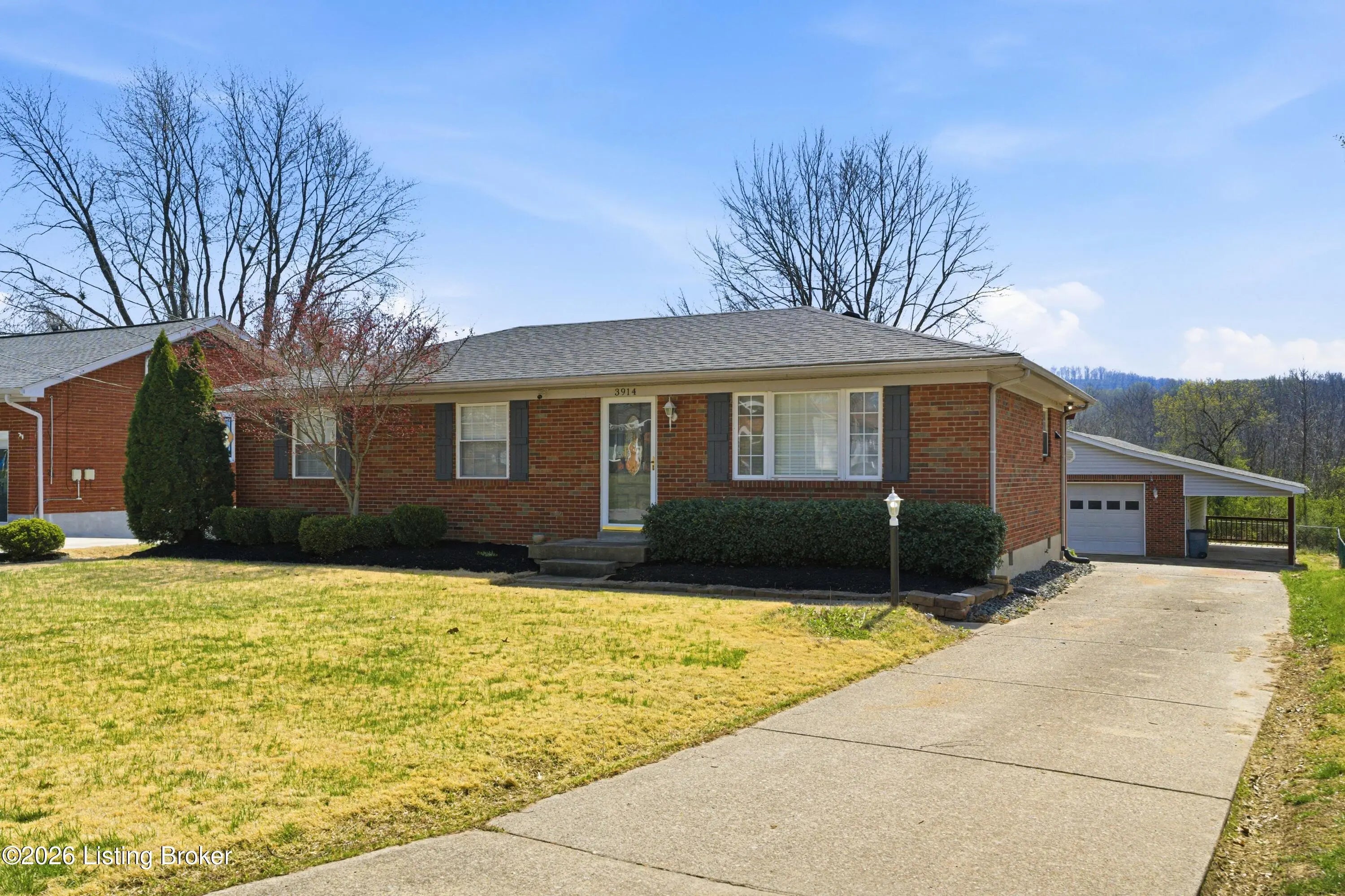Great location just 5 minutes from Gene Snyder. This 1125 sf ranch home is ready to move into. Walk into a nice size living room with bright windows, fresh paint and new carpet. The eat-in kitchen comes with stainless refrigerator, dishwasher and microwave. There's a gas range and hood to make family dinners. Wood laminate flooring in kitchen. 3 roomy bedrooms, including a private master suite with half bath, fresh paint and carpet in all. There is a full bath in the hall. Off the kitchen is a laundry/mudroom that leads to a covered deck at the rear of the home. Private yard with a detached 2 car garage and car port/attached covered area. This home packs a punch for your summer get-togethers and has a homey, relaxing vibe throughout. Come see. Professional pics/3D tour t/c.