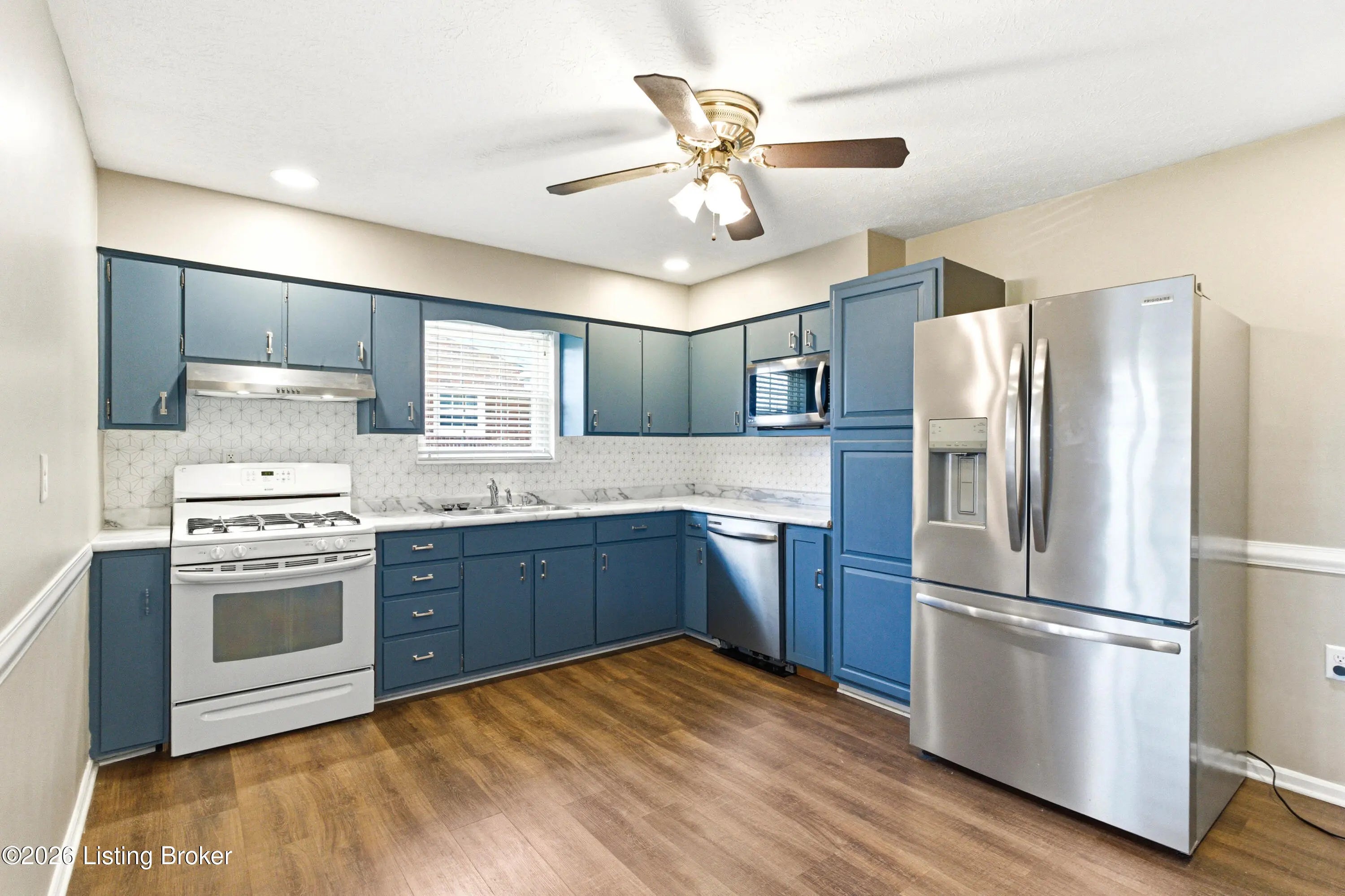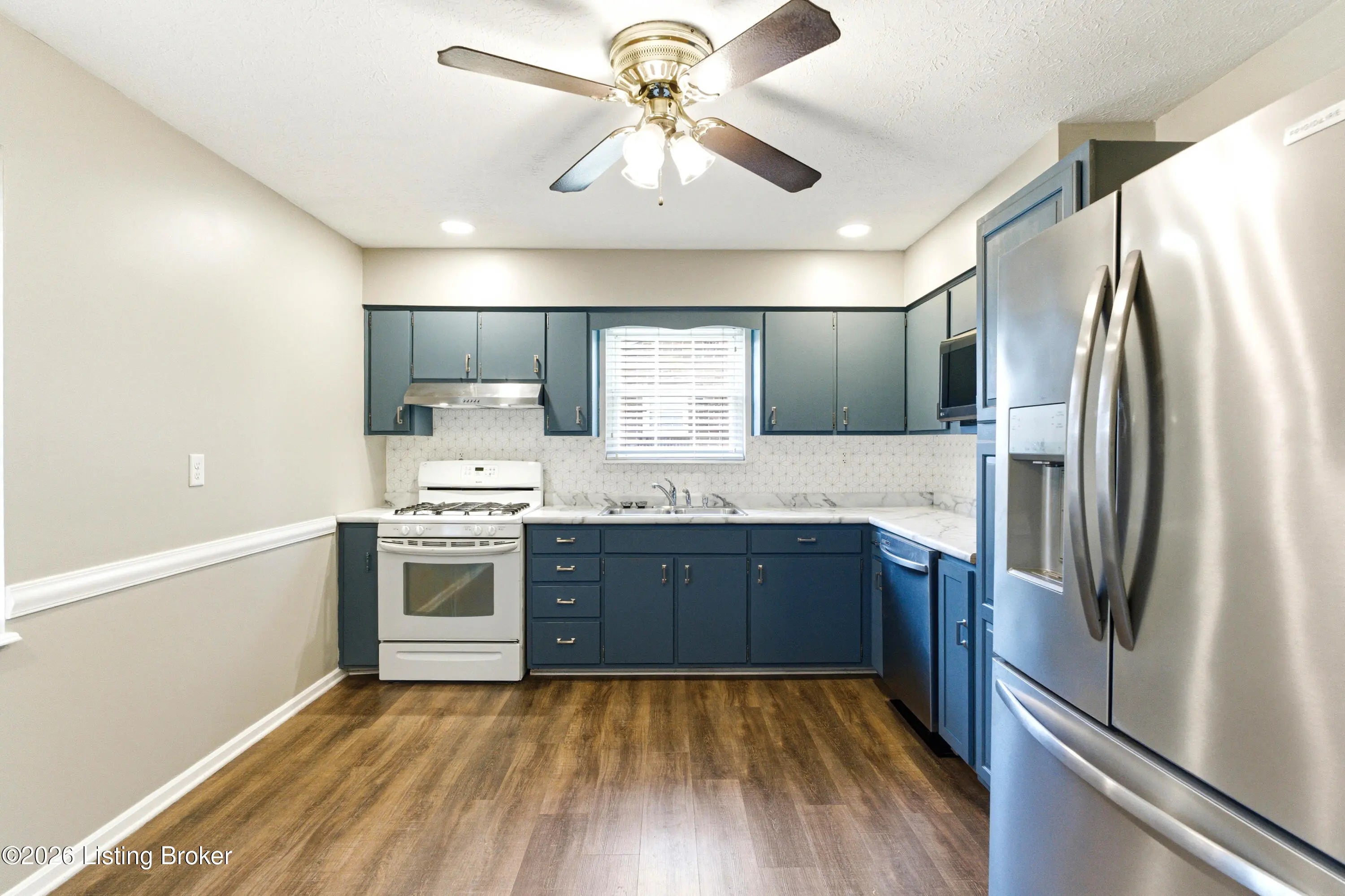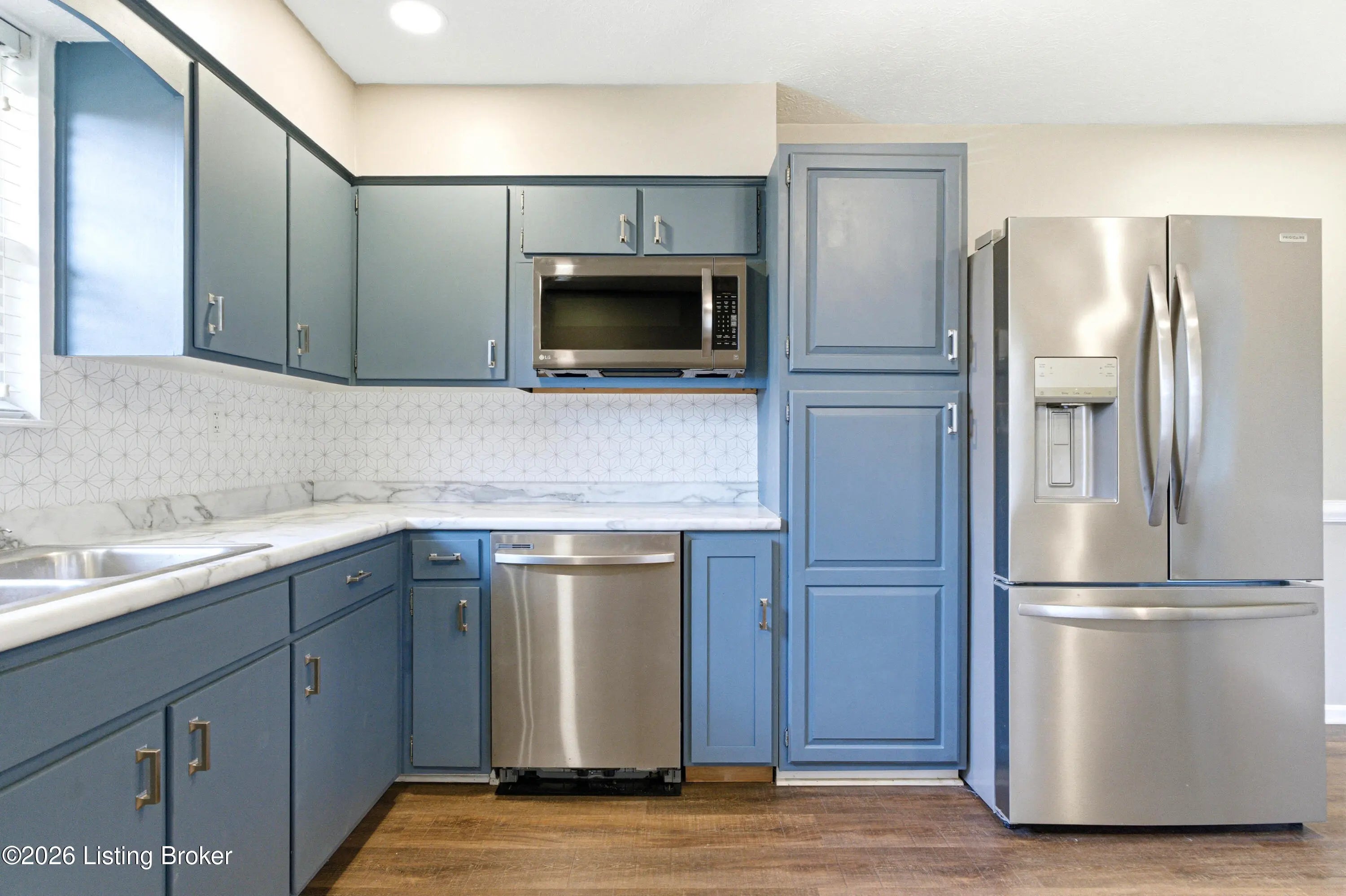 Great location just 5 minutes from Gene Snyder. This 1125 sf ranch home is ready to move into. Walk into a nice size living room with bright windows, fresh paint and new carpet. The eat-in kitchen comes with stainless refrigerator, dishwasher and microwave. There's a gas range and hood to make family dinners. Wood laminate flooring in kitchen. 3 roomy bedrooms, including a private master suite with half bath, fresh paint and carpet in all. There is a full bath in the hall. Off the kitchen is a laundry/mudroom that leads to a covered deck at the rear of the home. Private yard with a detached 2 car garage and car port/attached covered area. This home packs a punch for your summer get-togethers and has a homey, relaxing vibe throughout. Come see. Professional pics/3D tour t/c.