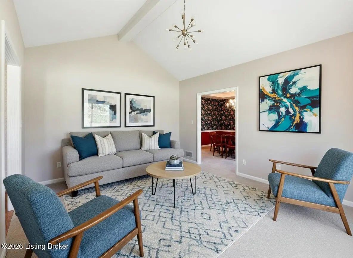 Welcome home to this spacious Jtown Ranch House! This 3-bedroom, 2 full-bathroom home offers comfortable one-level living with a layout designed for both relaxation and entertaining. The eat-in kitchen flows seamlessly into a spacious family room with a cozy fireplace, creating a warm and inviting place to gather. The formal dining room provides the perfect setting for hosting dinner parties, holiday meals, or everyday dining. You'll also find a formal living room with huge windows just off the foyer. Just step inside to relax and unwind. The large primary bedroom suite is a true retreat, featuring an ensuite bathroom with a huge walk-in closet, soaking tub, and separate walk-in shower. There are 2 additional bedrooms, one of which could even become a home office, plus a full bathroom in the hall. Convenience continues with a first-floor laundry room, making everyday chores easier and adding to the home's functional layout. The full basement offers abundant storage and endless possibilities for a future finished family room, home gym, or hobby space. A two-car attached garage adds even more convenience and storage. Located with easy access to I-265 and major Louisville commuting routes, this home is just minutes from the iconic Jtown Square, great for shopping, restaurants, and entertainment. You'll also enjoy being close to local favorites and events, such as the popular Gaslight Festival and the fantastic events at the new Jtwon Amphitheatre. With its spacious primary suite, first-floor laundry, open living spaces, full basement, attached garage, and prime J-town location, this home offers the perfect blend of comfort, convenience, and lifestyle.
