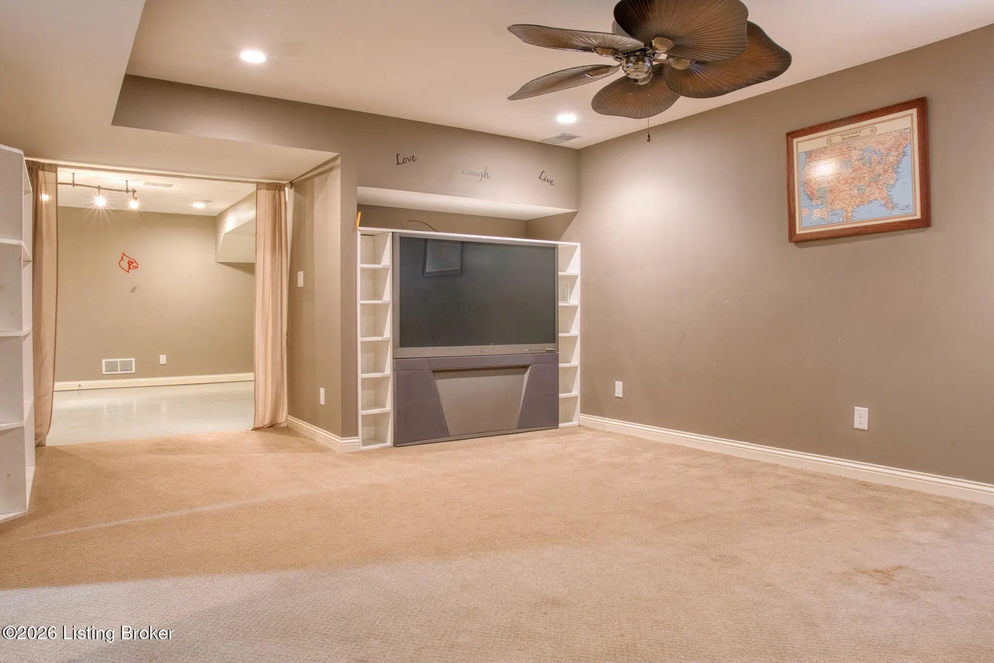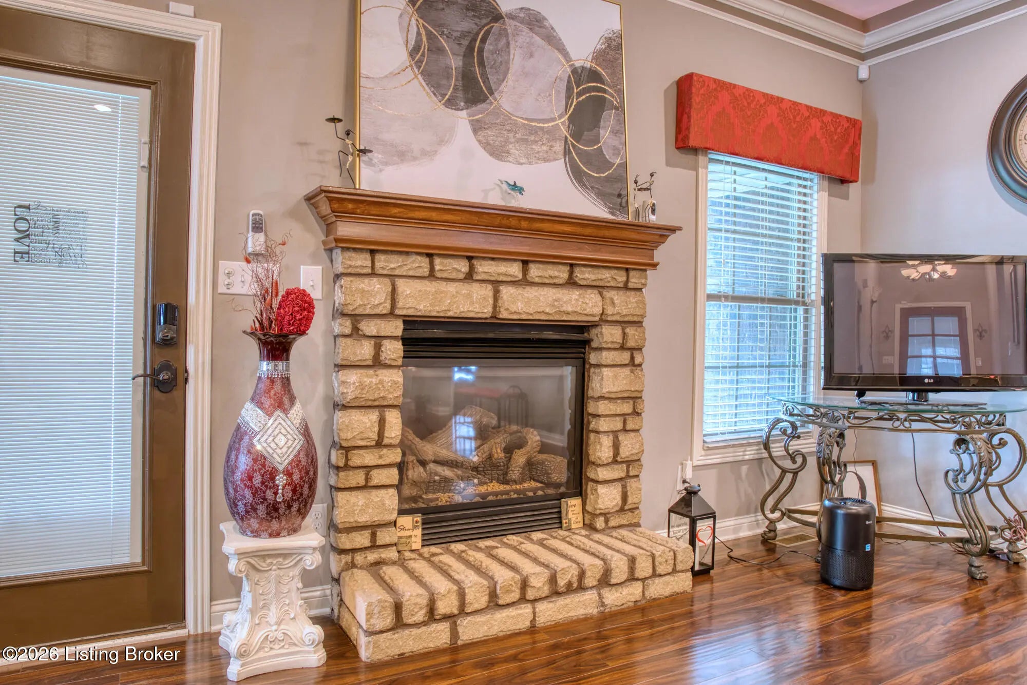 living space and a 2-car garage. You'll notice beautiful hard wood floors throughout the home. The spacious and open living area features a stone front fireplace, up lighting that change colors and a speaker system. The living area flows seamlessly into the kitchen where you'll find soft close cabinets, granite countertops with bar seating, all stainless-steel appliances, recess lighting and more up lighting! The primary suite, which features double sinks, separate shower and bathtub and Welcome to this gorgeous 3-bedroom, 3 full bath home offering over 3100 sq. ft. of finished an enormous walk-in closet, is nicely situated away from the other two bedrooms to give you extra privacy. Also located on the first floor is the laundry room and an additional bathroom. The lower level has so much to offer, adding versatility to the living space. You will find a family room equipped with built-in entertainment center, an open space that features a wet bar with a sink and lots of cabinets, a theatre room with a projector and stadium style seating, a bonus room, currently being used as office space and another full bath! There is also a nook under the stairs that can be used as a play area or to store books. With 3 closets, you'll have plenty of room for storage. The outside of this home is as stunning as the inside with a large relaxing porch and a spacious backyard with a privacy fence, large shed, patio AND a hot tub!!