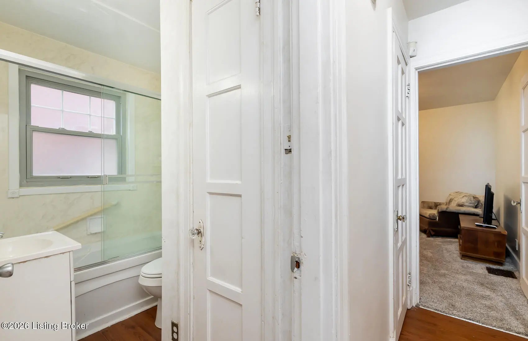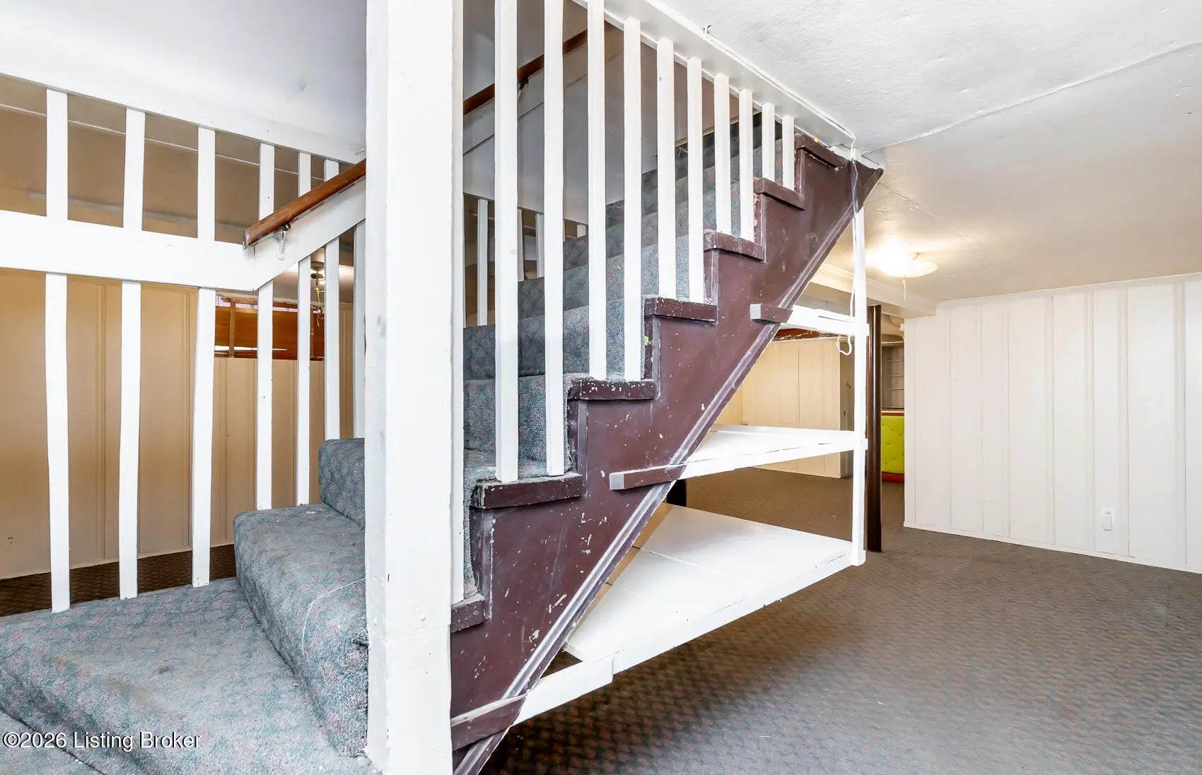 This Shawnee neighborhood home is waiting for the buyer who is looking for character, charm, and unique features. From the moment you arrive you'll be captivated by the lovely stone exterior, the welcoming front porch and beautiful ornate railing. Step inside through the Tudor style arched front door into the living room with cozy fireplace and to the formal dining room both with an abundance of natural light. The kitchen features updated countertops, and cabinets, plus there's a breakfast nook. Other classic features of this home are the 8-paneled doors with antique glass hardware throughout. 2 bedrooms down with 1 large bedroom up which would make a perfect primary suite, and includes 4 walk-in closets. Recent vinyl plank flooring in the main areas and new carpeting in the bedrooms. The basement is partially finished, and it walks out to the fenced backyard with patio area, the 2 car garage has 2 overhead doors with automatic openers, and for added convenience, flexibility, and value, there's the front entry side driveway. THIS IS A MUCH LOVED FAMILY OWNED HOME FOR ALMOST 60 YEARS. Just minutes from the Shawnee Golf Course, Interstates 264, 265, and 64, and downtown. This home is REVERT eligible, Downpayment assistance is available to qualified buyers. Hurry before this one's Gone!
