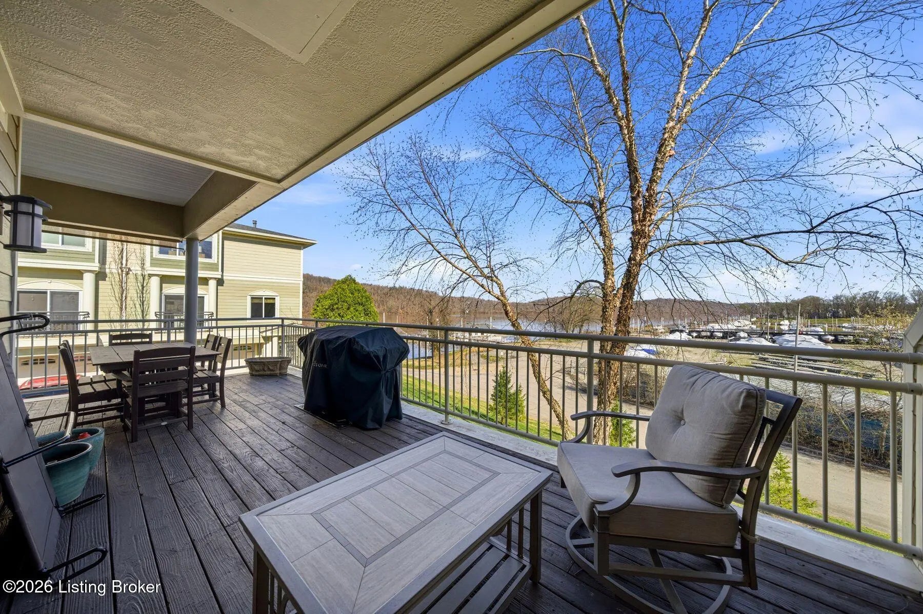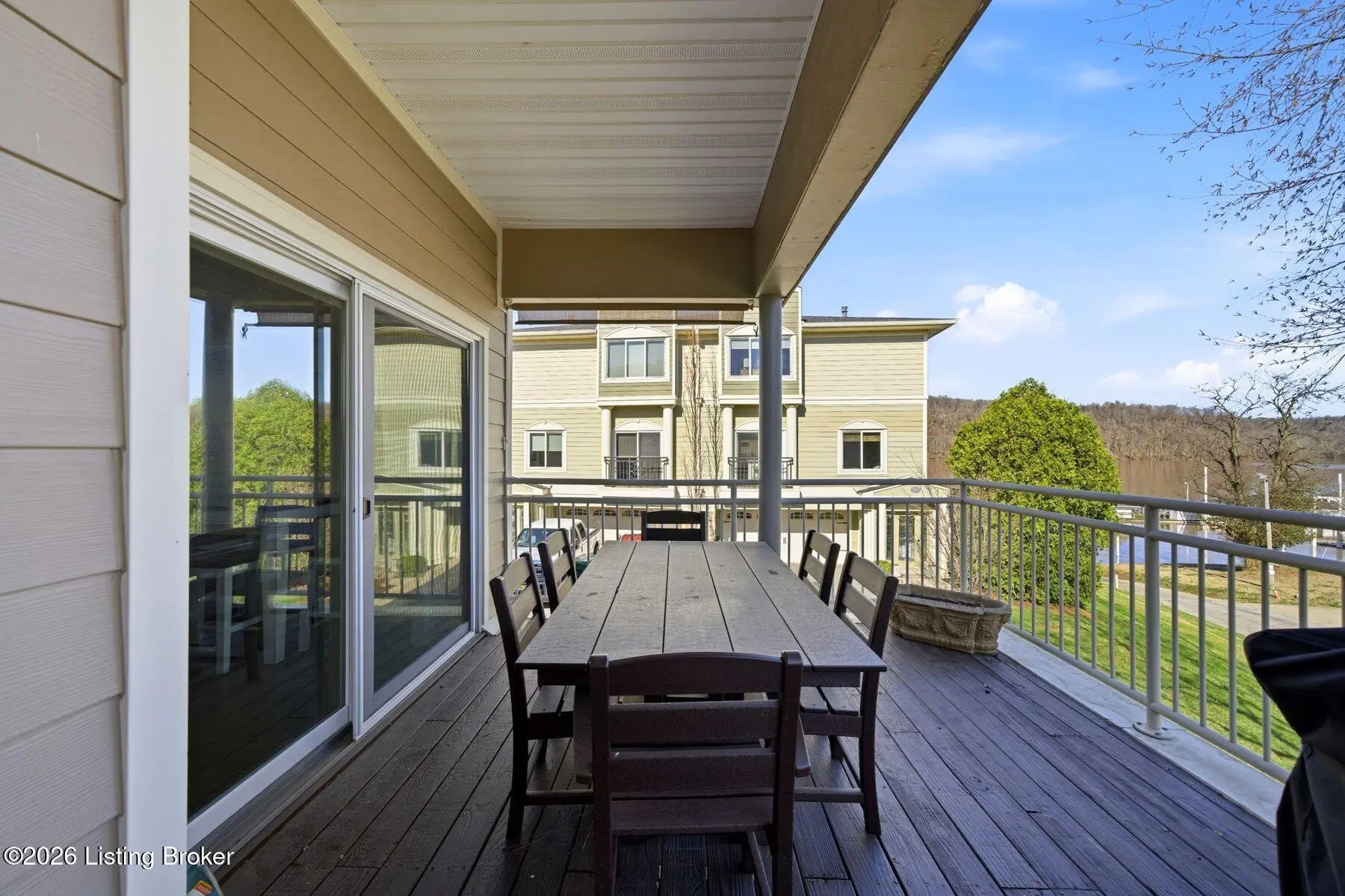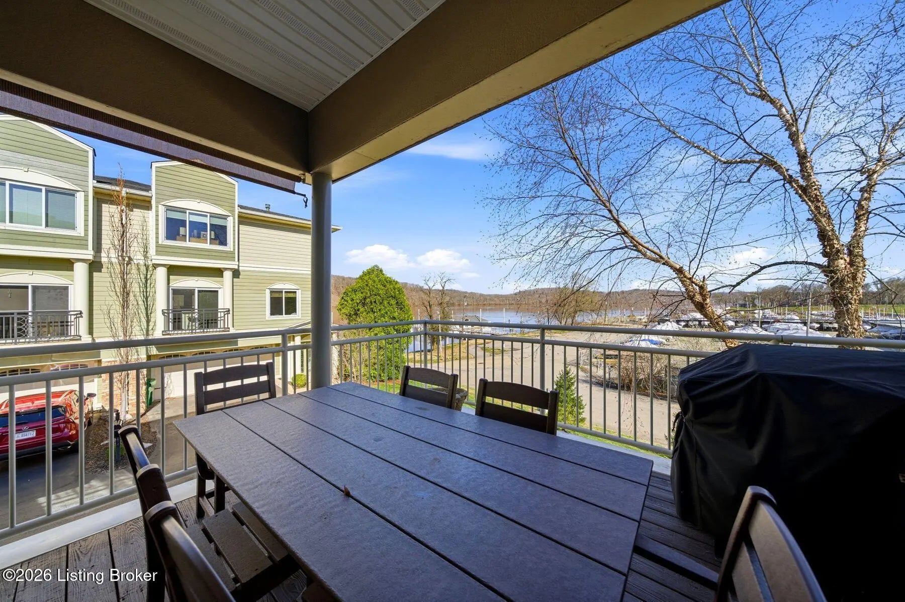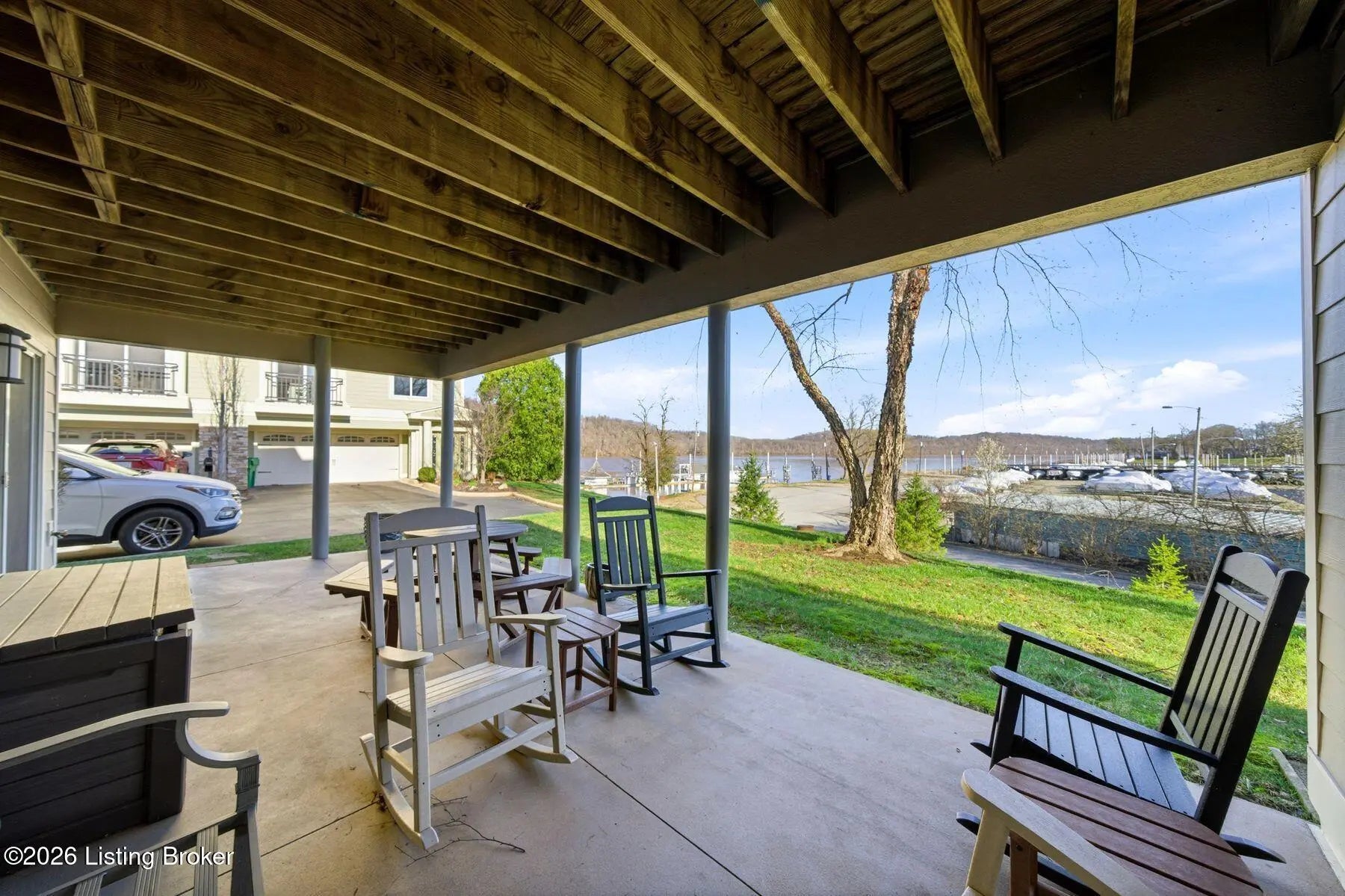 Welcome to Rose Island Riverside, where you can enjoy luxury living on the river without the need for flood insurance. Perched on a scenic hillside, this immaculate, move-in ready three-story condo blends thoughtful design with everyday functionality. Each spacious bedroom features its own private en-suite, offering comfort and privacy for family and guests alike. Every level boasts its own patio or balcony, perfect for relaxing while taking in breathtaking water views. The expansive family room is ideal for entertaining, seamlessly flowing into a beautifully appointed kitchen complete with granite countertops, ample cabinetry, and generous workspace. Perfect for any home chef! A designer Arteriors pendant light adds a touch of elevated style and warmth. The third floor offers a versatile sitting area along with two bedrooms, each featuring walk-in closets, providing flexible living options for guests, office space, or additional lounging. The primary suite is a true retreat, highlighted by a spa-like jetted tub and large windows overlooking the river. Enjoy the convenience of nearby attractions including Creasey Mahan Nature Preserve and Hermitage Farm, all just a short drive away. Schedule your private showing today and experience elevated riverfront living at its finest