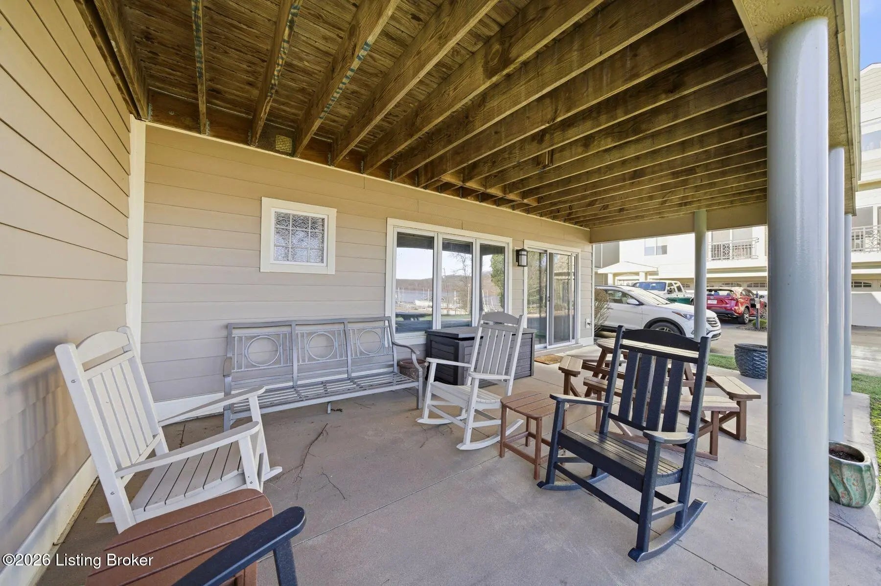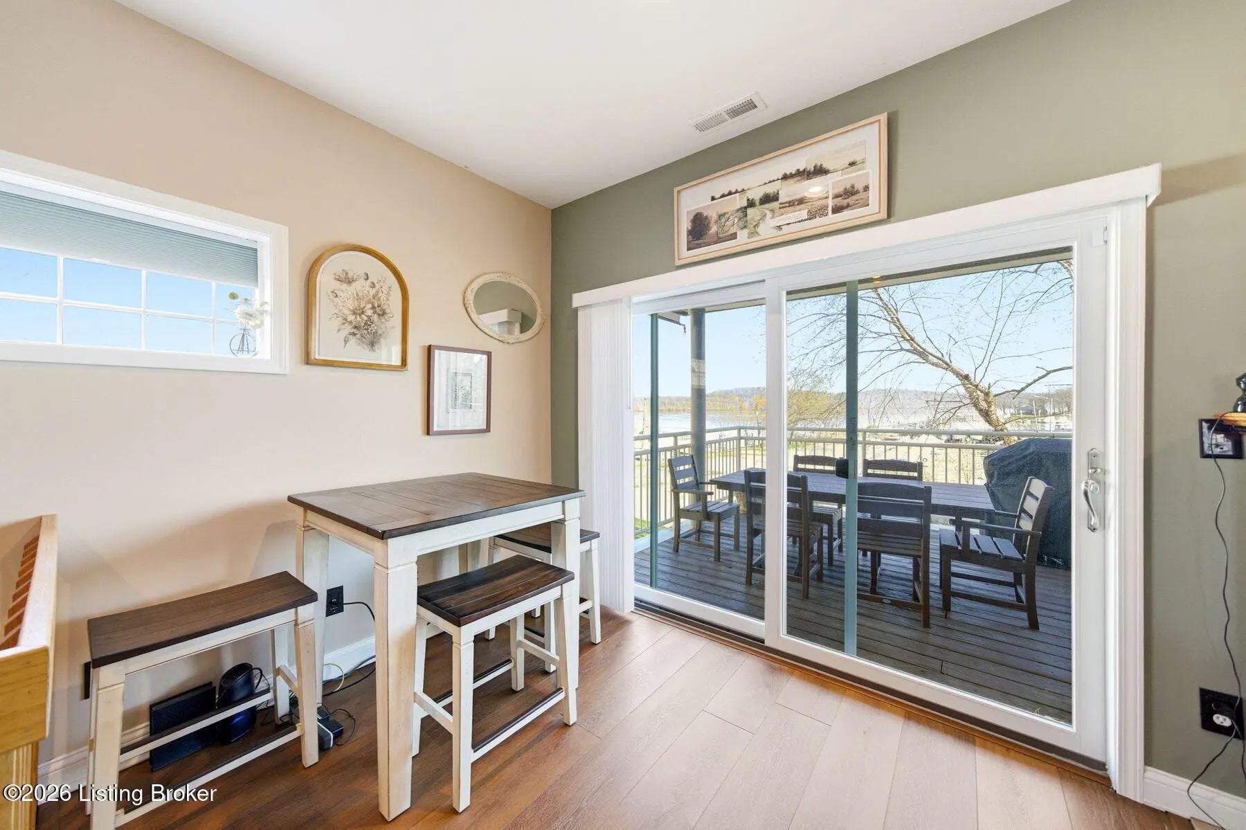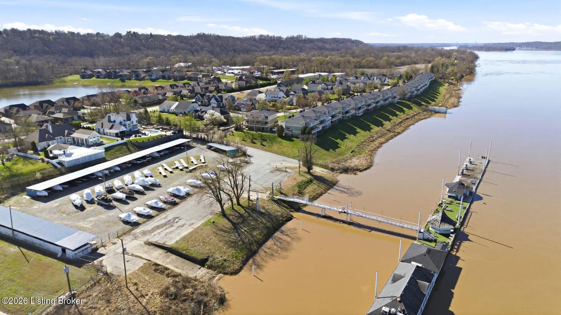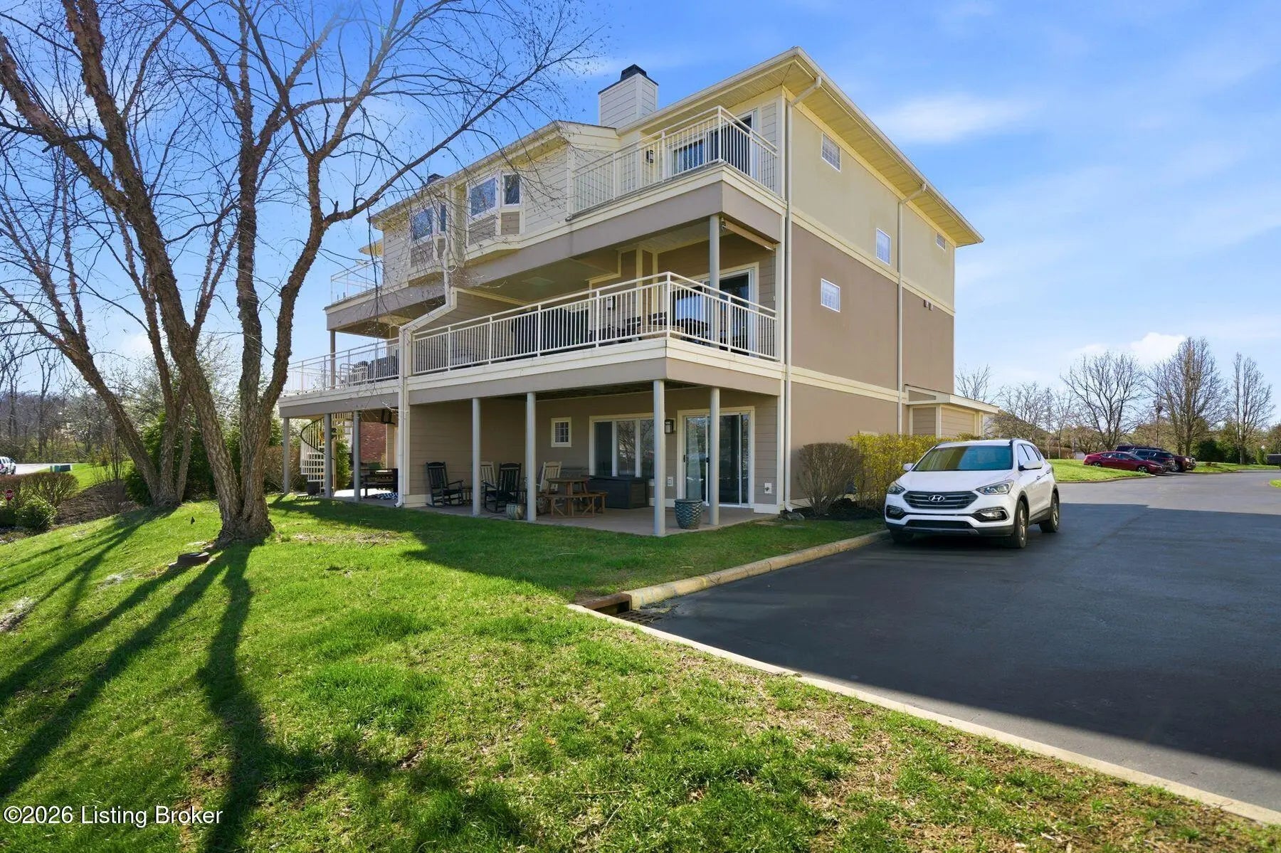 Welcome to Rose Island Riverside, where you can enjoy luxury living on the river without the need for flood insurance. Perched on a scenic hillside, this immaculate, move-in ready three-story condo blends thoughtful design with everyday functionality. Each spacious bedroom features its own private en-suite, offering comfort and privacy for family and guests alike. Every level boasts its own patio or balcony, perfect for relaxing while taking in breathtaking water views. The expansive family room is ideal for entertaining, seamlessly flowing into a beautifully appointed kitchen complete with granite countertops, ample cabinetry, and generous workspace. Perfect for any home chef! A designer Arteriors pendant light adds a touch of elevated style and warmth. The third floor offers a versatile sitting area along with two bedrooms, each featuring walk-in closets, providing flexible living options for guests, office space, or additional lounging. The primary suite is a true retreat, highlighted by a spa-like jetted tub and large windows overlooking the river. Enjoy the convenience of nearby attractions including Creasey Mahan Nature Preserve and Hermitage Farm, all just a short drive away. Schedule your private showing today and experience elevated riverfront living at its finest