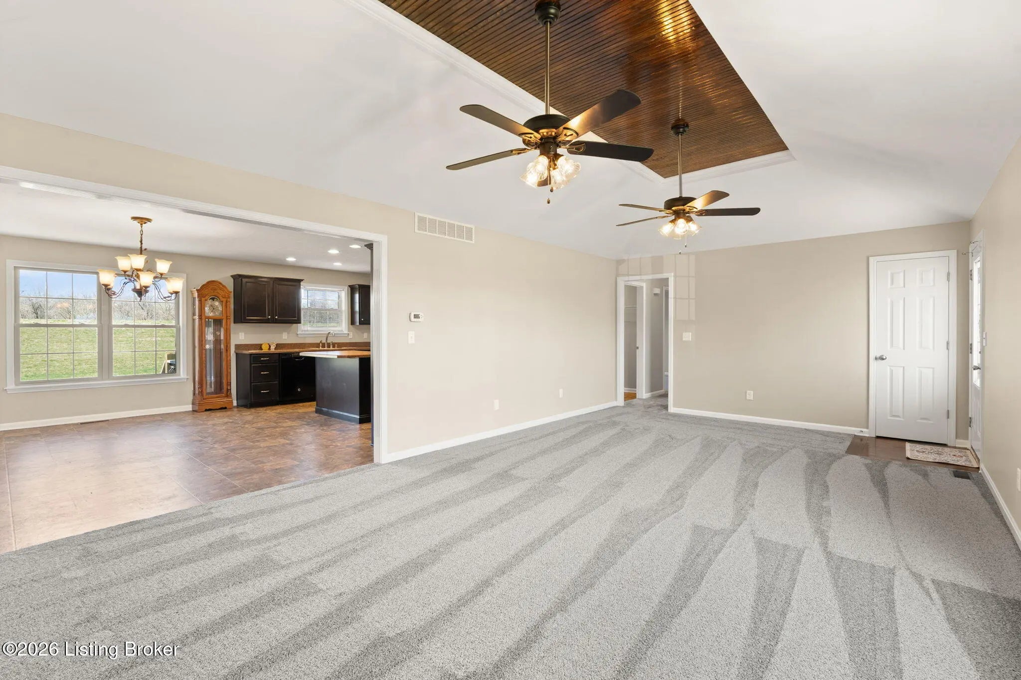 Welcome to your forever home! This beautiful 3-bedroom, 3-bath brick ranch sits on just under an acre and offers the perfect mix of space, functionality and opportunity. Inside the inviting living room stands out with its tray ceiling and stained wood focal point, creating a warm, custom touch that makes the space feel both elegant and welcoming. The living room opens to a spacious kitchen featuring an island, ample cabinetry, large pantry, and access to the deck overlooking the backyard. The primary suite is a large retreat with tray ceilings, a generous en suite bath, walk-in closet, and natural light pouring through the window. Down the hall two additional nice-sized bedrooms, another full bath, and laundry room complete the main level. The walk-out basement is unfinished and full of possibility, ready for your personal touch. With a third finished full bath already in place, the lower level is well on its way to becoming the perfect extension of the home. And the pool table remains for a perfect start to the game area! Step outside and imagine the possibilities in the oversized backyard—plenty of room for entertaining, play, gardening, or even adding a barn or detached garage. This property offers the space you've been looking for both inside and out. Just beyond the hill lining the backyard, you'll find the river along with a walking path where you can enjoy peaceful views and take in the natural surroundings. With space to grow and so much potential, this property is ready to fit your lifestyle. Don't miss your chance to make it yours!