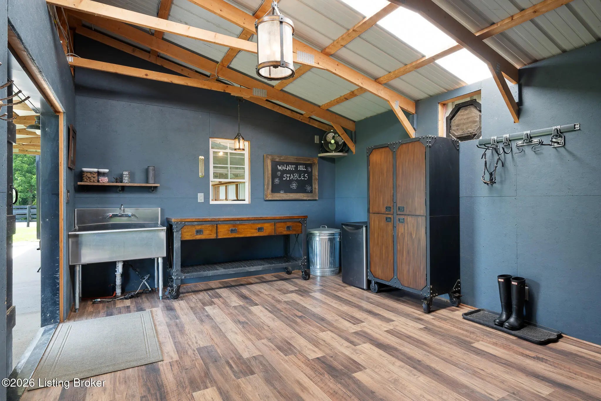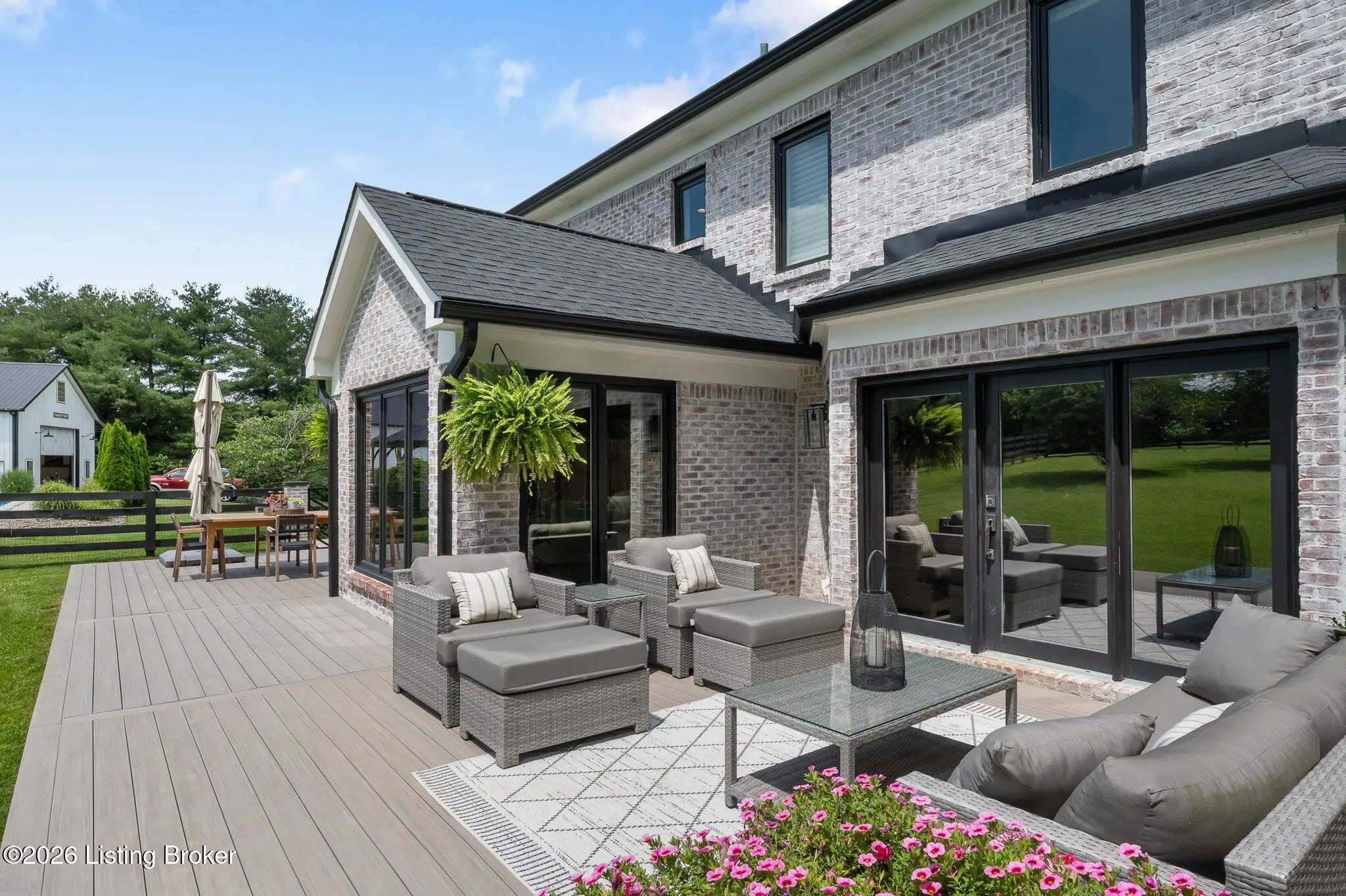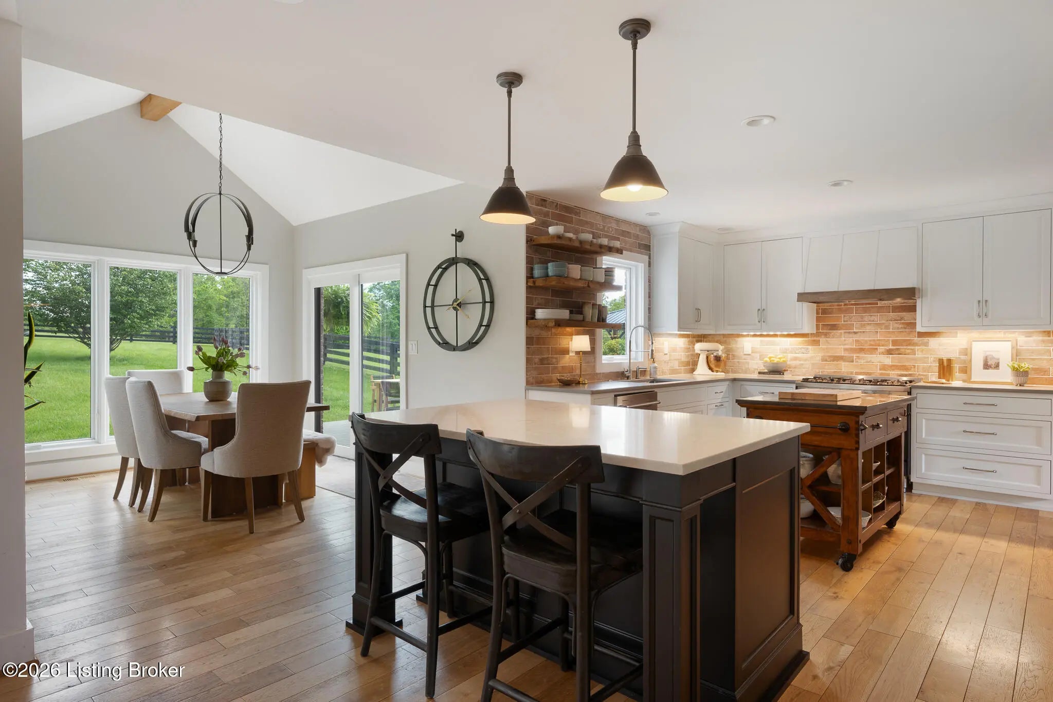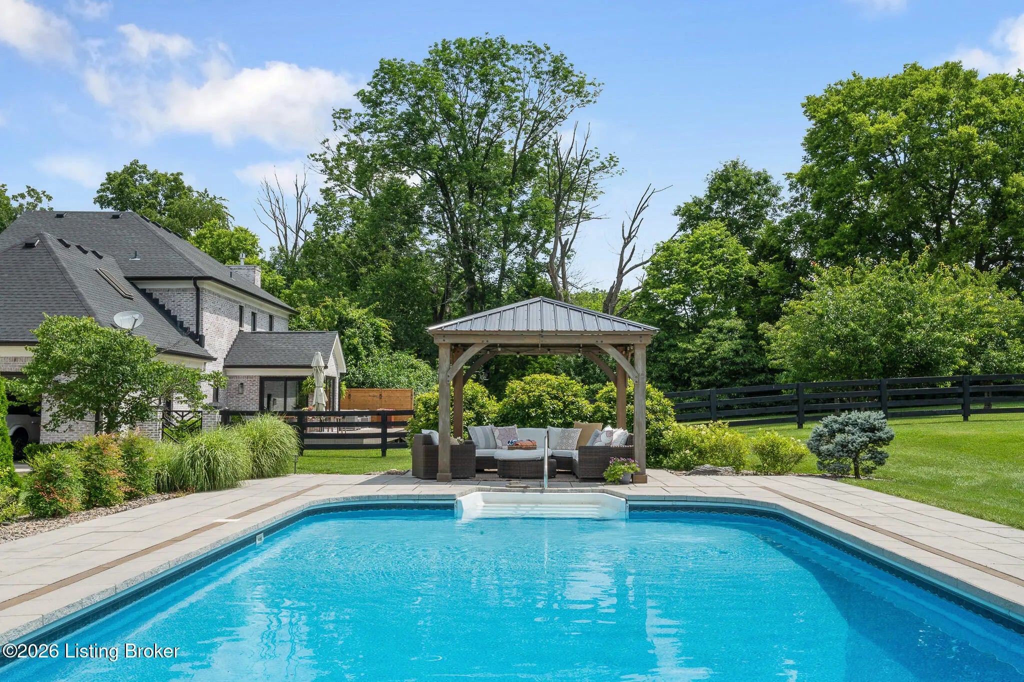 Peace & tranquility await you at this private 10-acre country estate! At Walnut Hill, you'll discover groves of trees, rolling fields, ponds and Kentucky black board fences that create this one-of-a kind property. Located near the charming town of Simpsonville, this stellar property is mere minutes from restaurants, cafes, boutiques & The Outlets of the Bluegrass. Enter through the stately gate and travel down the winding tree lined driveway where you will approach a stunning custom home perched in the center of the estate, where total privacy and vast countryside views abound. This beautifully remodeled four bedroom, three-and-a-half-bath home has an open floor plan, abundance of natural light and finished walk-out lower level. An inviting front porch with seating area welcomes you into a spectacularly designed interior with high-end finishes throughout. The home boasts luxuries such as built-in cabinetry, quartz countertops, designer appliances and beverages fridges, laundry centers, and cedar beamed vaulted ceilings on multiple levels. Step outside to your private backyard retreat featuring multiple decks, a large in-ground pool, gazebo, hot tub, garden area and oversized fire pit. An entertainer's paradise! A spacious 50x36 shop is finished with 200-amp electrical service, 50-amp RV hook ups and water. The building would easily convert into an additional barn, workshop, guest home or pickleball court. The possibilities are endless! Walnut Hill is set up for horse lovers. A stylish barn boasts two oversized stalls and a large tack room. In addition, two run-in stalls with small paddocks provide additional turn-out space. All stalls are equipped with automatic waterers, lighting & fans. Other features include a 45' round training pen, grooming station and large equipment building (36'x20) for all of your storage needs. The back paddock has been used for grazing, as well as a short golf course. Natural beauty abounds on this incredible property, with two ponds to enjoy fishing and a water feature, a seasonal creek with bridge & walking trails through mature groves of trees. Only 25 minutes to downtown Louisville & airport, Walnut Hill is the perfect place for peaceful country living, with access to all of the city's events and amenities. This is truly a rare opportunity to own a slice of Bluegrass paradise.