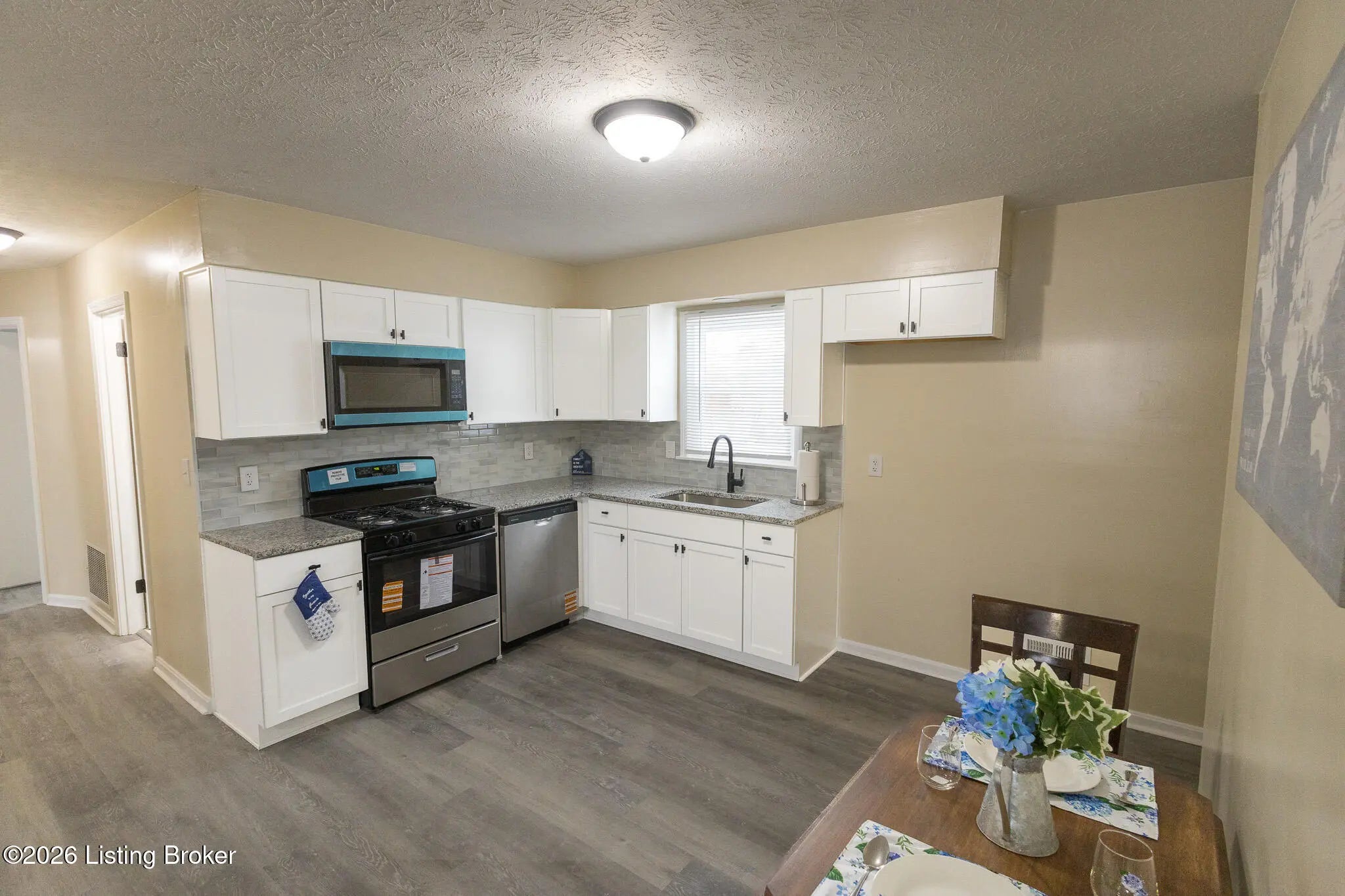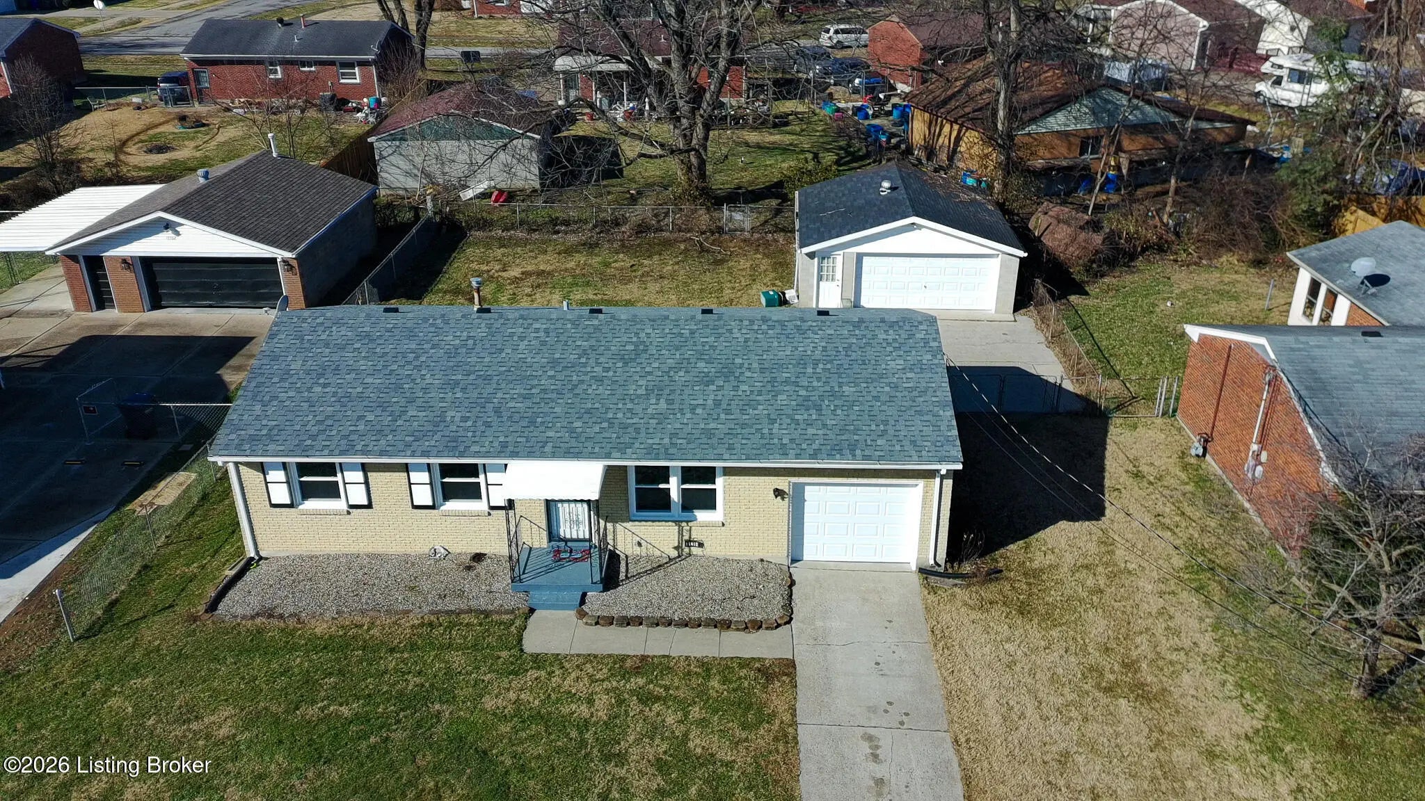 Welcome home to 11214 Deering Road, a charming and fully refreshed brick ranch perfectly positioned in the welcoming heart of Valley Station —a friendly, suburban Louisville neighborhood known for its peaceful streets, community vibe, and easy access to everyday conveniences. This move-in-ready gem artfully marries classic mid-century appeal with thoughtful modern updates, delivering 3 generous bedrooms, a beautifully renovated full bathroom, and a bright, open-concept design ideal for relaxed daily living or hosting friends and family. Step inside to a fresh, inviting interior featuring crisp new paint throughout, sleek new flooring underfoot, contemporary light fixtures, updated electrical switches and outlets, and energy-efficient windows that flood the space with natural light The welcoming living area flows effortlessly into the revitalized kitchen—the undeniable centerpiece of the home. It boasts brand-new cabinetry, luxurious granite countertops, a bold glass tile backsplash, and a complete set of stainless steel appliances (including range, microwave, and dishwasher)—ready to handle everything from quick weeknight dinners to weekend gatherings. The updated bathroom provides a serene, spa-like escape with modern tile flooring, a stylish new vanity, and updated fixtures for everyday comfort and style. One of the home's true highlights is its exceptional garage setup: an attached one-car garage plus a rare two-car detached garage—a dream for hobbyists, extra storage, a workshop, or additional parking flexibility. Outside, the spacious backyard offers ample room for outdoor fun, gardening, pets, play, or future expansions like a patio or deck. Below, the full unfinished basement—professionally waterproofed with a transferable warranty—delivers incredible versatility and peace of mind. It's a blank slate waiting for your vision: finish it into extra bedrooms, a cozy family room, home office, rec space, or even add a second bath to expand the home's footprint. Recent major upgrades seal the deal for low-maintenance ownership: a brand-new roof and new HVAC system ensure reliability and efficiency for years to come. Nestled in desirable Valley Station, this ranch offers the perfect blend of suburban serenity and practicality—close to local schools, shopping, dining, parks, and major highways for seamless commutes into Louisville. Don't let this upgraded, opportunity-filled home pass you by. Contact us today to schedule your private tour and discover why 11214 Deering Road is the ideal place to plant roots and make lasting memories!