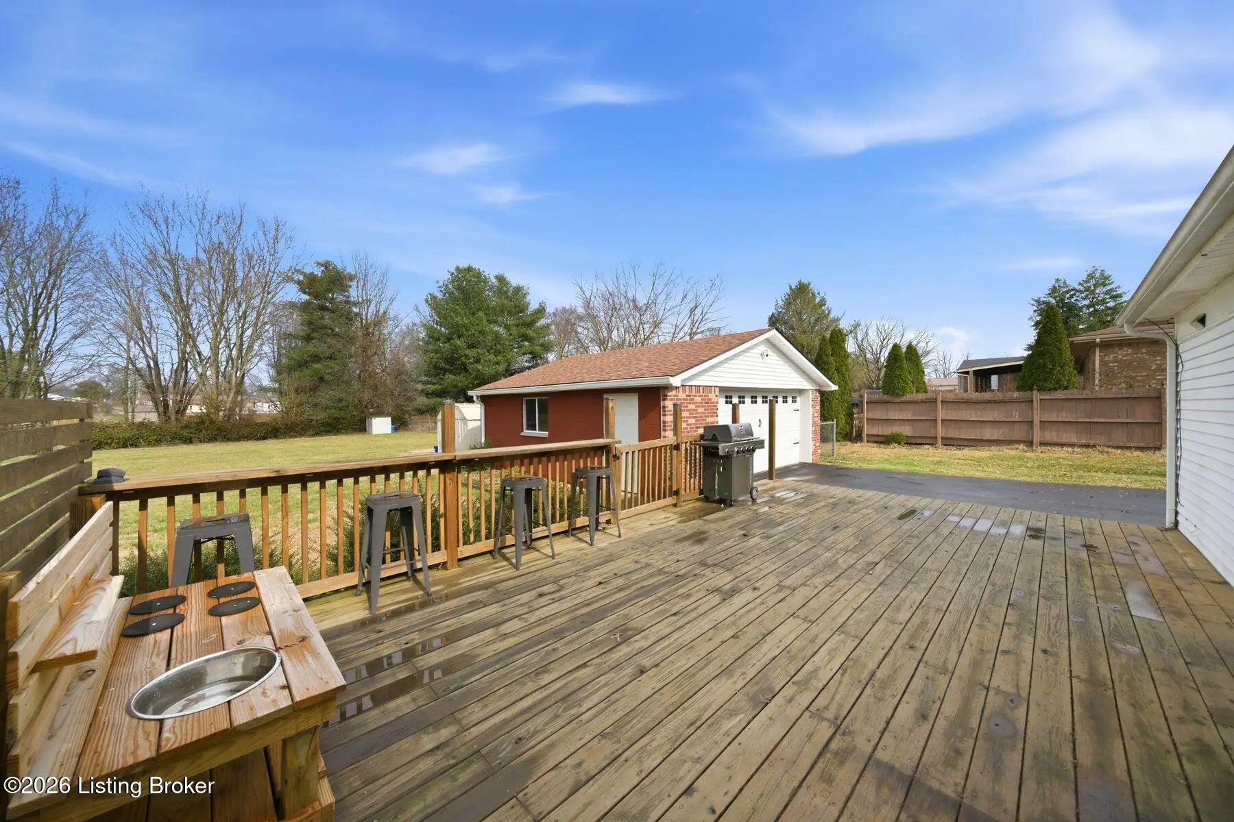 Welcome to 272 Minnie Lane in the desirable Zoneton area of Bullitt County. Move in ready brick ranch featuring 3 bedrooms and 2 full bathrooms with a desirable open concept layout. As you enter, you'll love the spacious living area highlighted by a beautiful brick fireplace that flows seamlessly into the kitchen, complete with an island and bar seating, perfect for everyday living and entertaining. The home offers three bedrooms, including a primary suite with its own full bathroom. Step outside to relax on the deck overlooking the fully fenced great sized lot, providing plenty of space to enjoy the outdoors. A 2.5 car detached garage offers ample room for parking, storage, or a workshop. Call today for your private showing!