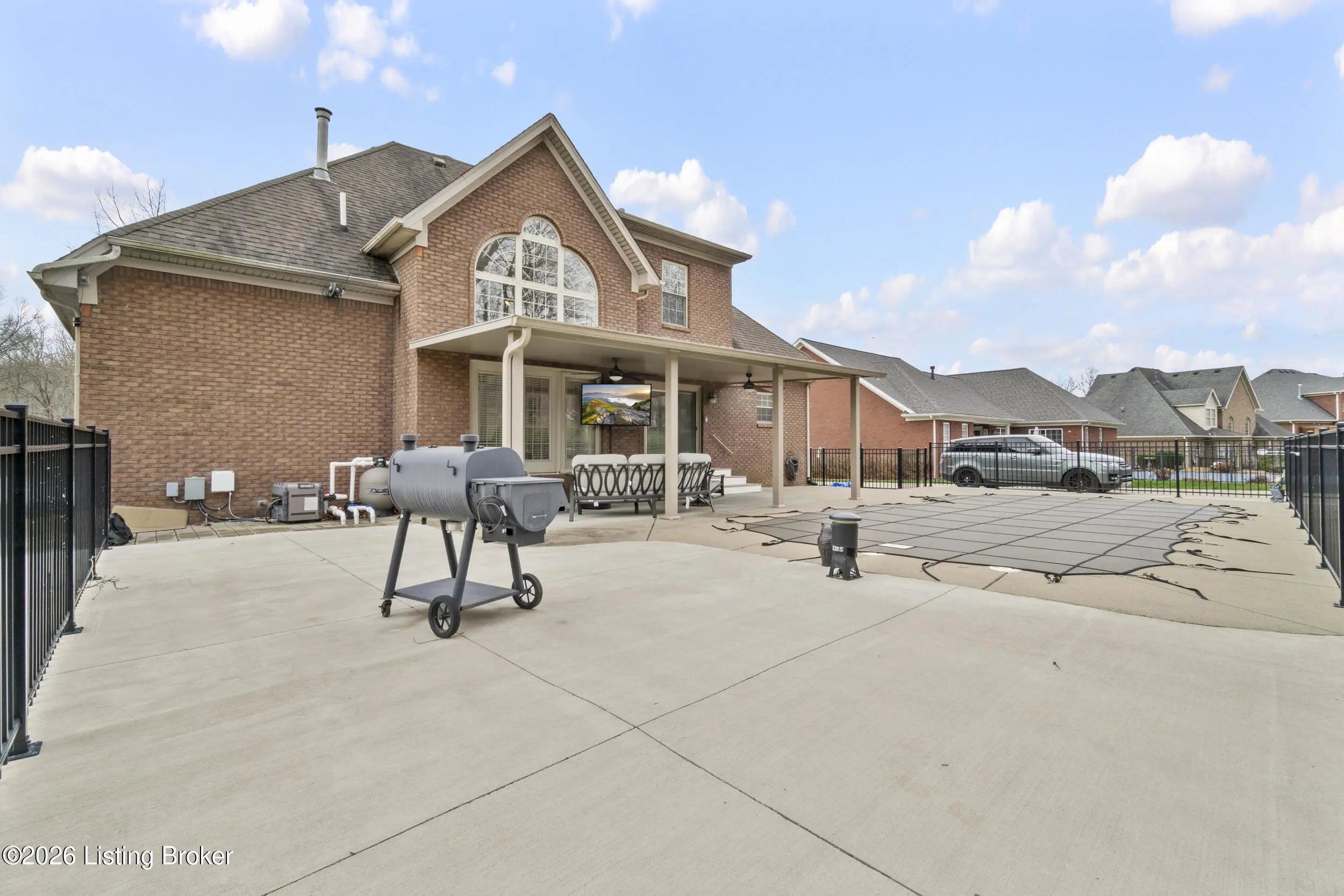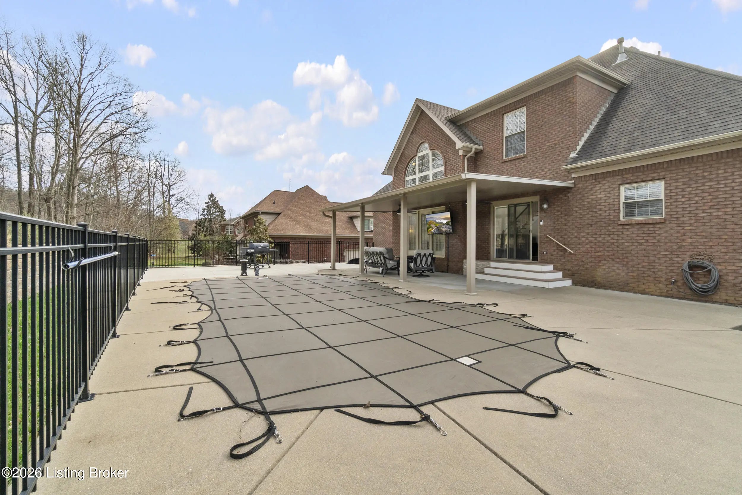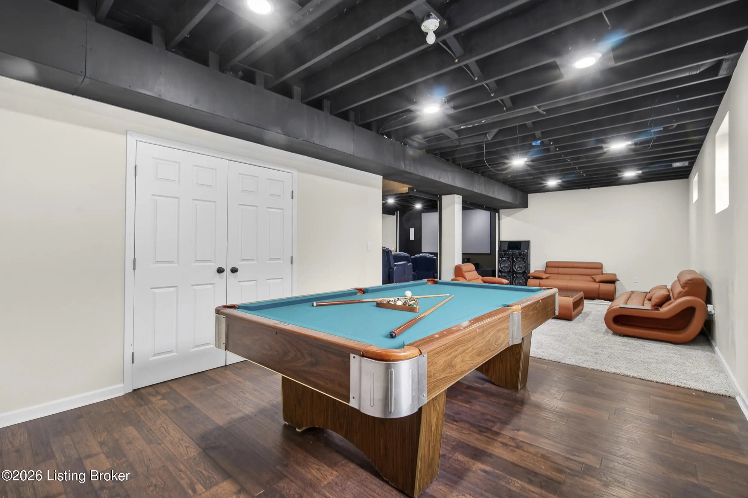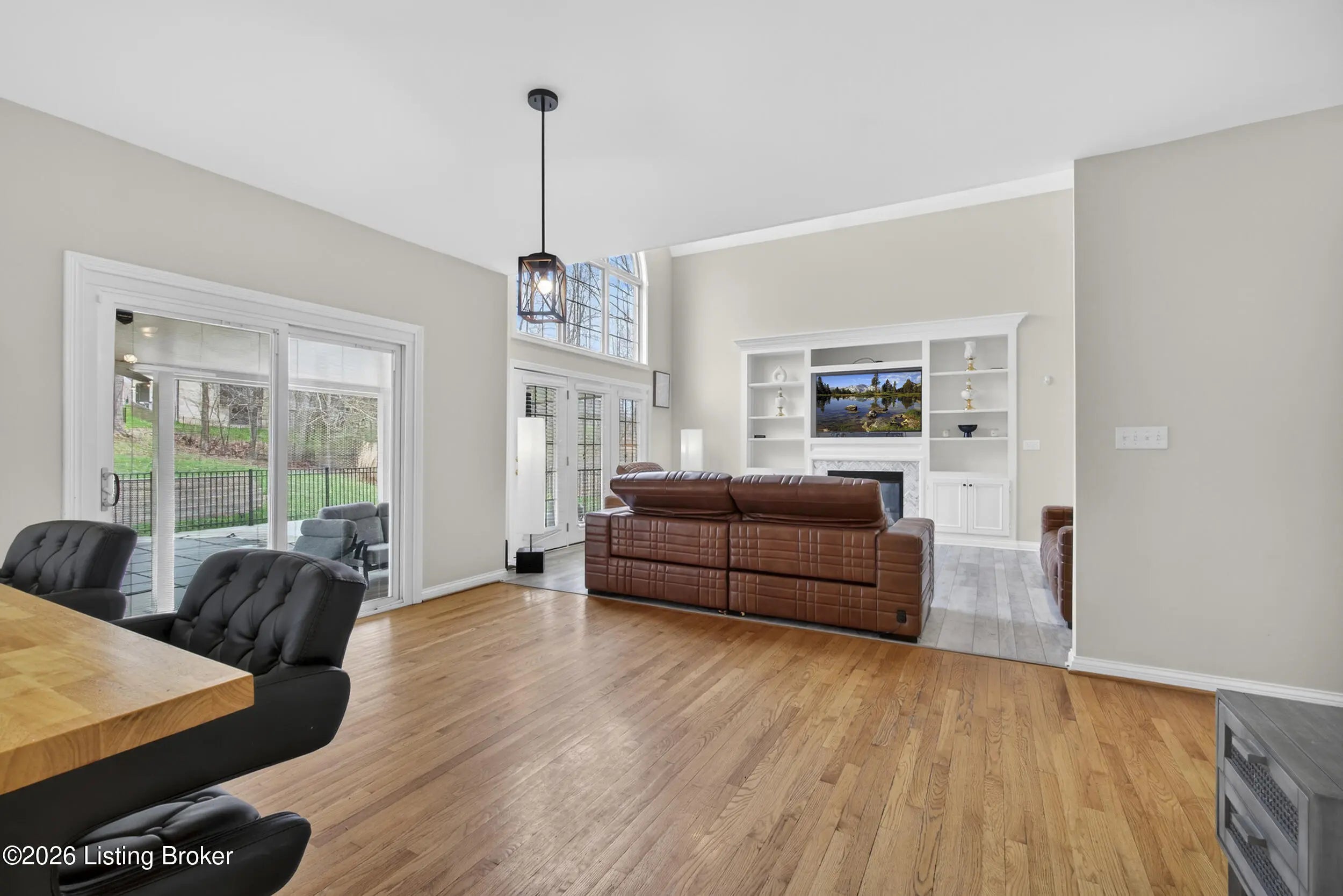 A private backyard retreat, resort-style saltwater pool, and expansive entertaining spaces set this exceptional two-story brick home apart in Hardwood Forest. Designed for both everyday living and memorable gatherings, the home opens to a dramatic two-story great room where floor-to-ceiling windows frame the backyard and fill the space with natural light. The kitchen flows seamlessly into the great room, creating an ideal setting for hosting. An oversized island, abundant cabinetry, and an expansive eat-in area support everything from casual weeknights to holiday celebrations. Currently used as an office, the formal dining room with classic trim detail offers flexibility and an elegant setting for special occasions. The first-floor primary suite delivers privacy and comfort with a spacious walk-in closet and a beautifully updated bath featuring heated and cooled floors, dual vanities, a sleek walk-in shower, and an integrated Bluetooth sound system—luxury touches that elevate the everyday experience. The lower level was designed with recreation and relaxation in mind. A dedicated theater room with surround sound and retractable shades provides a true cinema experience for movie nights and game days. The adjoining recreation space with pool table (remains), bar area, and wine fridge creates a natural hub for entertaining. A full bath, a versatile bonus room that can serve as a gym, office, or guest suite, and generous storage complete the lower level. Outdoors, the saltwater pool serves as the centerpiece of a private backyard retreat. Multiple seating areas, a fire pit, and outdoor media setup create a resort-style setting framed by a natural buffer of mature trees that provides uncommon privacy from neighboring homes. The extended driveway offers additional parking and flexibility for guests, complementing the home's impressive curb appeal. Upstairs, three spacious bedrooms and a Jack-and-Jill bath provide comfortable accommodations for family or visitors. Additional features include a home security system, a one-year-old HVAC system with transferable warranty, and a hot water heater with transferable warranty. The HOA handles snow removal, and residents enjoy easy access to the lake, walking trails, and abundant wildlife at nearby Waverly Park. With thoughtfully upgraded finishes, luxury details not often found in the neighborhood, and a backyard designed for both privacy and celebration, this Hardwood Forest residence offers a level of comfort and entertaining potential that truly stands apart.