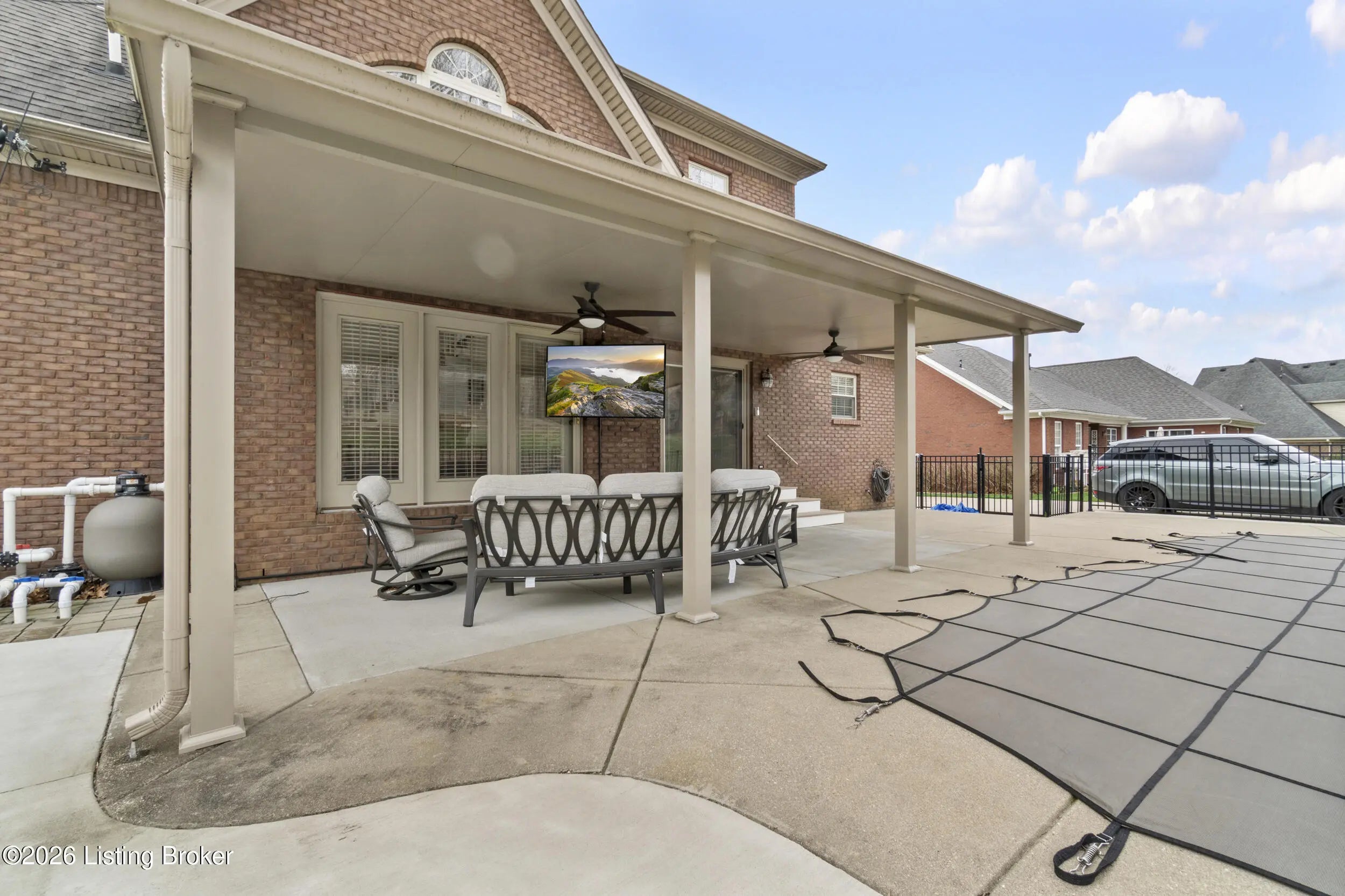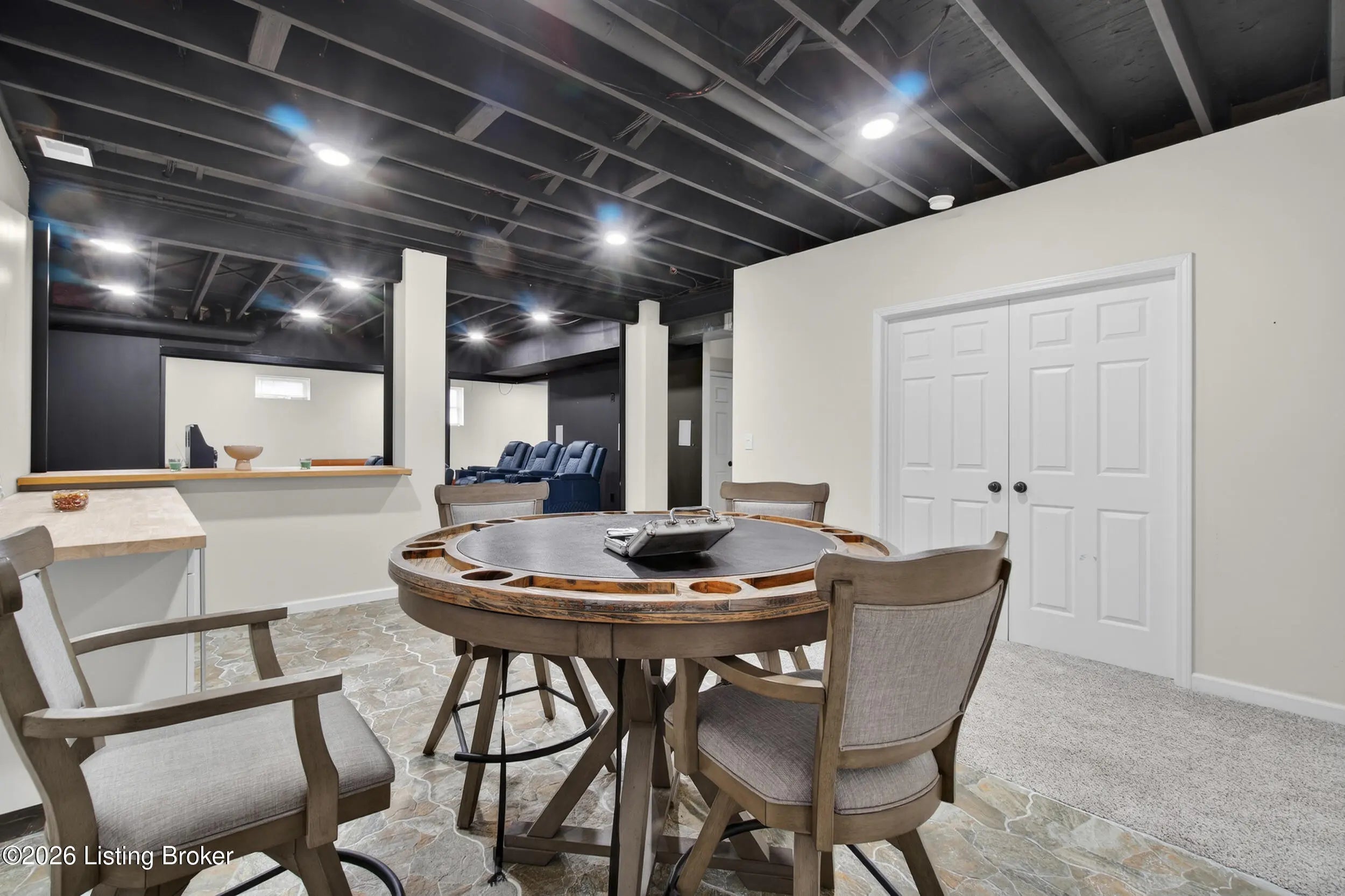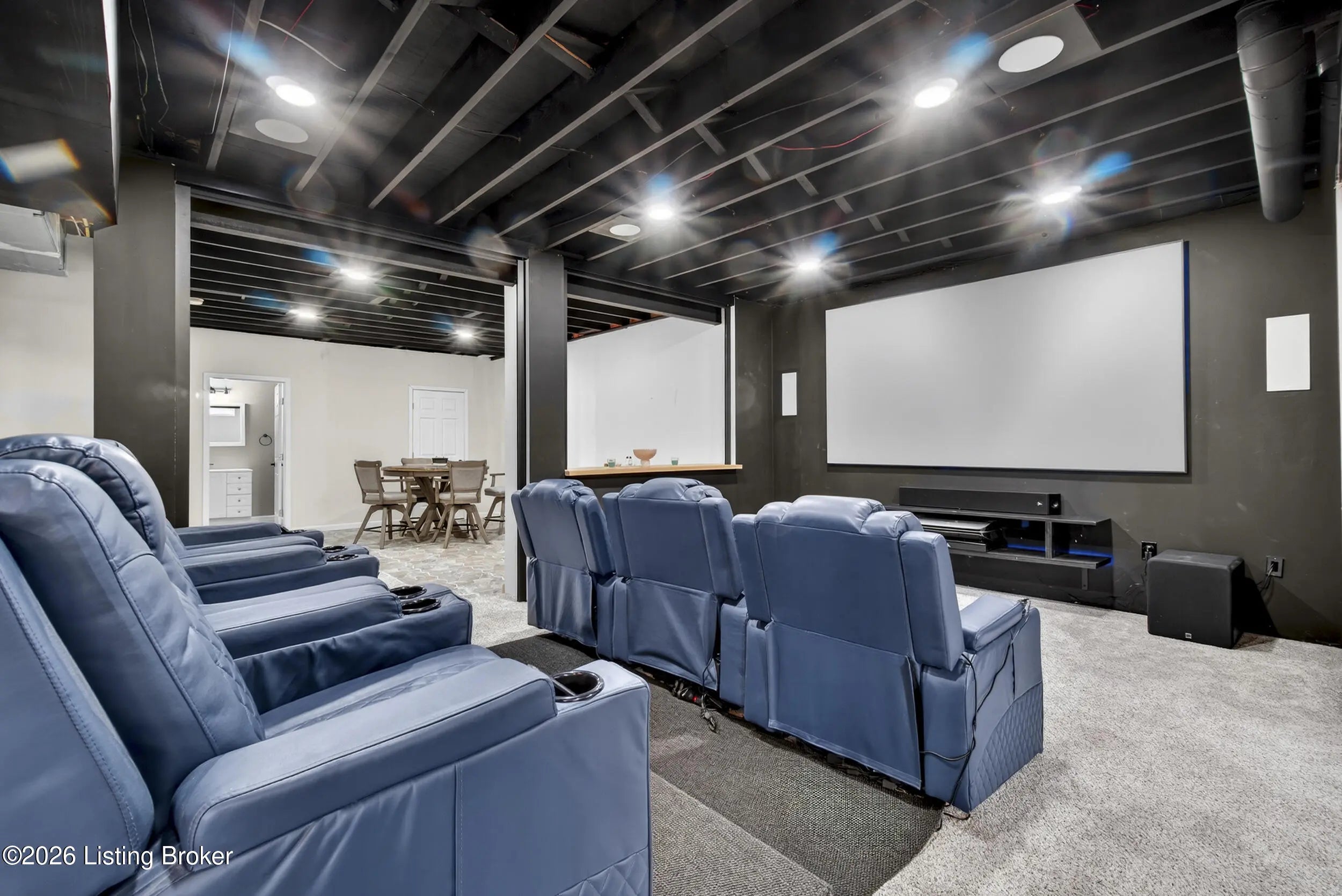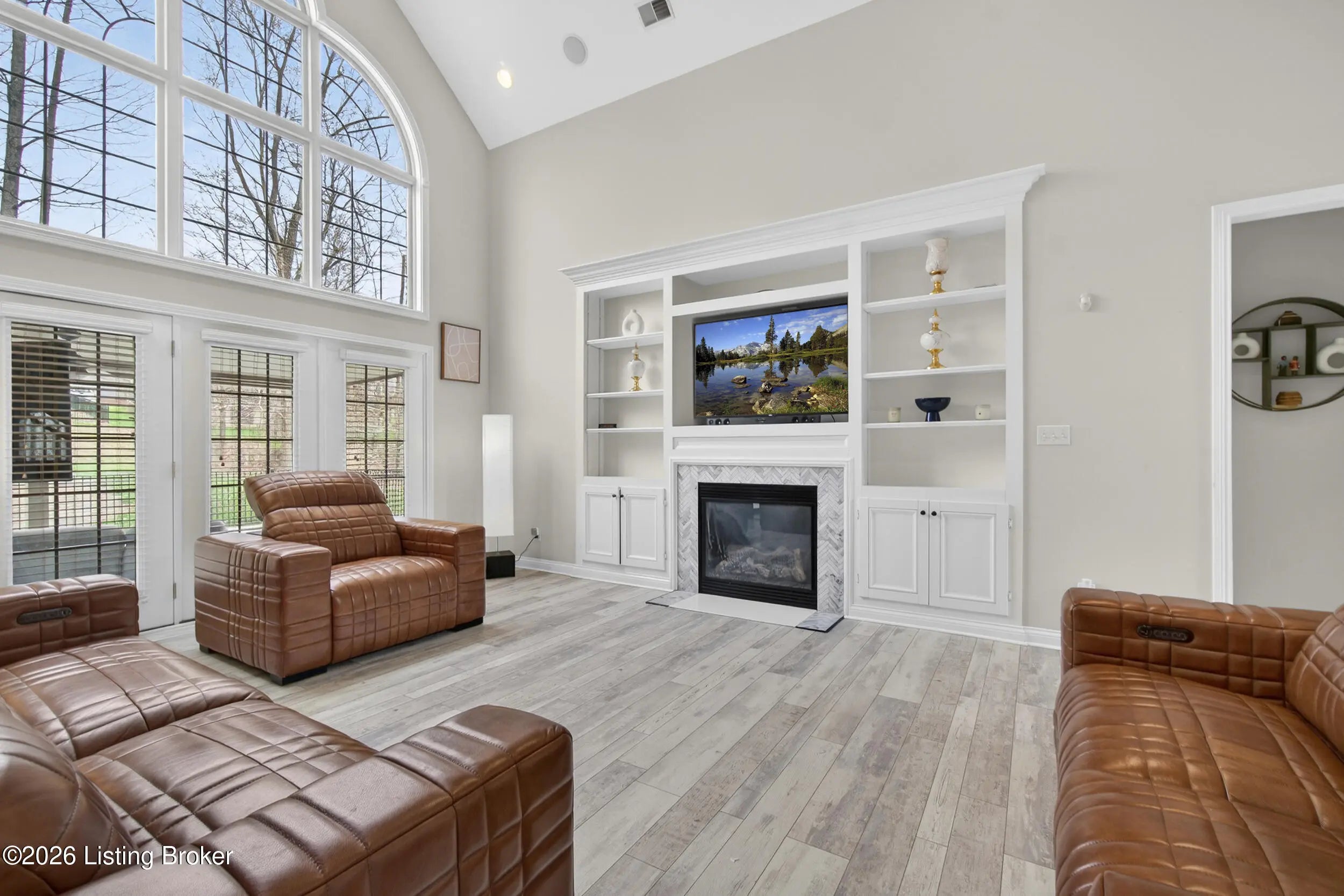 A private backyard retreat, resort-style saltwater pool, and expansive entertaining spaces set this exceptional two-story brick home apart in Hardwood Forest. Designed for both everyday living and memorable gatherings, the home opens to a dramatic two-story great room where floor-to-ceiling windows frame the backyard and fill the space with natural light. The kitchen flows seamlessly into the great room, creating an ideal setting for hosting. An oversized island, abundant cabinetry, and an expansive eat-in area support everything from casual weeknights to holiday celebrations. Currently used as an office, the formal dining room with classic trim detail offers flexibility and an elegant setting for special occasions. The first-floor primary suite delivers privacy and comfort with a spacious walk-in closet and a beautifully updated bath featuring heated and cooled floors, dual vanities, a sleek walk-in shower, and an integrated Bluetooth sound system—luxury touches that elevate the everyday experience. The lower level was designed with recreation and relaxation in mind. A dedicated theater room with surround sound and retractable shades provides a true cinema experience for movie nights and game days. The adjoining recreation space with pool table (remains), bar area, and wine fridge creates a natural hub for entertaining. A full bath, a versatile bonus room that can serve as a gym, office, or guest suite, and generous storage complete the lower level. Outdoors, the saltwater pool serves as the centerpiece of a private backyard retreat. Multiple seating areas, a fire pit, and outdoor media setup create a resort-style setting framed by a natural buffer of mature trees that provides uncommon privacy from neighboring homes. The extended driveway offers additional parking and flexibility for guests, complementing the home's impressive curb appeal. Upstairs, three spacious bedrooms and a Jack-and-Jill bath provide comfortable accommodations for family or visitors. Additional features include a home security system, a one-year-old HVAC system with transferable warranty, and a hot water heater with transferable warranty. The HOA handles snow removal, and residents enjoy easy access to the lake, walking trails, and abundant wildlife at nearby Waverly Park. With thoughtfully upgraded finishes, luxury details not often found in the neighborhood, and a backyard designed for both privacy and celebration, this Hardwood Forest residence offers a level of comfort and entertaining potential that truly stands apart.
