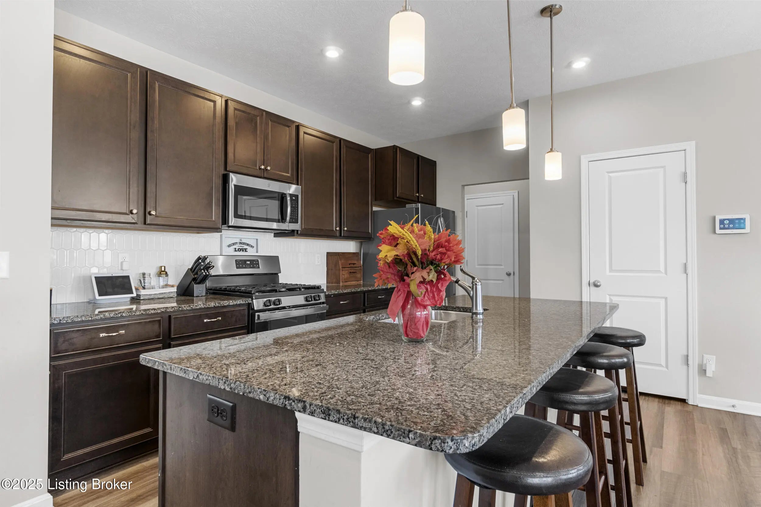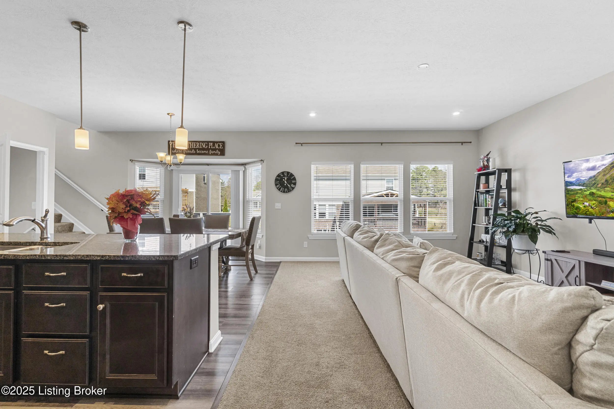 This Bullitt county home offers plenty of space and practical features for everyday living. With 3 bedrooms, 3.5 bathrooms, a bonus room, a loft, and a finished walk-out basement, there's room for a variety of needs.The covered front porch leads into the home, where you'll find a bright bonus room with double glass doors well suited for a home office, or additional living space.The kitchen features granite countertops, a center island, and stainless steel appliances, including a gas range. There's also ample pantry storage and an eat-in area for casual meals.The living area connects to a 16' x 14' deck, providing an easy outdoor space for relaxing or spending time with others, with views of the fenced backyard.