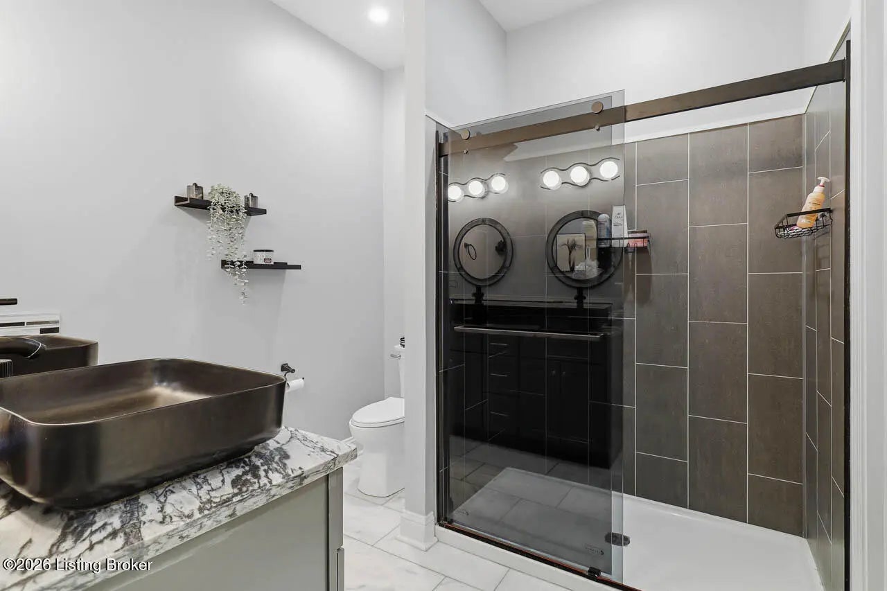 This beautifully renovated 3 bedroom, 2.5 bath home blends comfort, functionality, and modern style throughout. A charming covered front porch sets the tone, offering a perfect spot to relax and unwind. The living room is highlighted by an eye-catching fireplace, creating a warm and inviting atmosphere ideal for both everyday living and entertaining. The modern kitchen offers an abundance of cabinetry and counter space, making meal prep and storage a breeze, while a conveniently located half bath adds extra practicality to the main floor. You will love the spacious first floor primary suite complete with a well-appointed bathroom showcasing granite countertops, dual sinks, a tiled shower, and a generous walk-in closet. Upstairs, you'll find two additional bedrooms, a full bathroom, and a dedicated laundry area for added convenience. An unfinished basement provides plenty of room for storage or future expansion possibilities. Just off the back of the home you will have a deck that is perfect for grilling or simply enjoying the outdoors. Outside, a partially fenced backyard offers a touch of privacy, and the rare off-street parking is a valuable bonus for the area. Situated in a location that makes commuting to downtown quick and easy, this home combines style, space, and convenience in one impressive package. Schedule a showing today to make this adorable house your new home!