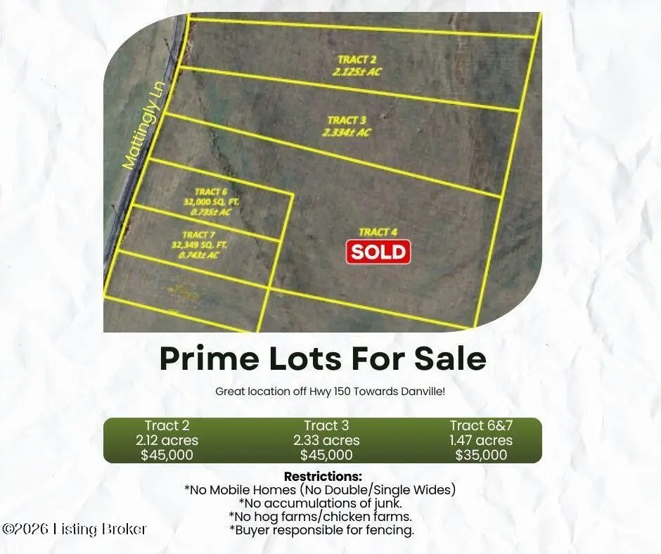 This prime building lot with 2.125+/- acres lays really well and offers plenty of buffer space from neighbors and is only 5 miles from downtown Springfield right off of Hwy 150. Electricity and city water are available on the road. Pick out your favorite floor plan and give us a call to explore this handy parcel!
