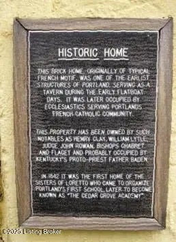 INVESTORS! Step back in time with this rare historic gem in the heart of Portland! Built in 1827, this property once served as a tavern for river travelers and boatmen and was even used as a makeshift church before one was built in the area. Full of character and potential, this 2-bedroom, 1-bath home sits on a quiet court and features a full basement, a small one-car garage, and off-street parking. The home is in need of a complete renovation, including mechanical systems, cosmetic updates, and remodeling throughout. The bathroom is located on the second floor. This is a unique opportunity for investors, preservationists, or visionary homeowners to restore a piece of Louisville's history. Sold as-is.