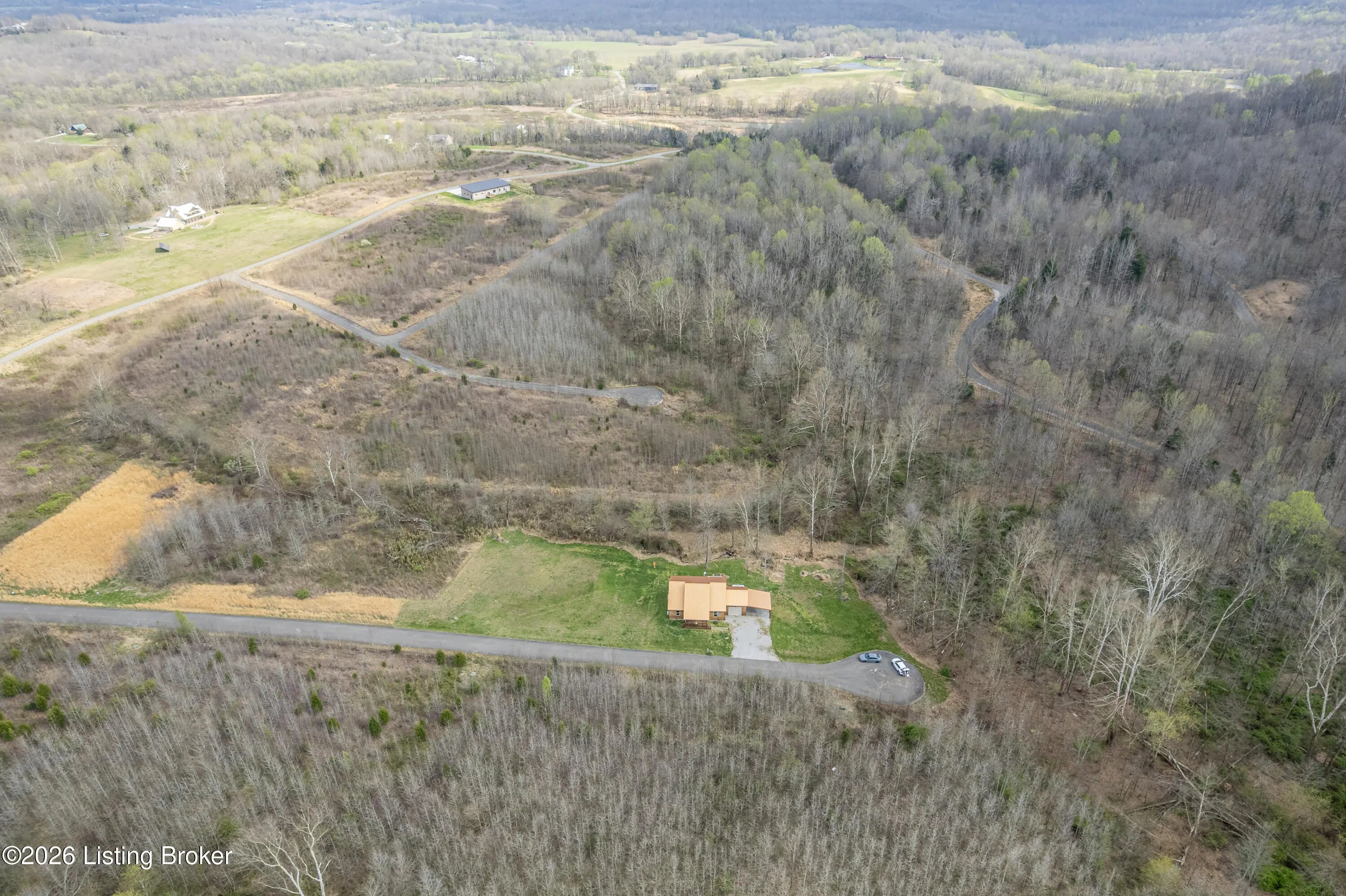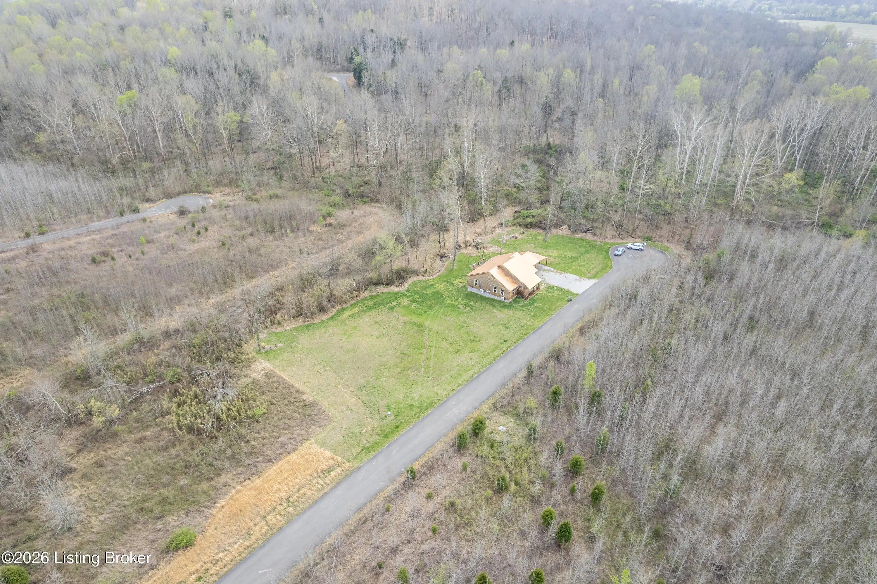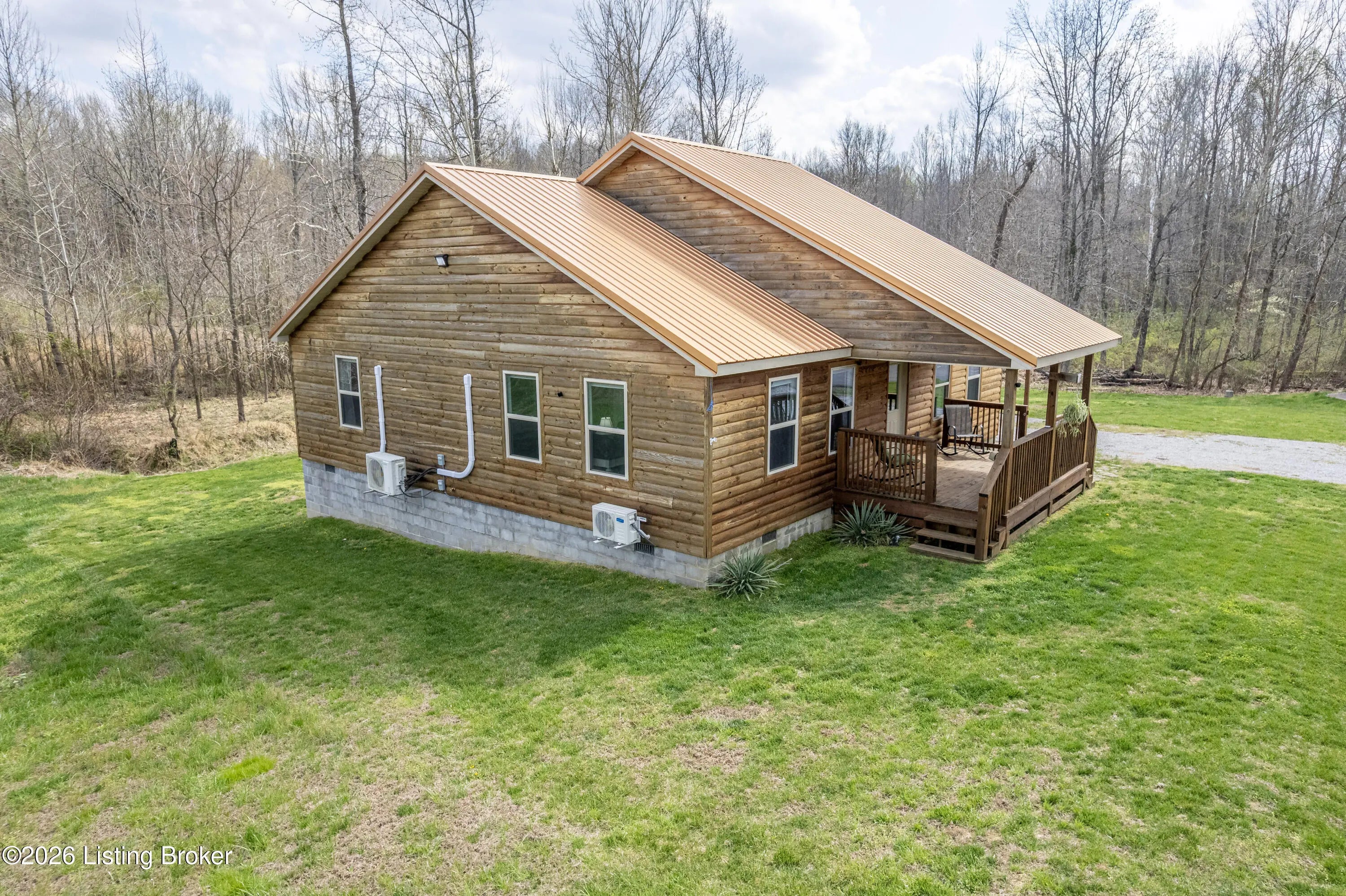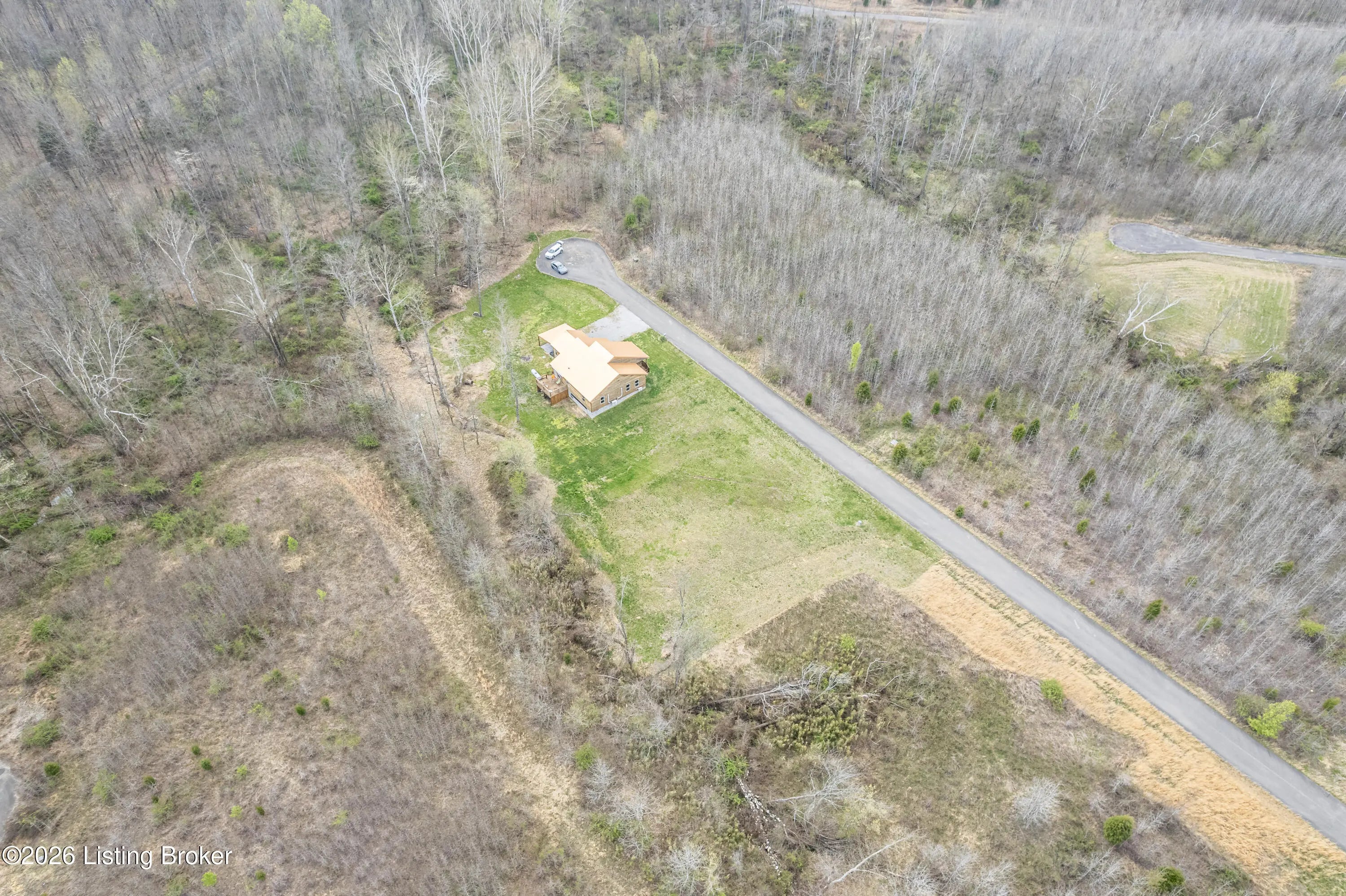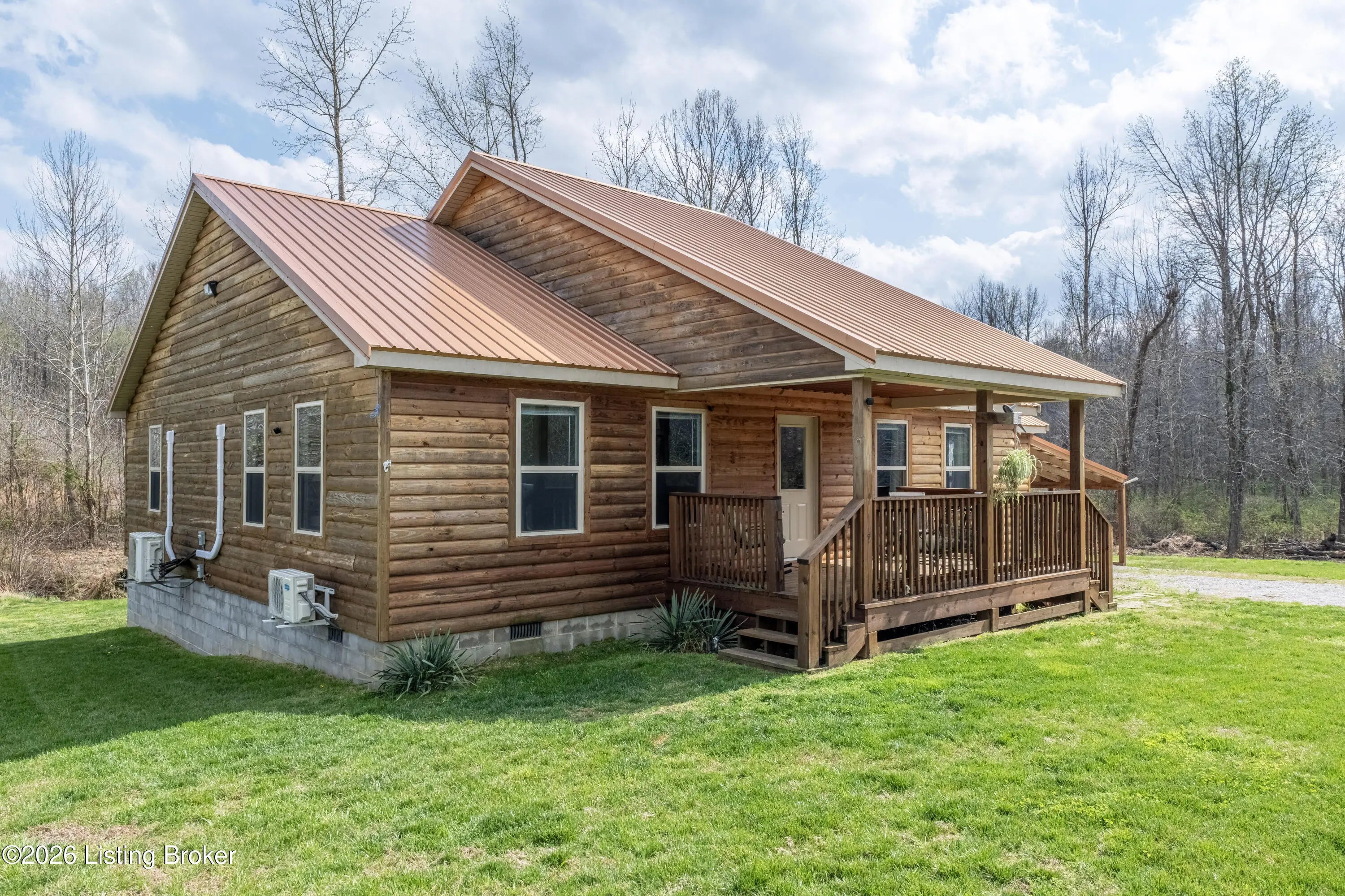 Located in the Green Farms subdivision beside Lafayette Golf Course, 145 Loyd Circle offers a quiet country setting with the convenience of being just minutes from Rough River Lake. Sitting on two lots totaling approximately 1.04 acres, this property provides extra space, flexibility, and privacy that's hard to find in this area. Amish built in 2020, the home offers 1,520 square feet with a large open layout that connects the kitchen and living room into one comfortable, functional space. The kitchen features ample cabinet storage and room to spread out, making it easy to handle everyday living or hosting. LVP flooring runs throughout the main living areas, with tile flooring in the bathroom for durability and easy maintenance. The primary bedroom is oversized with a large closet and direct access to a spacious primary bath. A second full bathroom adds convenience for guests or additional flexibility. A second spacious bedroom could be used as a multi-purpose room, big enough to host an office and bedroom furniture. Outside, the home features log siding, a covered front porch, an attached 1-car garage, and a 2-car carport. There is also additional storage space under the back deck for lawn equipment and tools. The two-lot setup gives you room to expand, build, or simply enjoy the extra space. By car, you're approximately 3 minutes to Lafayette Golf Course and Falls of Rough Resort, 10 minutes to Rough River Dam State Resort Park and the state boat ramp, and about 14 minutes to Nick's Boat Dock. Leitchfield is about 25-30 minutes away, and Hardinsburg is roughly 25 minutes. If you've been looking for a newer, low-maintenance home near Rough River Lake with extra space, a quiet setting, and the ability to get on the golf course or on the water within minutes, this property is worth a look.