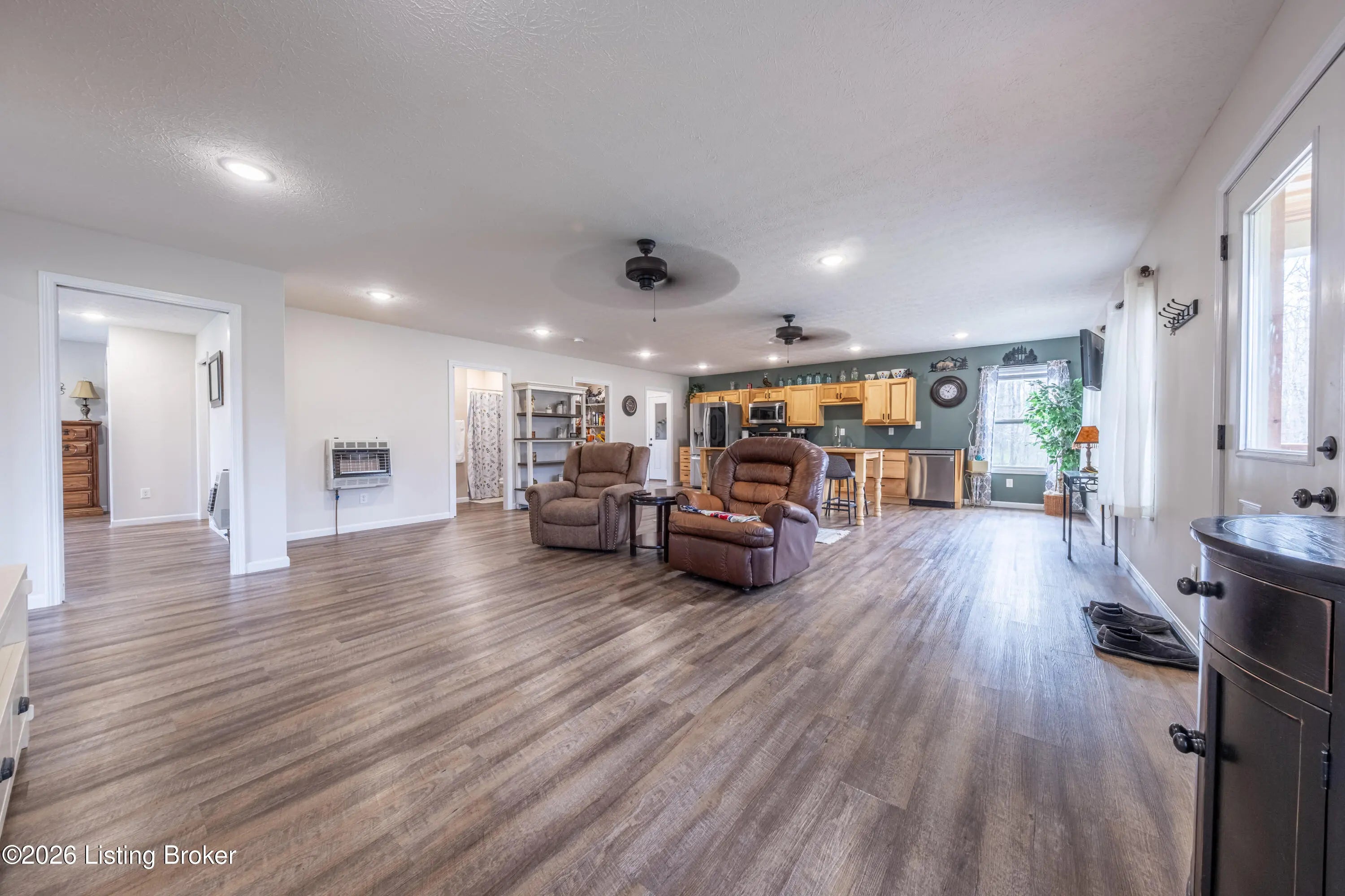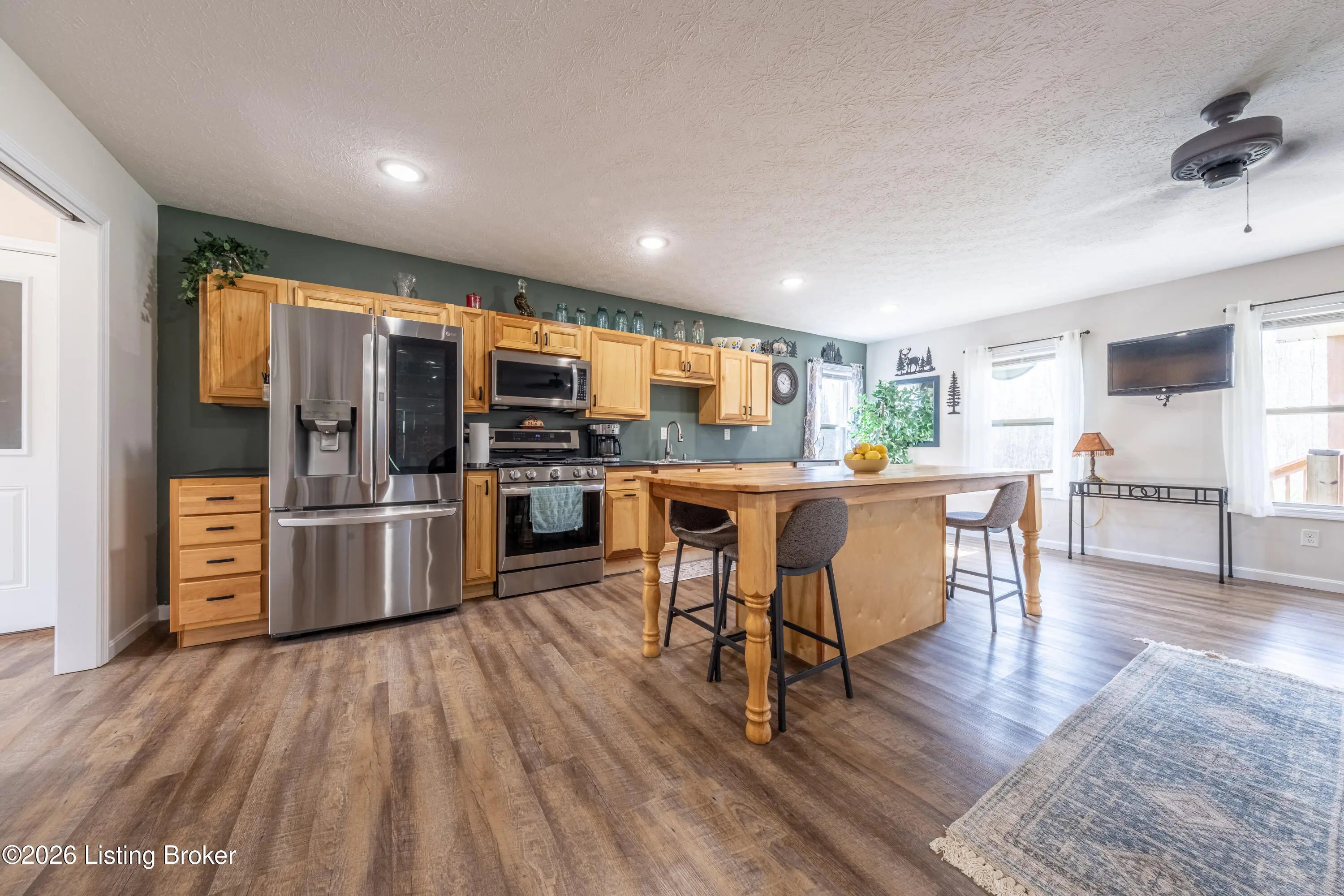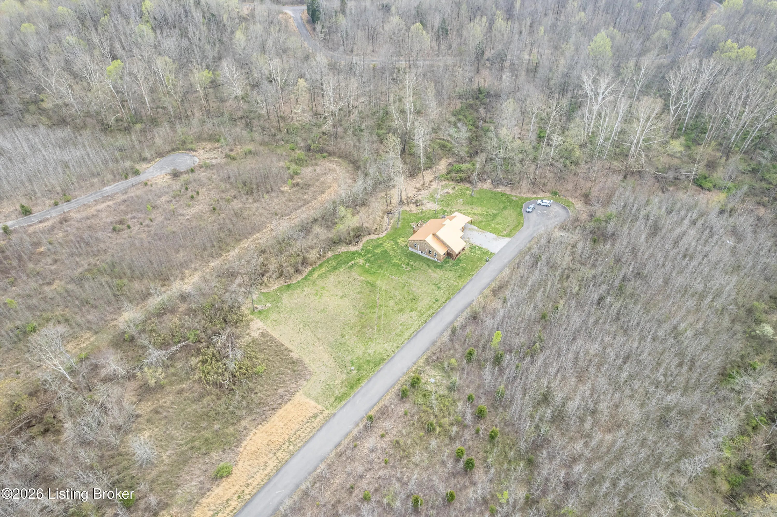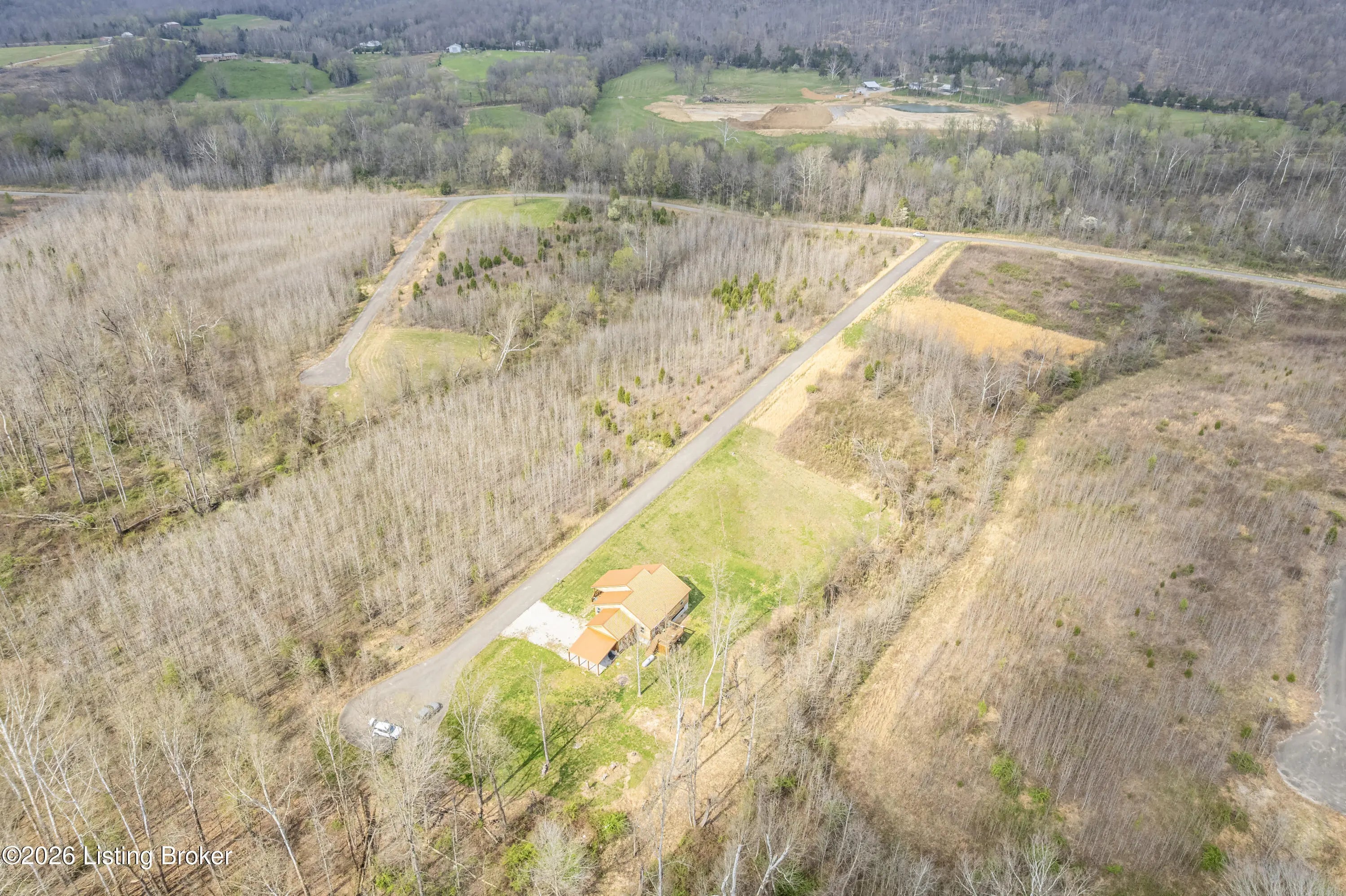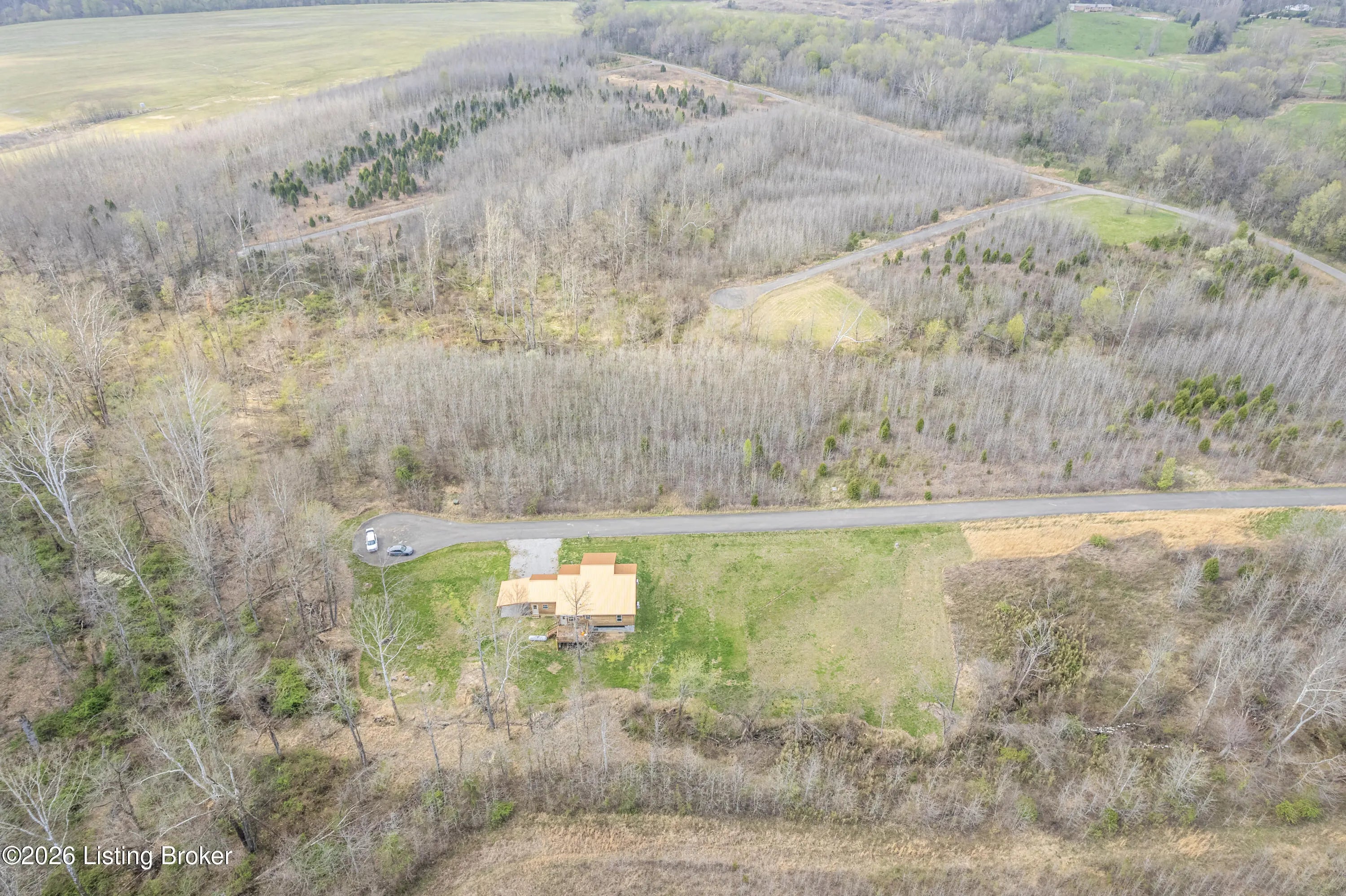 Located in the Green Farms subdivision beside Lafayette Golf Course, 145 Loyd Circle offers a quiet country setting with the convenience of being just minutes from Rough River Lake. Sitting on two lots totaling approximately 1.04 acres, this property provides extra space, flexibility, and privacy that's hard to find in this area. Amish built in 2020, the home offers 1,520 square feet with a large open layout that connects the kitchen and living room into one comfortable, functional space. The kitchen features ample cabinet storage and room to spread out, making it easy to handle everyday living or hosting. LVP flooring runs throughout the main living areas, with tile flooring in the bathroom for durability and easy maintenance. The primary bedroom is oversized with a large closet and direct access to a spacious primary bath. A second full bathroom adds convenience for guests or additional flexibility. A second spacious bedroom could be used as a multi-purpose room, big enough to host an office and bedroom furniture. Outside, the home features log siding, a covered front porch, an attached 1-car garage, and a 2-car carport. There is also additional storage space under the back deck for lawn equipment and tools. The two-lot setup gives you room to expand, build, or simply enjoy the extra space. By car, you're approximately 3 minutes to Lafayette Golf Course and Falls of Rough Resort, 10 minutes to Rough River Dam State Resort Park and the state boat ramp, and about 14 minutes to Nick's Boat Dock. Leitchfield is about 25-30 minutes away, and Hardinsburg is roughly 25 minutes. If you've been looking for a newer, low-maintenance home near Rough River Lake with extra space, a quiet setting, and the ability to get on the golf course or on the water within minutes, this property is worth a look.