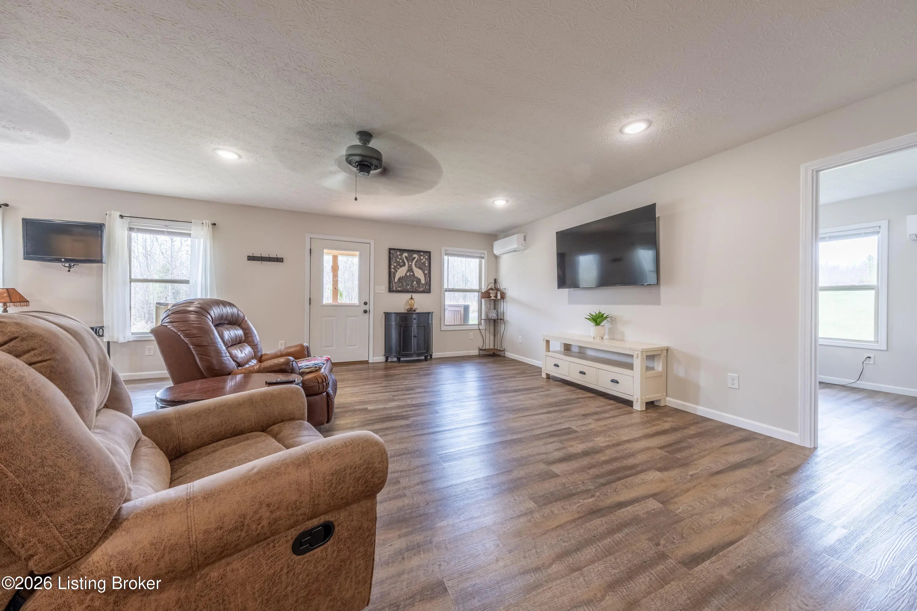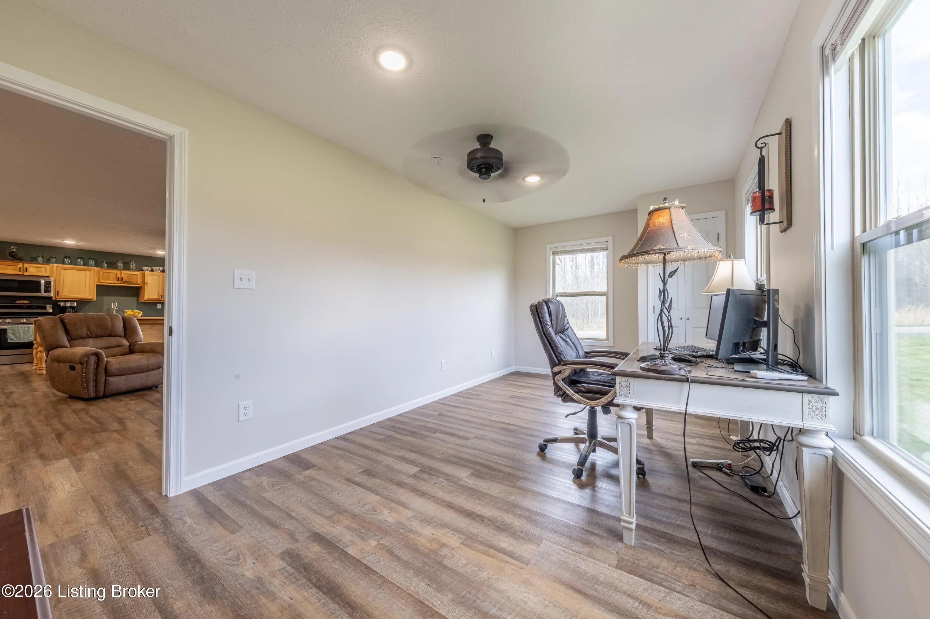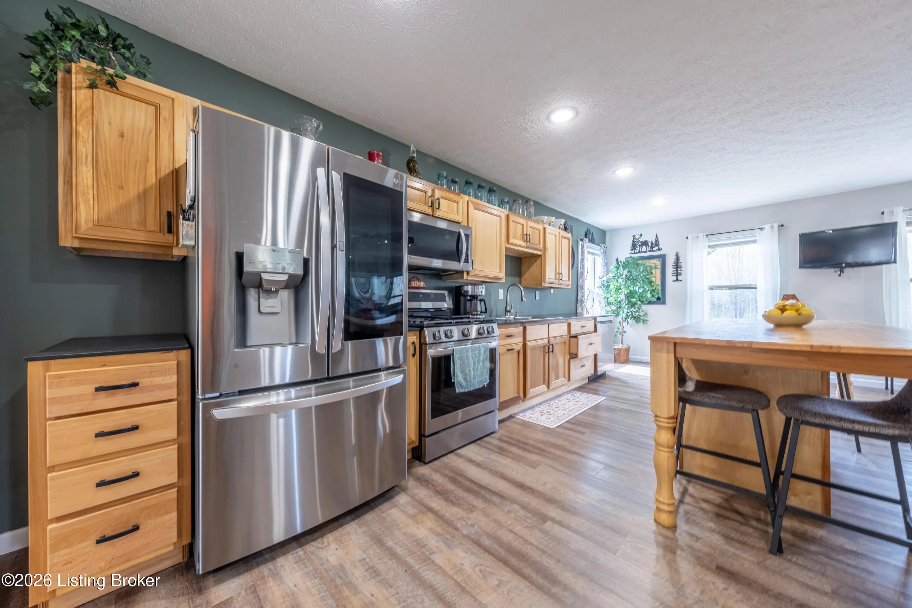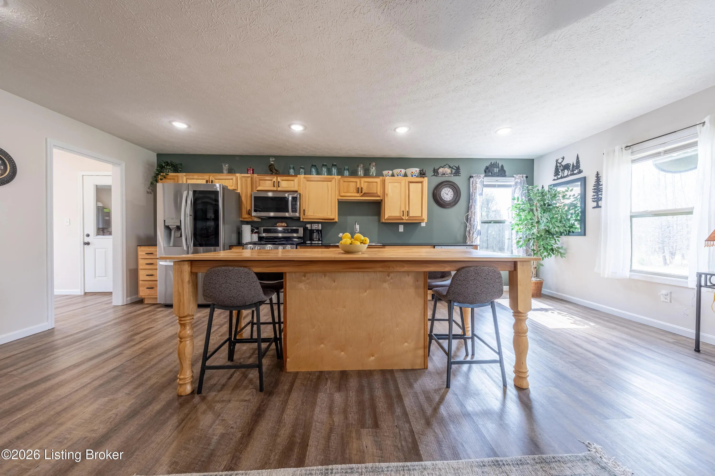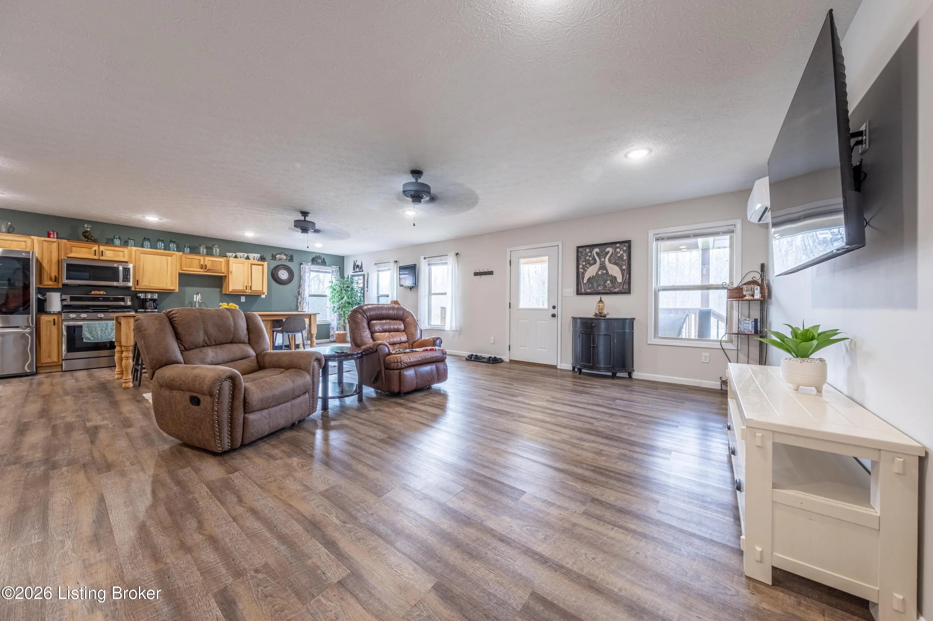 Located in the Green Farms subdivision beside Lafayette Golf Course, 145 Loyd Circle offers a quiet country setting with the convenience of being just minutes from Rough River Lake. Sitting on two lots totaling approximately 1.04 acres, this property provides extra space, flexibility, and privacy that's hard to find in this area. Amish built in 2020, the home offers 1,520 square feet with a large open layout that connects the kitchen and living room into one comfortable, functional space. The kitchen features ample cabinet storage and room to spread out, making it easy to handle everyday living or hosting. LVP flooring runs throughout the main living areas, with tile flooring in the bathroom for durability and easy maintenance. The primary bedroom is oversized with a large closet and direct access to a spacious primary bath. A second full bathroom adds convenience for guests or additional flexibility. A second spacious bedroom could be used as a multi-purpose room, big enough to host an office and bedroom furniture. Outside, the home features log siding, a covered front porch, an attached 1-car garage, and a 2-car carport. There is also additional storage space under the back deck for lawn equipment and tools. The two-lot setup gives you room to expand, build, or simply enjoy the extra space. By car, you're approximately 3 minutes to Lafayette Golf Course and Falls of Rough Resort, 10 minutes to Rough River Dam State Resort Park and the state boat ramp, and about 14 minutes to Nick's Boat Dock. Leitchfield is about 25-30 minutes away, and Hardinsburg is roughly 25 minutes. If you've been looking for a newer, low-maintenance home near Rough River Lake with extra space, a quiet setting, and the ability to get on the golf course or on the water within minutes, this property is worth a look.