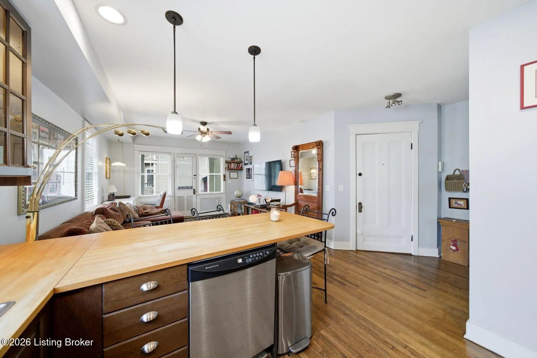 This incredible condo has historic bones with a modern feel featuring an open concept that is the perfect layout for entertaining. The sleek kitchen includes butcher block countertops, stainless steel appliances, and contemporary cabinetry. Additional lovely features of this condo include original hardwood flooring, an inviting porch, and a large primary shower with two shower heads. There is an additional closet and storage space in the basement....And check out the in unit laundry hook-up!! Water and trash is covered by the HOA. Don't let the keys of this condo slip into someone else's hands. Come and check it out!