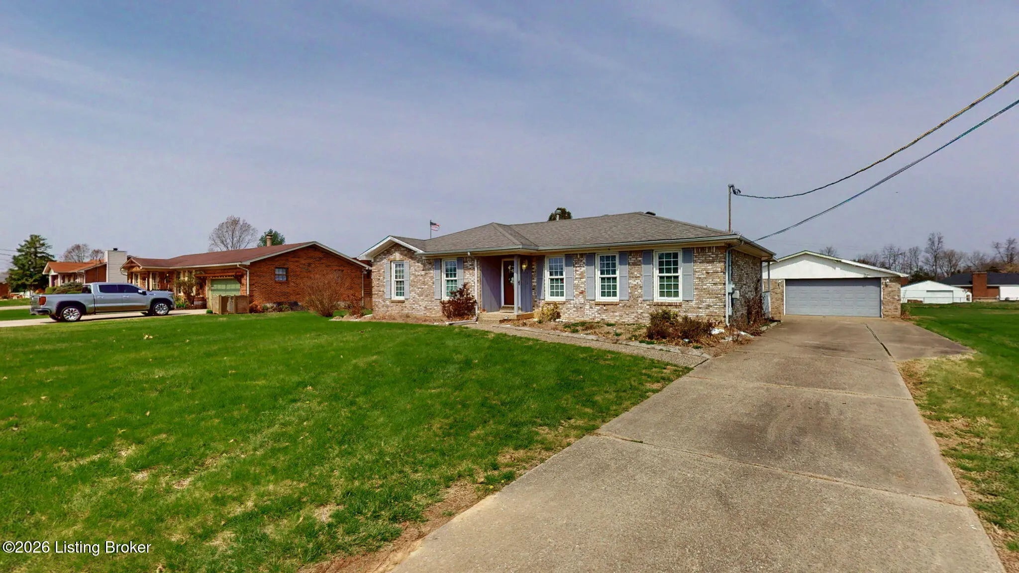 The best value in the neighborhood! Beautiful Brick Ranch Home with Spacious Lot and & Versatile Living Space featuring a welcoming living room perfect for relaxation and gatherings. The large kitchen opens to a covered deck perfect for eating al fresco. The spacious primary bedroom offers a private retreat complete with ensuite bathroom, providing comfort and privacy. In addition to the primary suite, enjoy the convenience of two additional bedrooms and a second full bathroom on the main level. Full unfinished basement and huge detached garage with room for a shop. Make your appointment today as this will not last long.