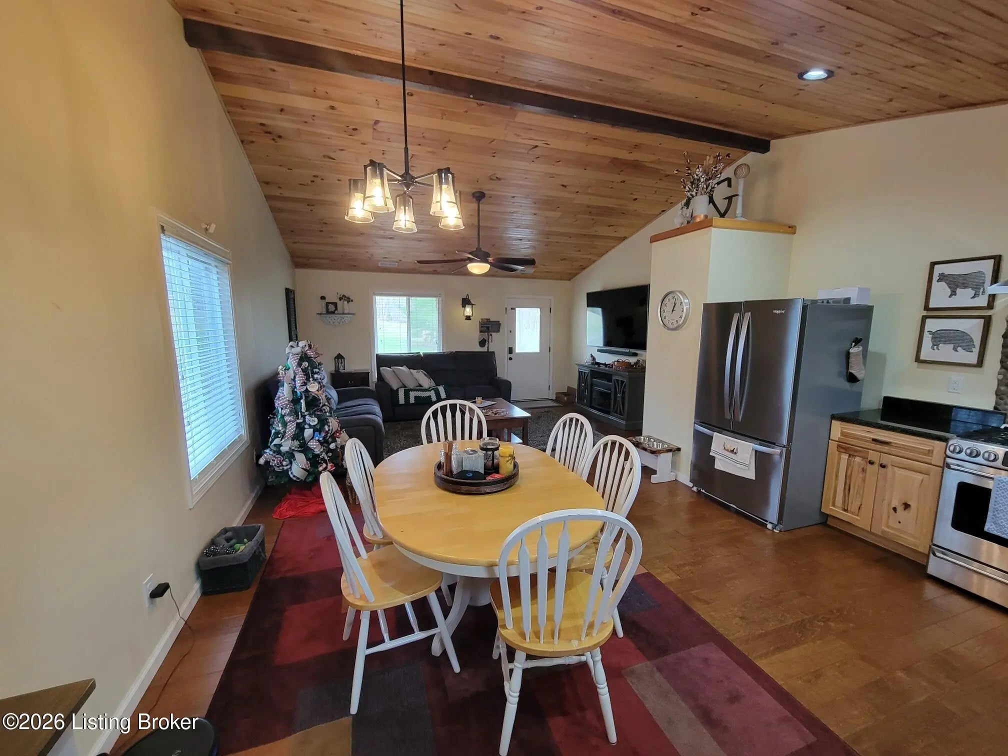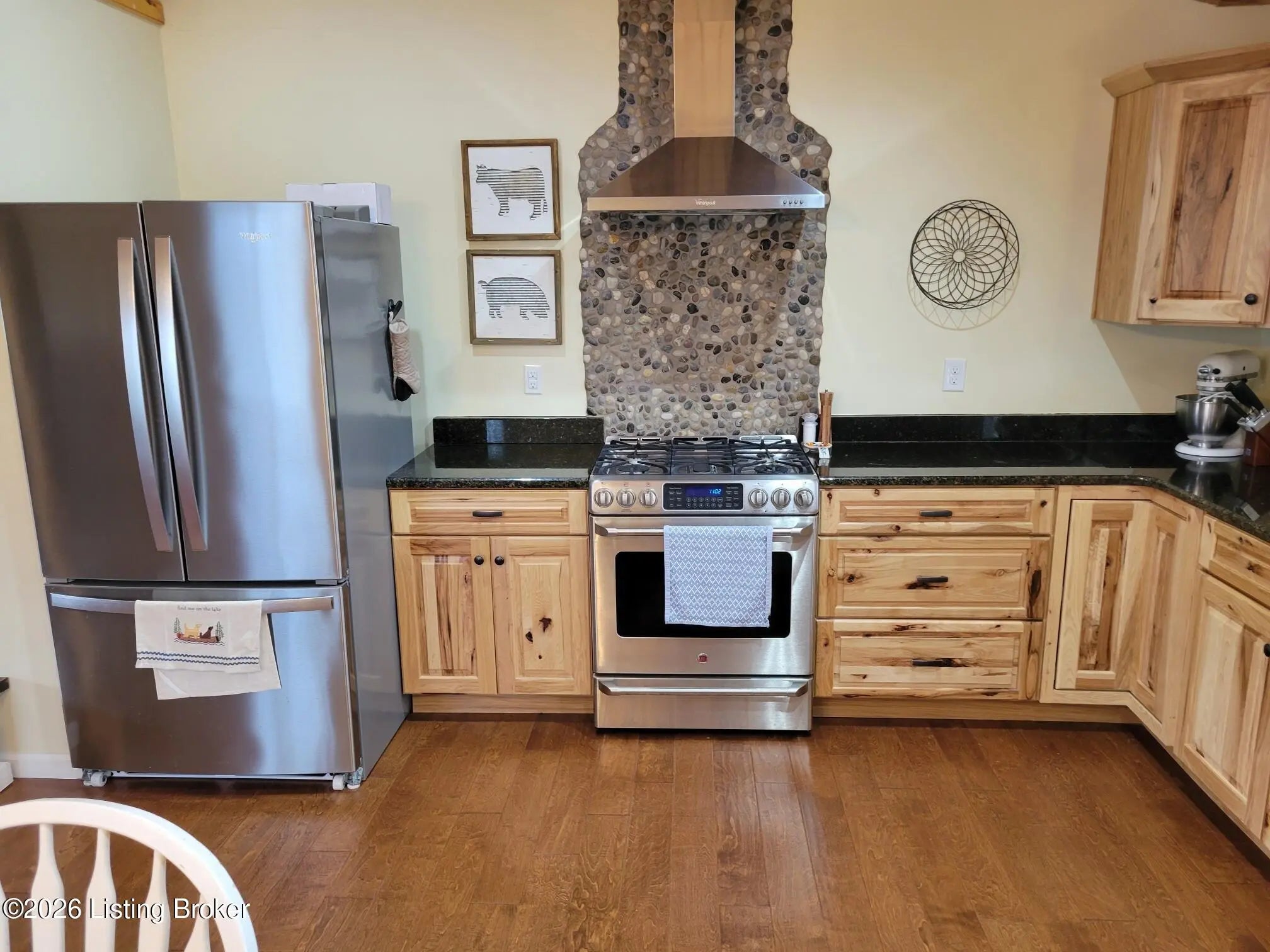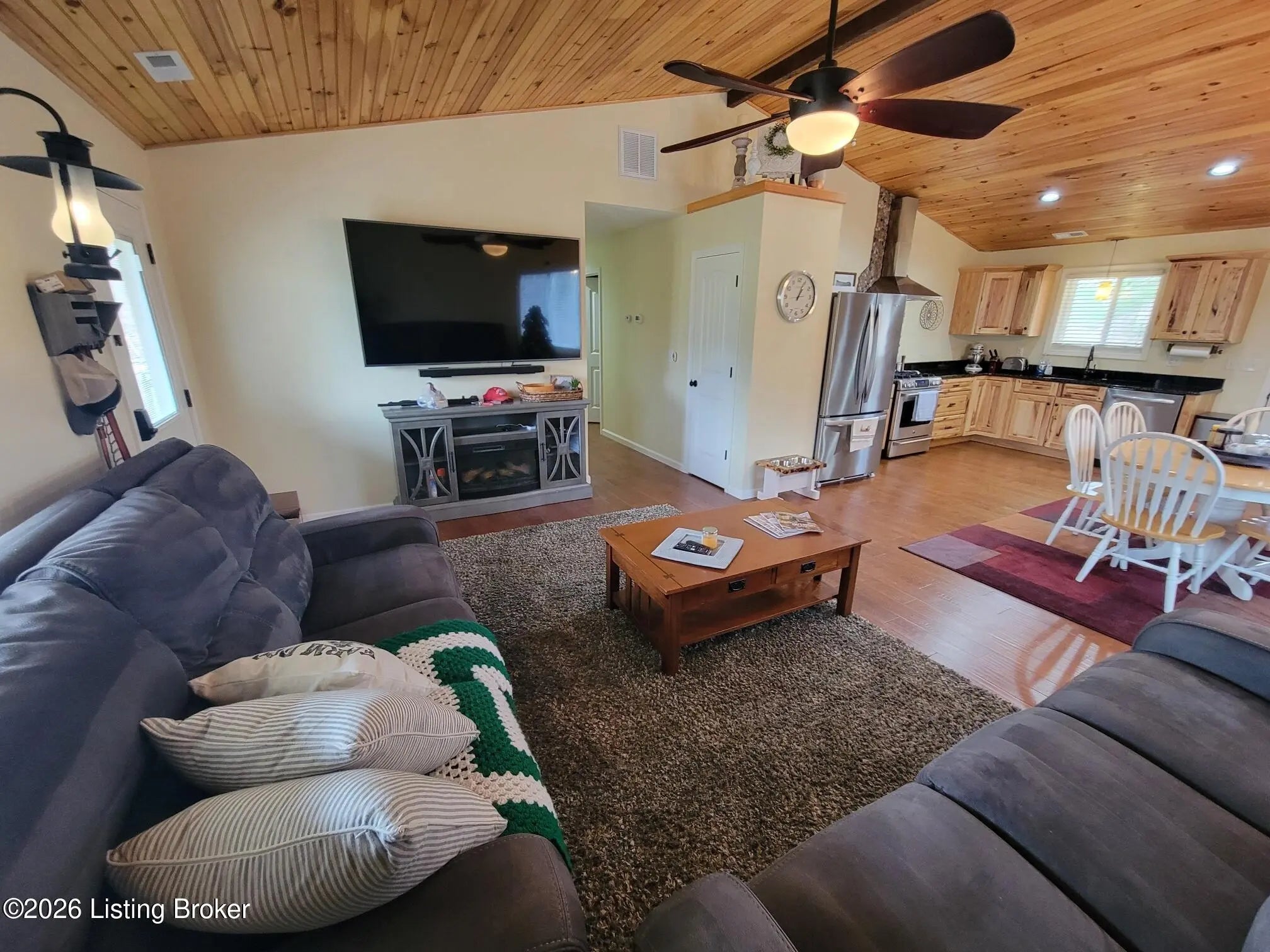 Well-maintained single-story ranch home, located 2.6 miles from Safe Harbour Jametown marina on beautiful Lake Cumberland. 3 bedrooms, 2 full baths, full laundry hookups. Open concept, great room, dining room and kitchen makes this home feel much bigger than the square footage with indicate. All bedrooms have large closets, the primary bedroom has an on-suite bath complete with a custom tiled shower. Kitchen features granite counters and premium appliances includeing a gas GE Cafe range. Front and back convered porches offer great views of the surrounding areas, with the back porch offering a ceiling fan and natural gas grill hookup. (no more running out of propane).
