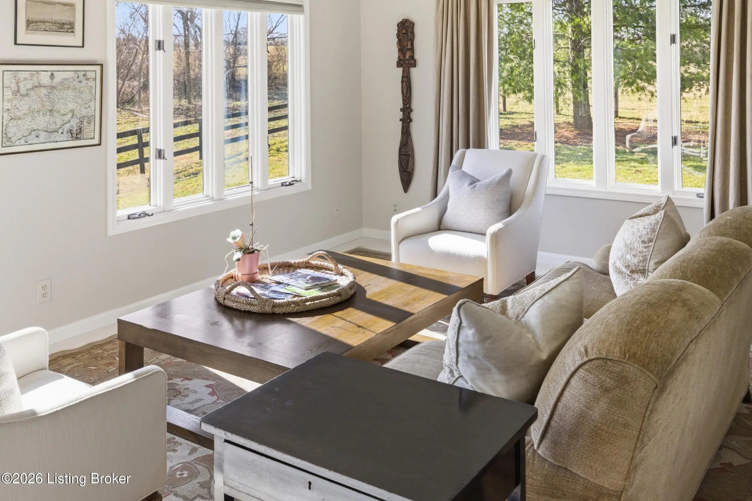 If you have been waiting for something that feels like home the moment you turn down the driveway, this is it. Nestled on 12.5 breathtaking acres, this one-of-a-kind property offers 4 paddocks, a foaling barn, a two-car detached garage, and four utility outbuildings. And now the home: with 2,312 square feet sitting proudly on an unfinished basement, this magnificent residence gives you space to breathe, grow, and truly live. It's the type of home that makes the Bluegrass famous. Stepping inside, you are instantly greeted by a spacious open floor plan decked with incredible hardwood floors that stretch throughout the main level and lead you into a warm, inviting den filled with natural light.