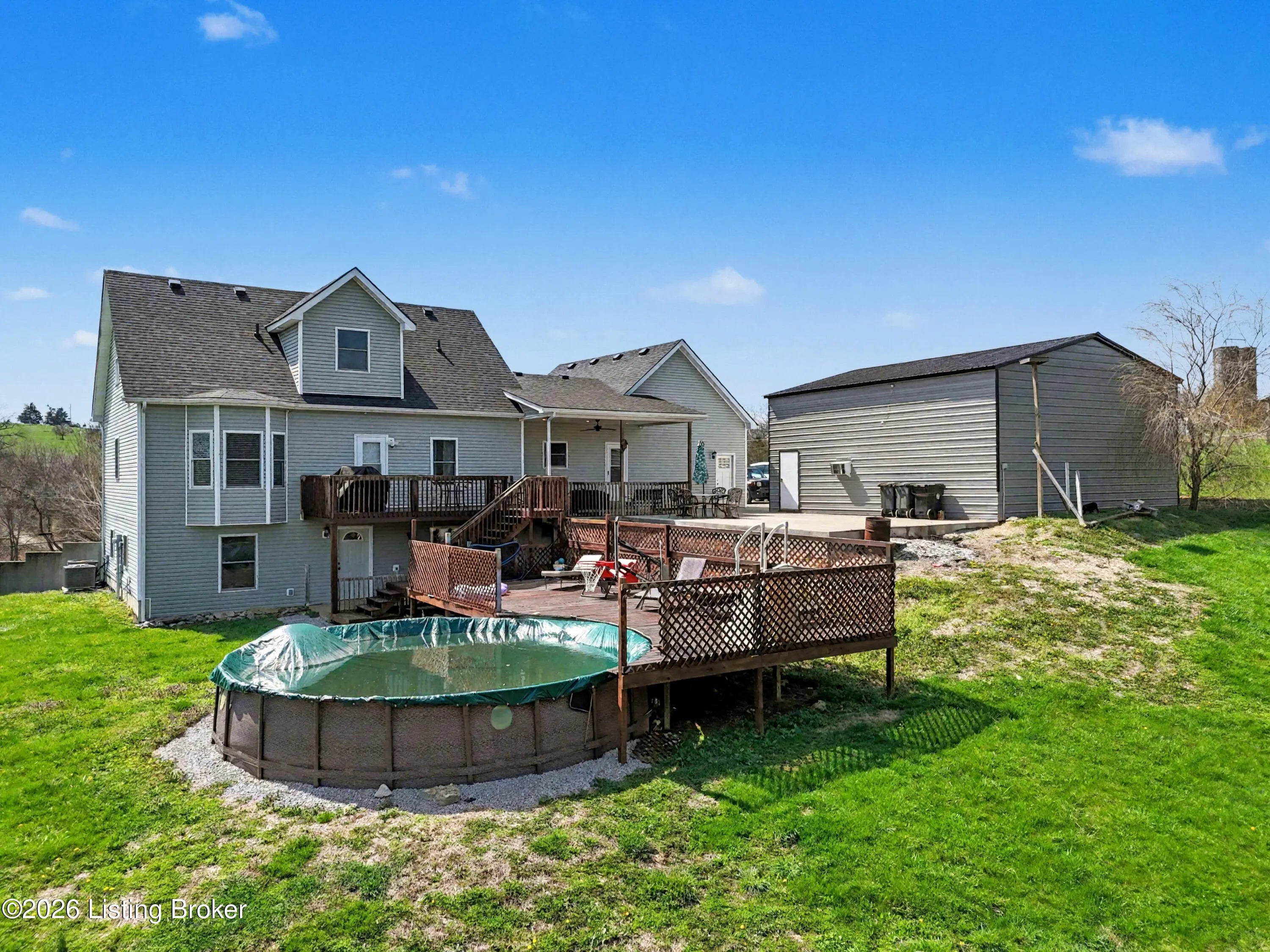 Welcome to the property you've been searching for — a rare opportunity to own a truly versatile, move-in-ready home on 1.89 private acres, just minutes from the heart of downtown Taylorsville. From the moment you arrive, the stunning porch sets the tone: your new favorite spot to sip your morning coffee, watch the sun dip behind the tree line, or simply exhale after a long day. Step inside to a spacious, light-filled great room anchored by a cozy gas fireplace... the kind of room that effortlessly hosts everyone from holiday gatherings to quiet Sunday mornings. The open-concept layout flows directly into a generous eat-in kitchen that is as functional as it is inviting: stainless steel appliances, abundant cabinet storage, & two large windows framing breathtaking views of both the sprawling front yard & the serene backyard. Off the kitchen, daily life is made easy with a 1st floor laundry room & direct access to the attached 2 car garage. On the opposite side of the living space, a conveniently located half bath. Down the hall, the private primary suite — a true owner's retreat. Natural light pours in through multiple windows, illuminating a walk-in closet & a spa-like en suite bath complete with a soaking tub, walk-in shower, double vanity, & private water closet. This is the kind of primary suite you'll brag about. Head upstairs to find 2 additional large bedrooms & a full bath. Now, prepare to be wowed by the walkout basement. This isn't your average unfinished storage space... it's another opportunity for 1 floor living featuring a bedroom, full bath, flex room, a 2nd full kitchen, living room, & a 2nd laundry room. Whether you're looking for a mother-in-law suite, a multi-generational living solution or a rental income opportunity, this walkout basement checks every box. The outdoor living experience is equally impressive. Entertain, relax, or play across a covered upper patio, a lower walkout patio, an open uncovered patio, & a deck — plus an above-ground pool that's ready for summer fun from day one. And just when you thought it couldn't get any better: a 30×30 outbuilding awaits, offering endless possibilities — a workshop, home-based business, vehicle storage, hobby space, or additional equipment storage for those with agricultural interests. Plenty of land & the peace of country living as well as the convenience of being just minutes from downtown Taylorsville, this property is a unicorn in today's market. No matter your needs — this home was made for you!