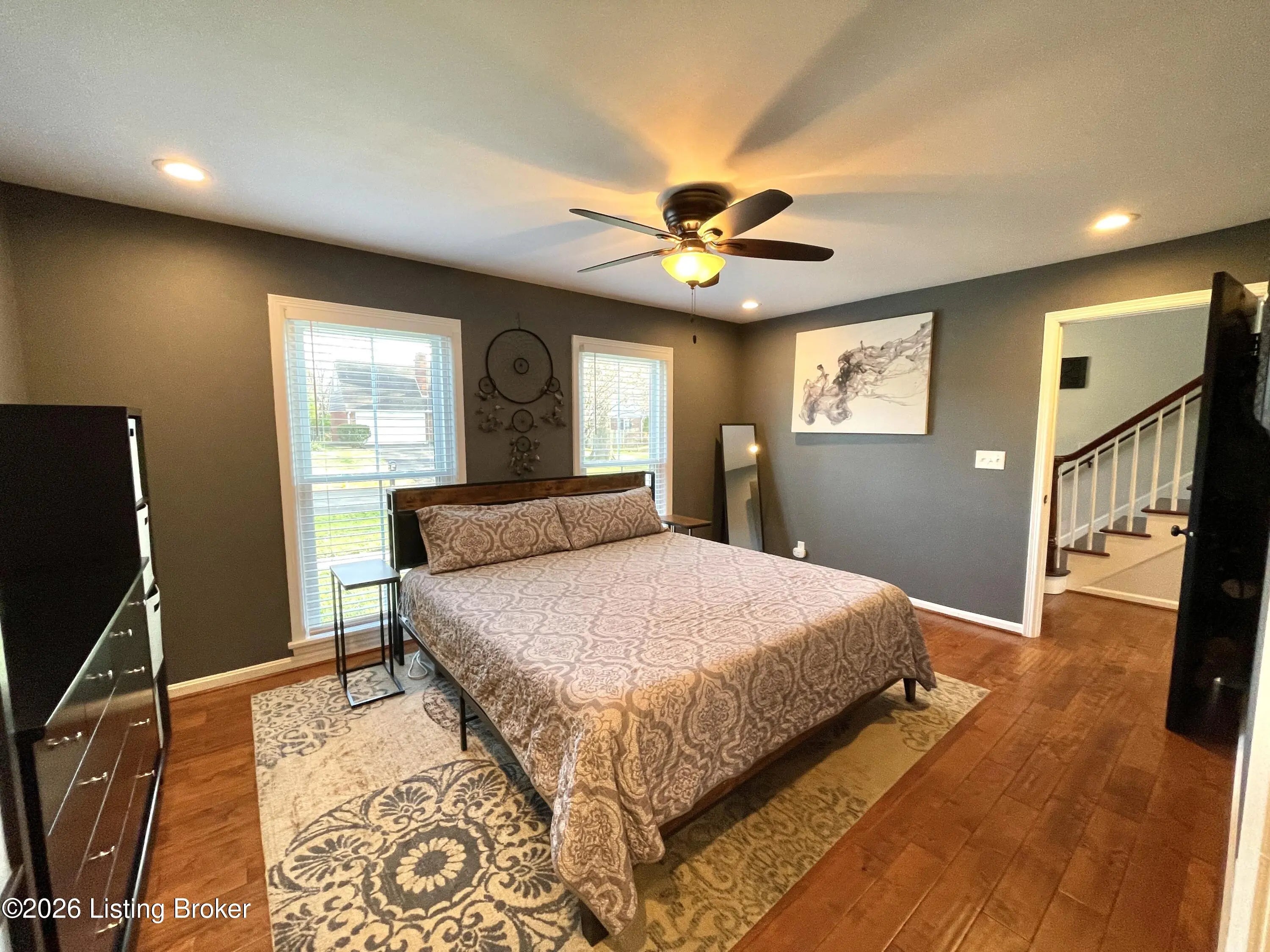 Welcome home to this beautifully updated residence in the desirable city of Meadow Vale—where comfort, convenience, and thoughtful updates come together seamlessly. Ideally located within walking distance to both Hounz Lane Park and Tom Sawyer Park, this home offers the perfect balance of peaceful living and outdoor recreation. Step inside to discover rich hardwood floors throughout the first and second levels, enhanced by abundant natural light streaming through updated windows. The first-floor primary suite serves as a private retreat, featuring a spacious en-suite bathroom with a soaking tub, separate shower, and a generous walk-in closet. Storage is plentiful, with multiple large closets throughout—each equipped with full-sized doors for easy access. Designed with both everyday living and entertaining in mind, the home features two cozy fireplaces, a well-appointed kitchen with stainless steel appliances, and a walkout basement ideal for additional living or recreational space. Step outside to a spacious deck overlooking a large, fully fenced backyard—perfect for pets, play, or gatherings. The property also includes a two-car garage with additional attic storage, offering even more space and functionality. Recent updates offer added peace of mind, including a newer roof, water heater, and a modern HVAC system complete with a humidifier and UV scrubber for enhanced air quality. A security camera system and Ethernet outlets in every room add convenience and modern functionality. This home truly checks every box—style, space, updates, and an unbeatable location. Don't miss your opportunity to make it yours.