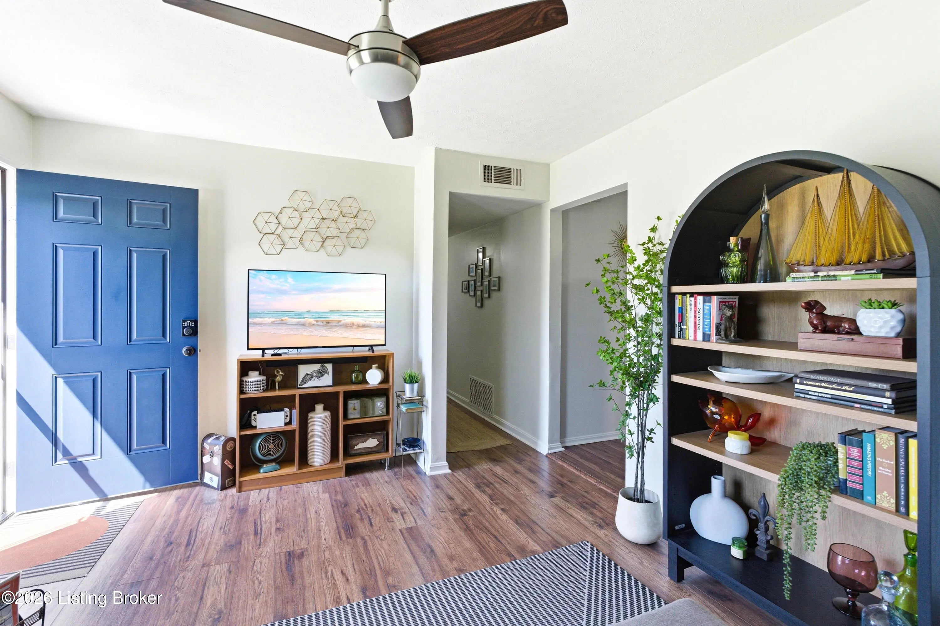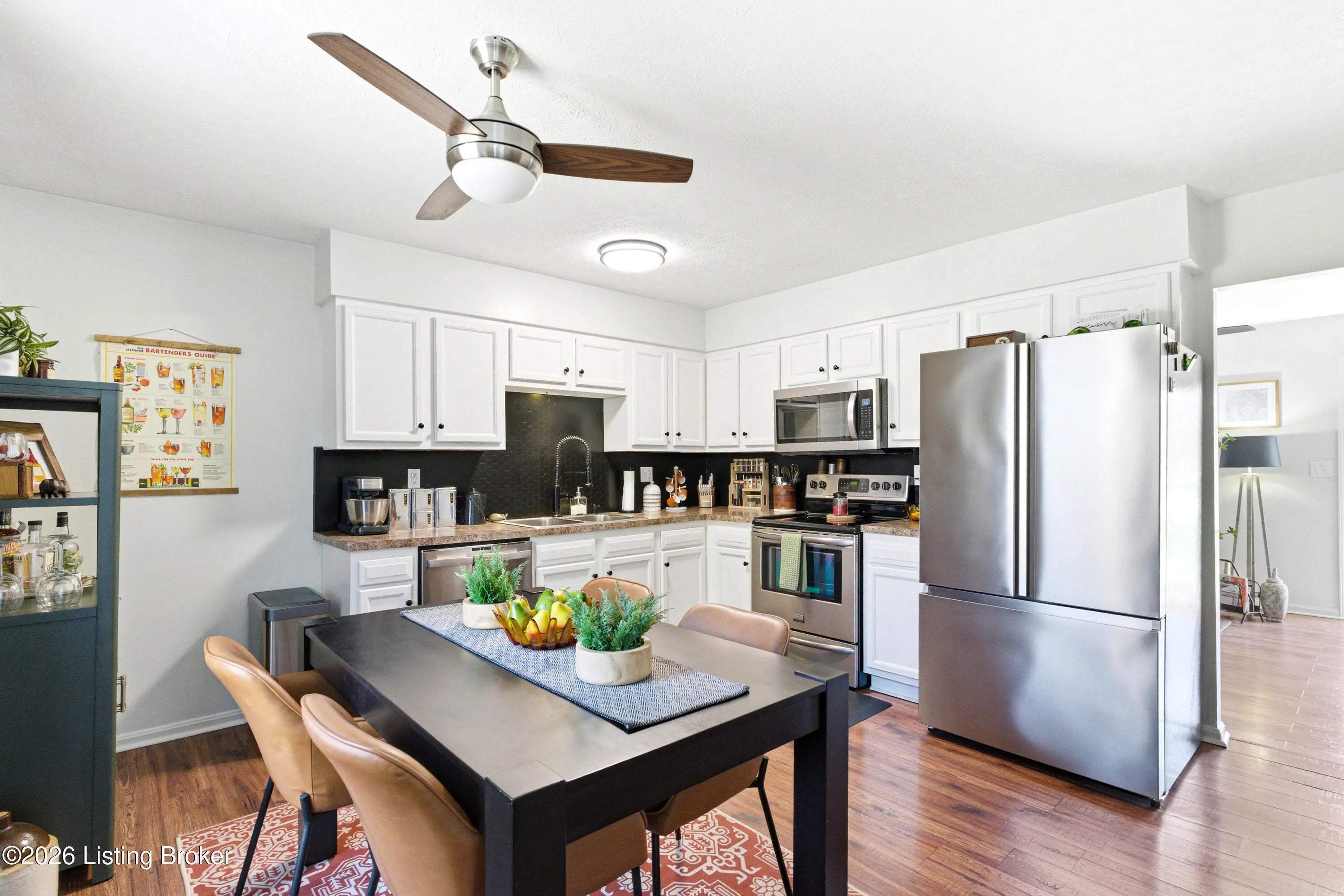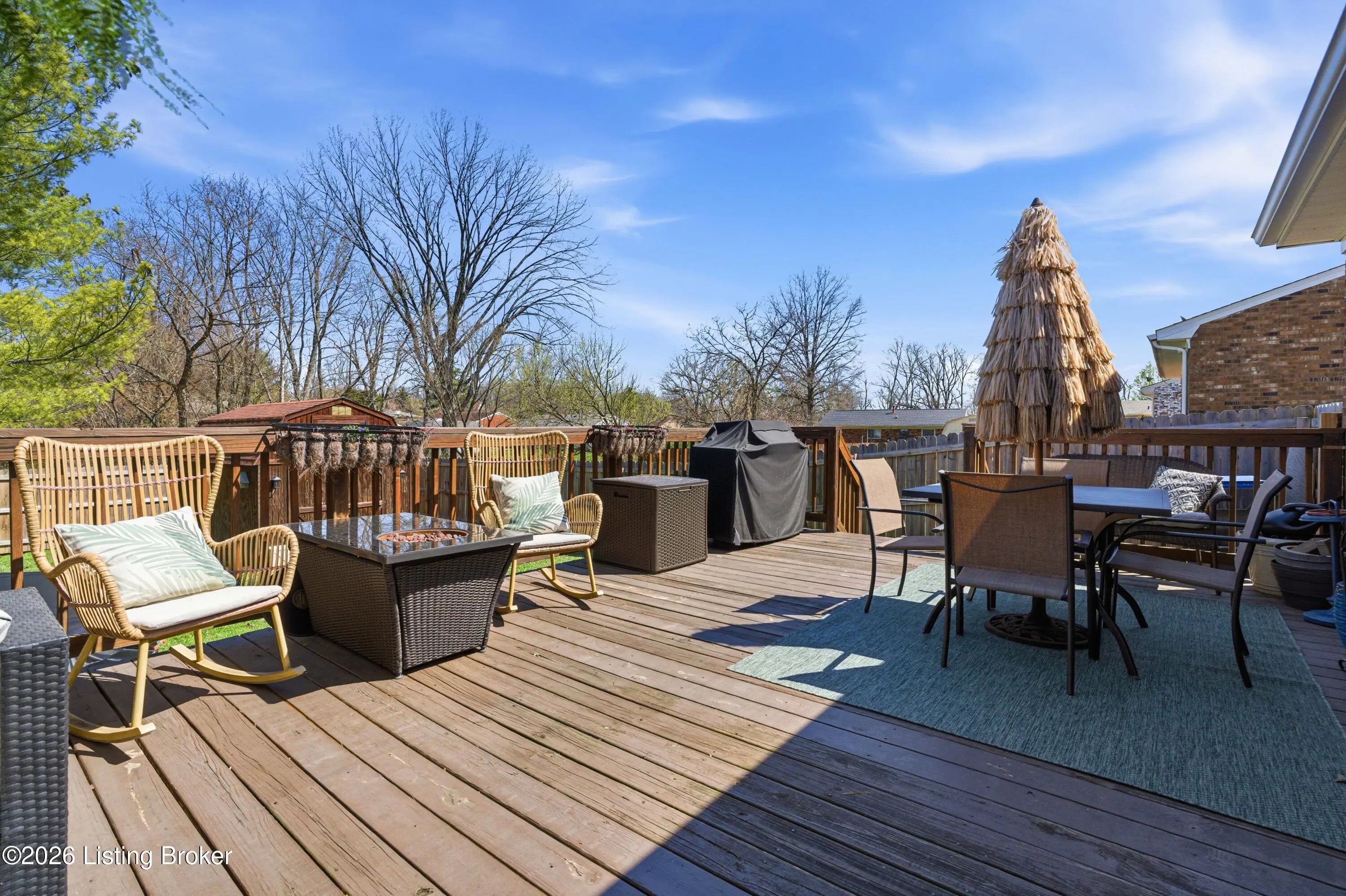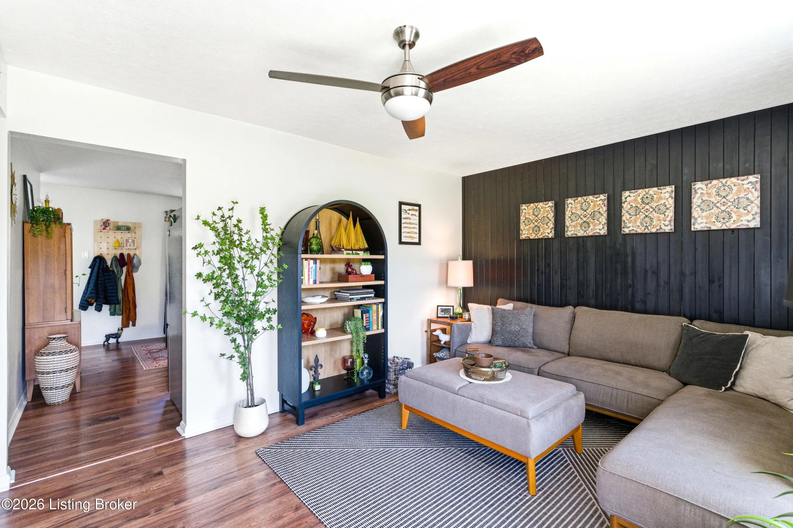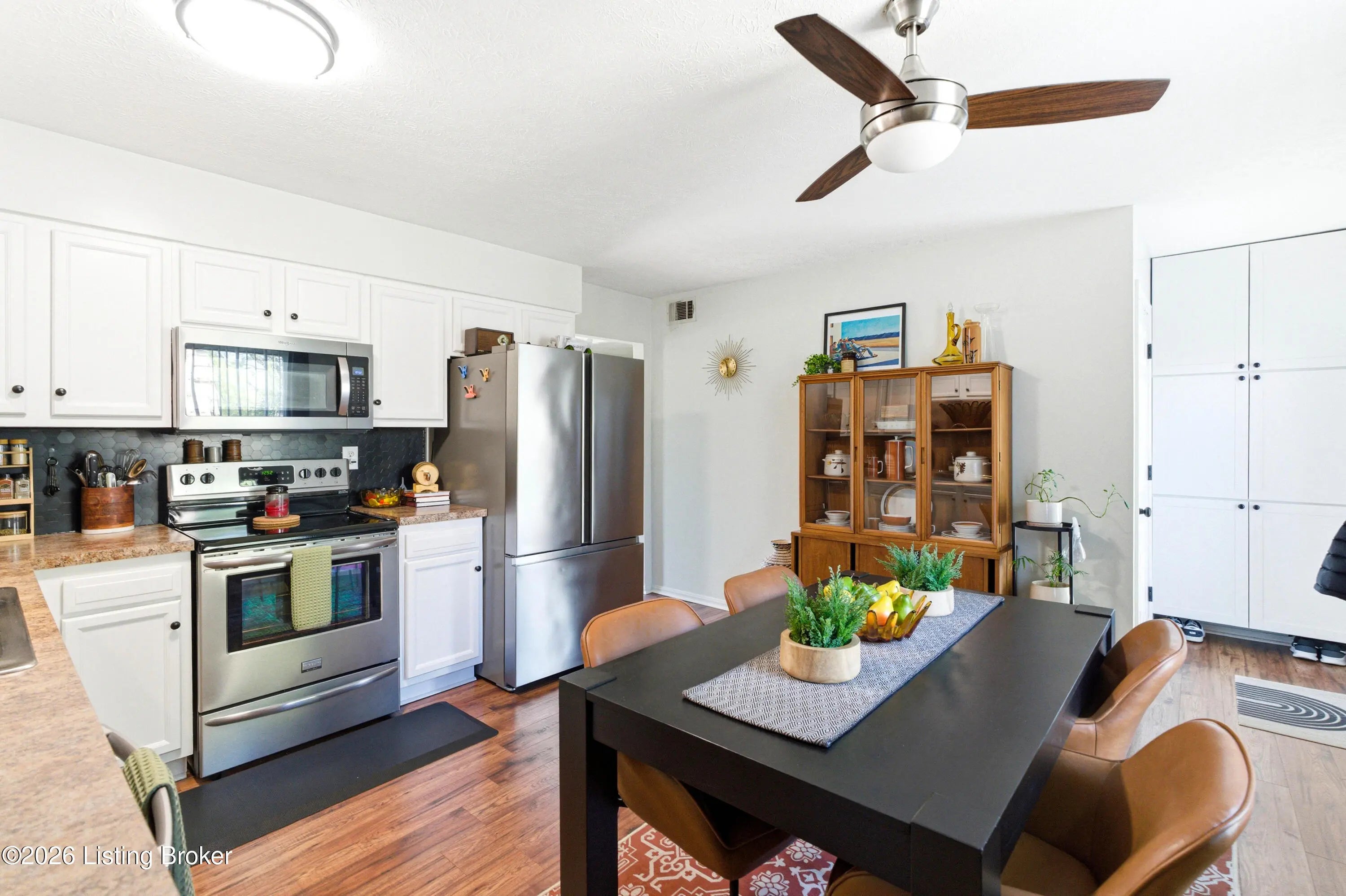 Welcome to this adorable, move-In ready & full of style all brick ranch home! This charming 3-bedroom, 1.5-bath home is packed with updates throughout. Step into the living room with a stylish slat accent wall, new paint and new ceiling fan, creating a warm and inviting first impression. Beautiful flooring through the living room, kitchen and hallway. The kitchen shines with new lighting, ceiling fan, gorgeous backsplash, new counters, a double stainless sink and all like-new stainless appliances, including a brand-new dishwasher and microwave. A pantry/cabinet is attached off the kitchen and is great for storing your cooking essentials. You'll love the separate laundry room with shelving and fresh paint. The hall bath has been updated with a new vanity, mirror, paint and lighting. The large primary bedroom is a standout, offering a gorgeous accent wall, new paint, new ceiling fan, and an updated half bath. Step outside to enjoy a large deck with a gazebo, perfect for relaxing or entertaining, overlooking a beautiful backyard with an above ground pool and privacy fence. Large storage shed remains. New roof in 2024 and new exterior doors in 2023. Completely move-in ready. Don't miss this one—it's as cute as they come!